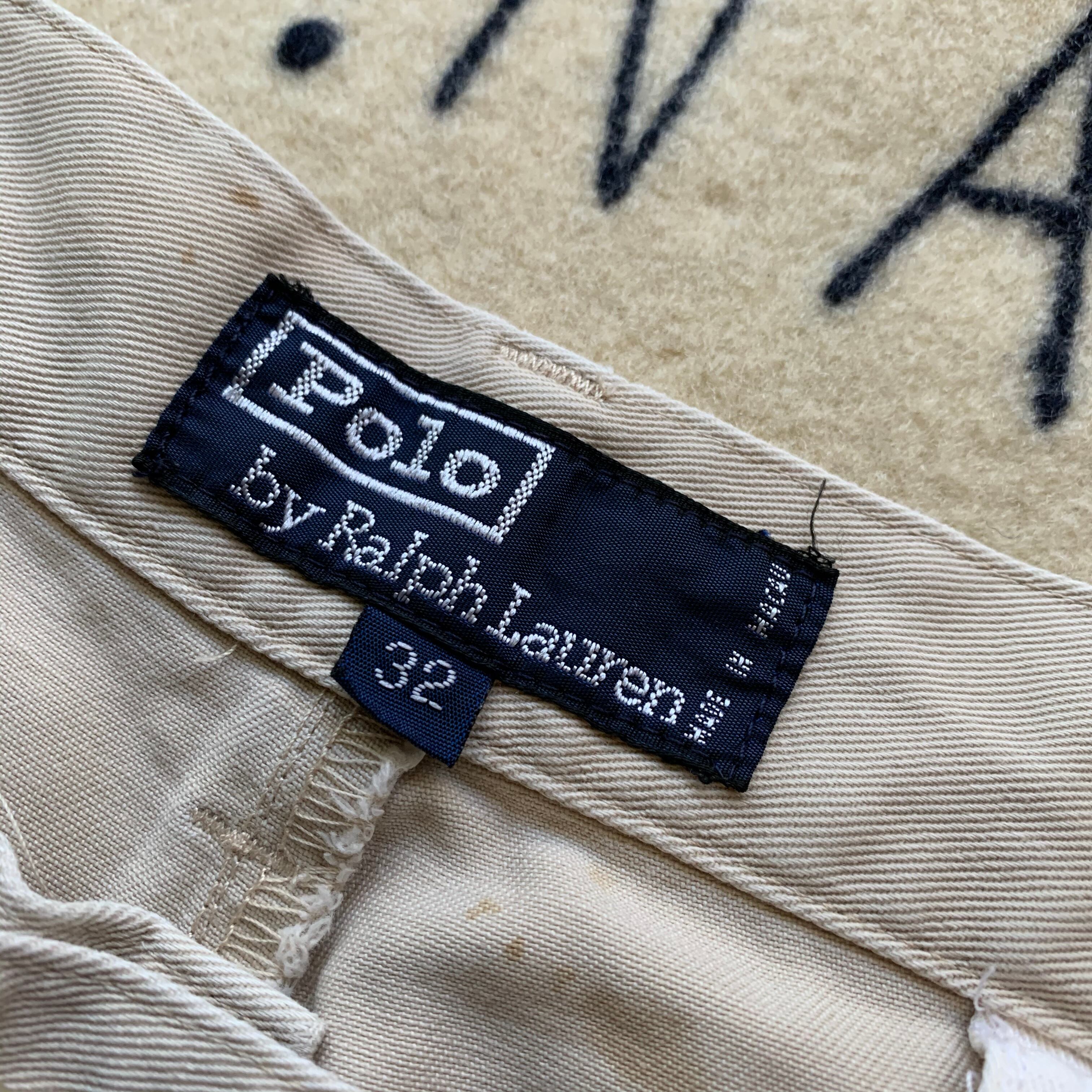 90s頃のRALPH LAUREN 2タックチノ。破れ等ありませんがバック、フロント側にシミあり。古着慣れしていれば問題無く着用可能と思います。