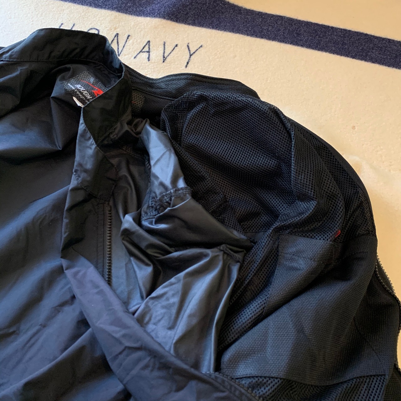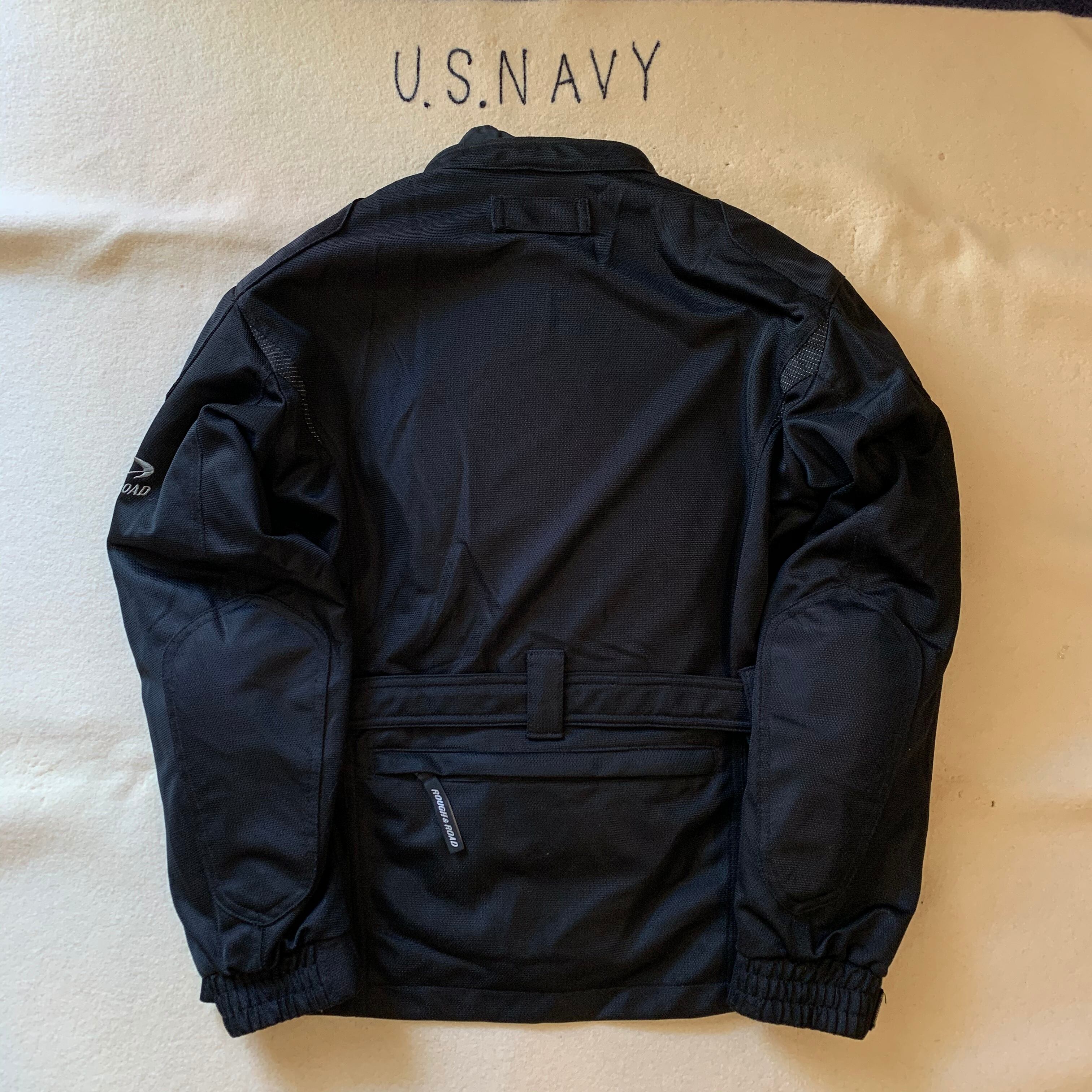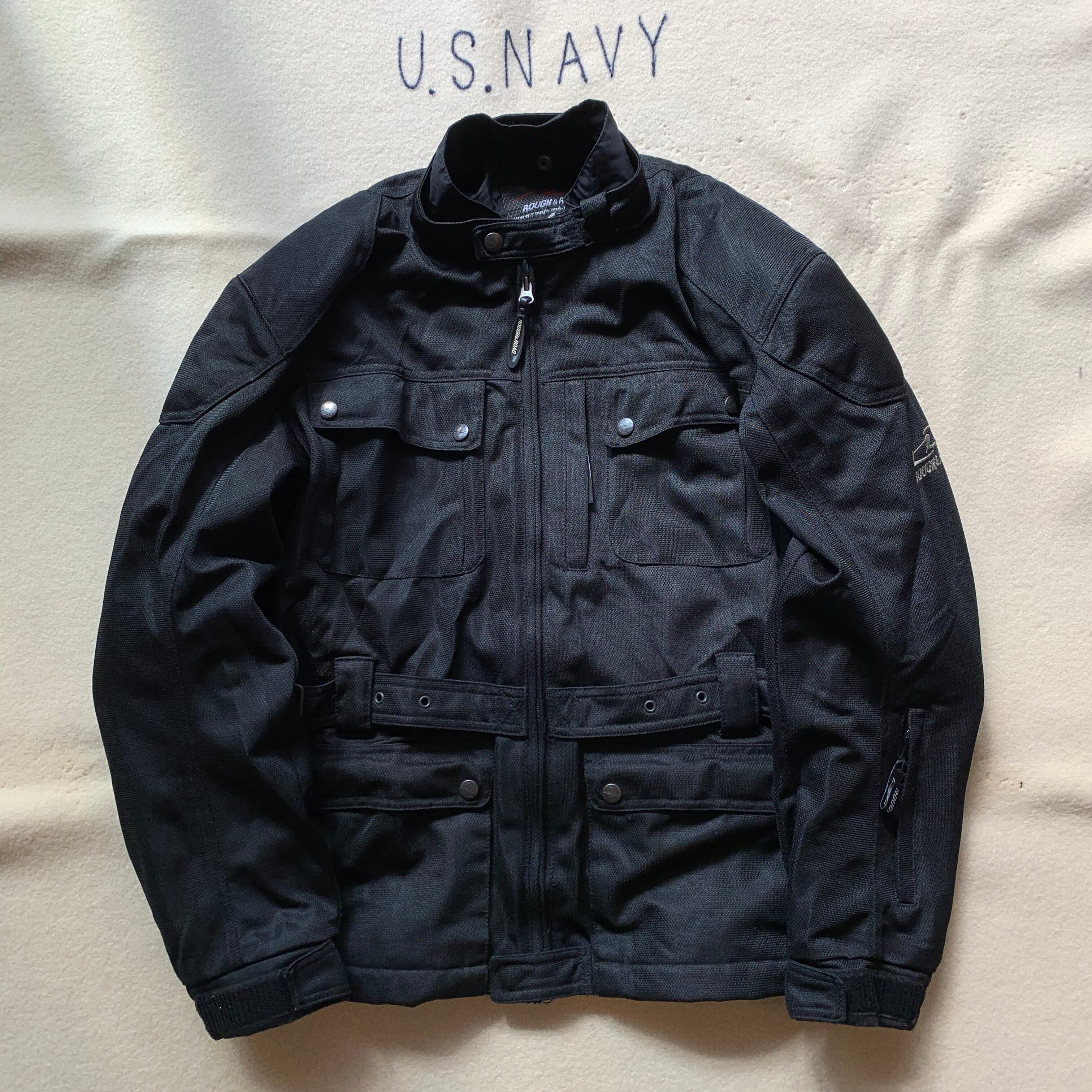 RR5325のモデルに似ていますが恐らくそれよりも前のモデルと思います。若干の使用感ありますが着用や見た目に問題は無いと思います。背中、肘、肩にプロテクター付き。ジッパーの開閉問題なしです。