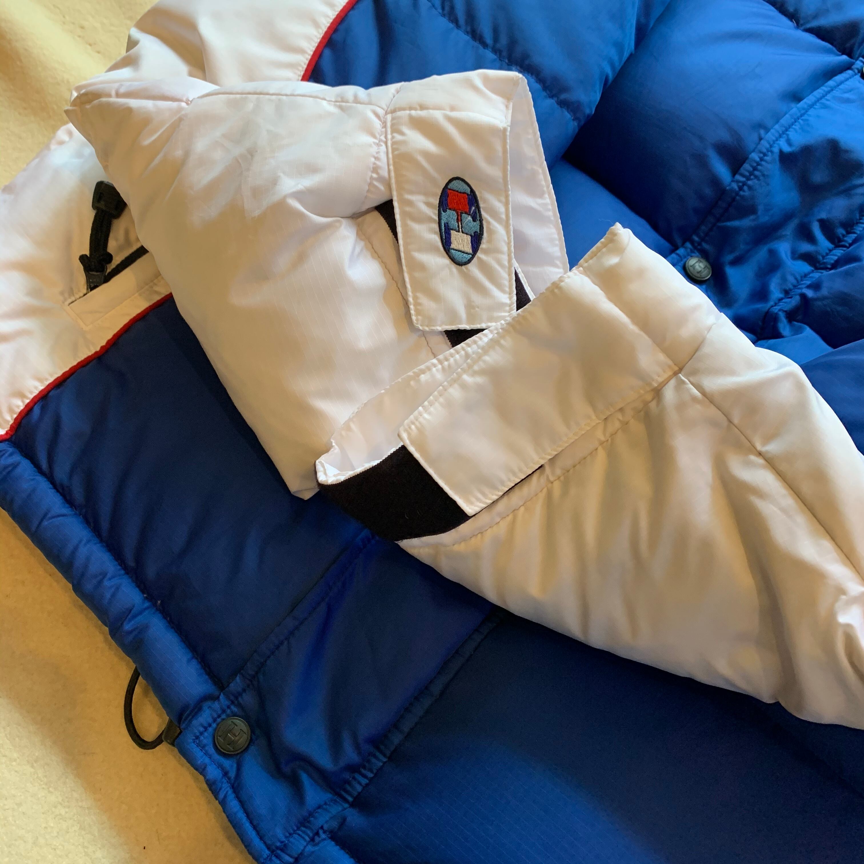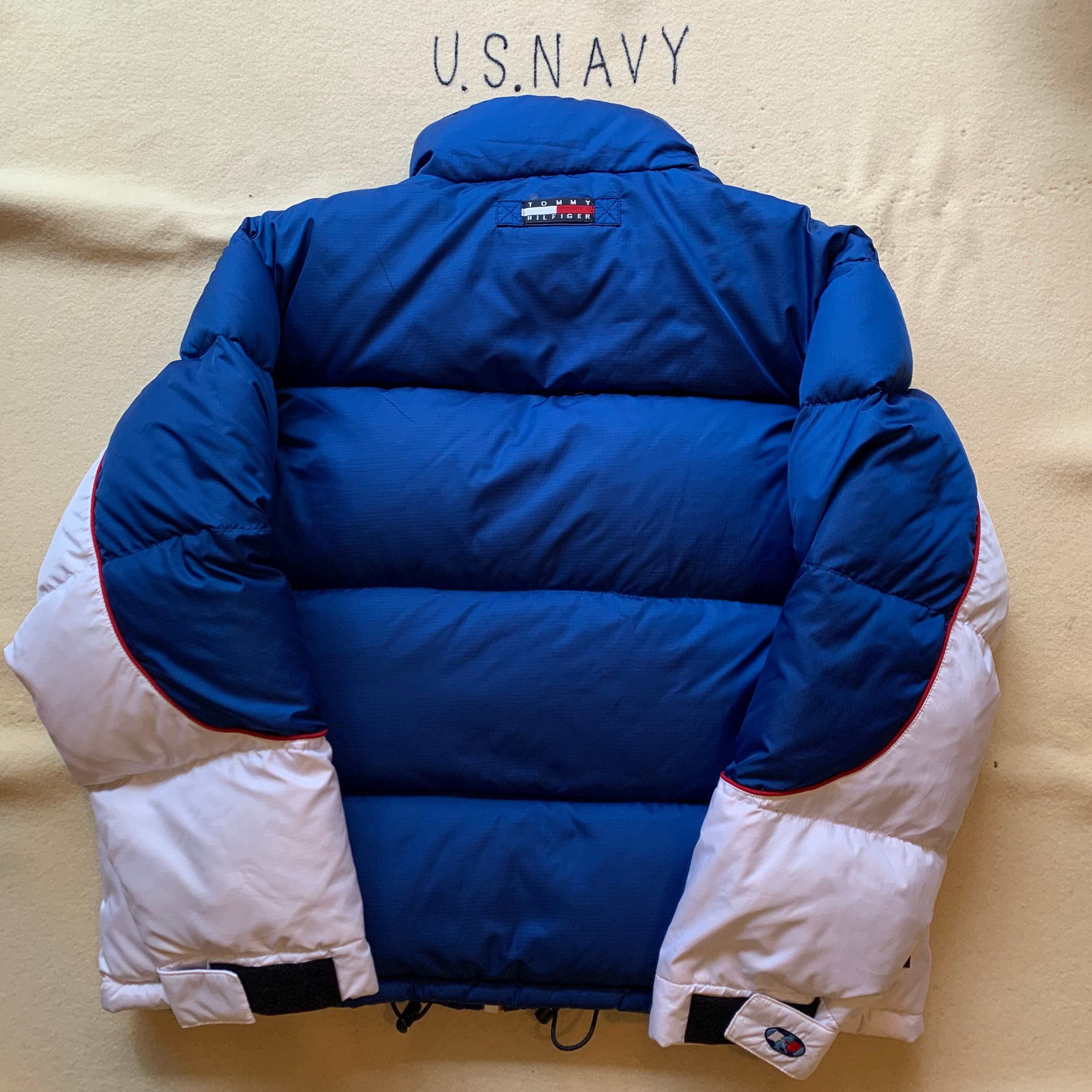 90s TOMMY SPORTSのダウンジャケット。トリコロールカラーのトミーらしい配色ですがこの辺の良配色ダウンは中々出てこないと思います。