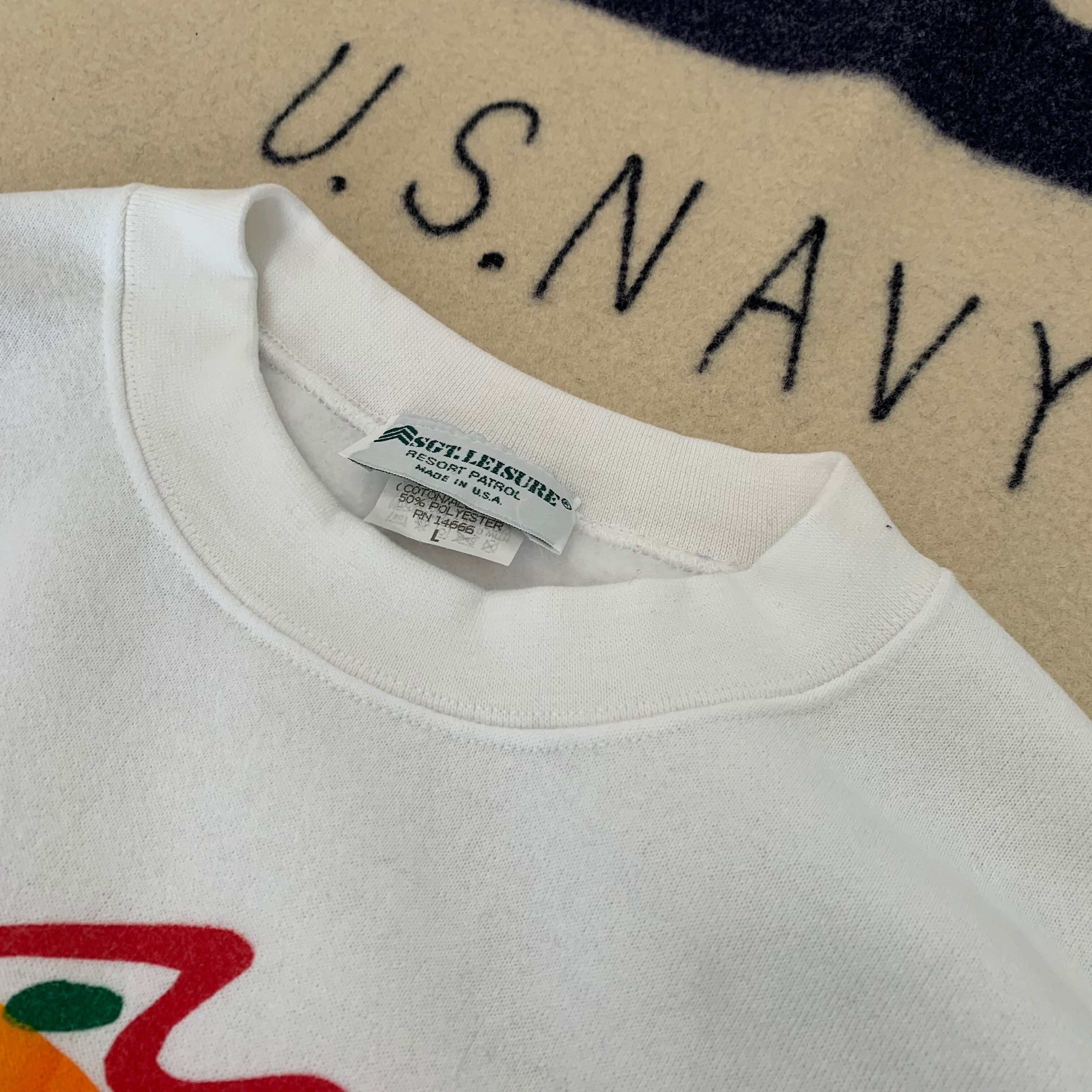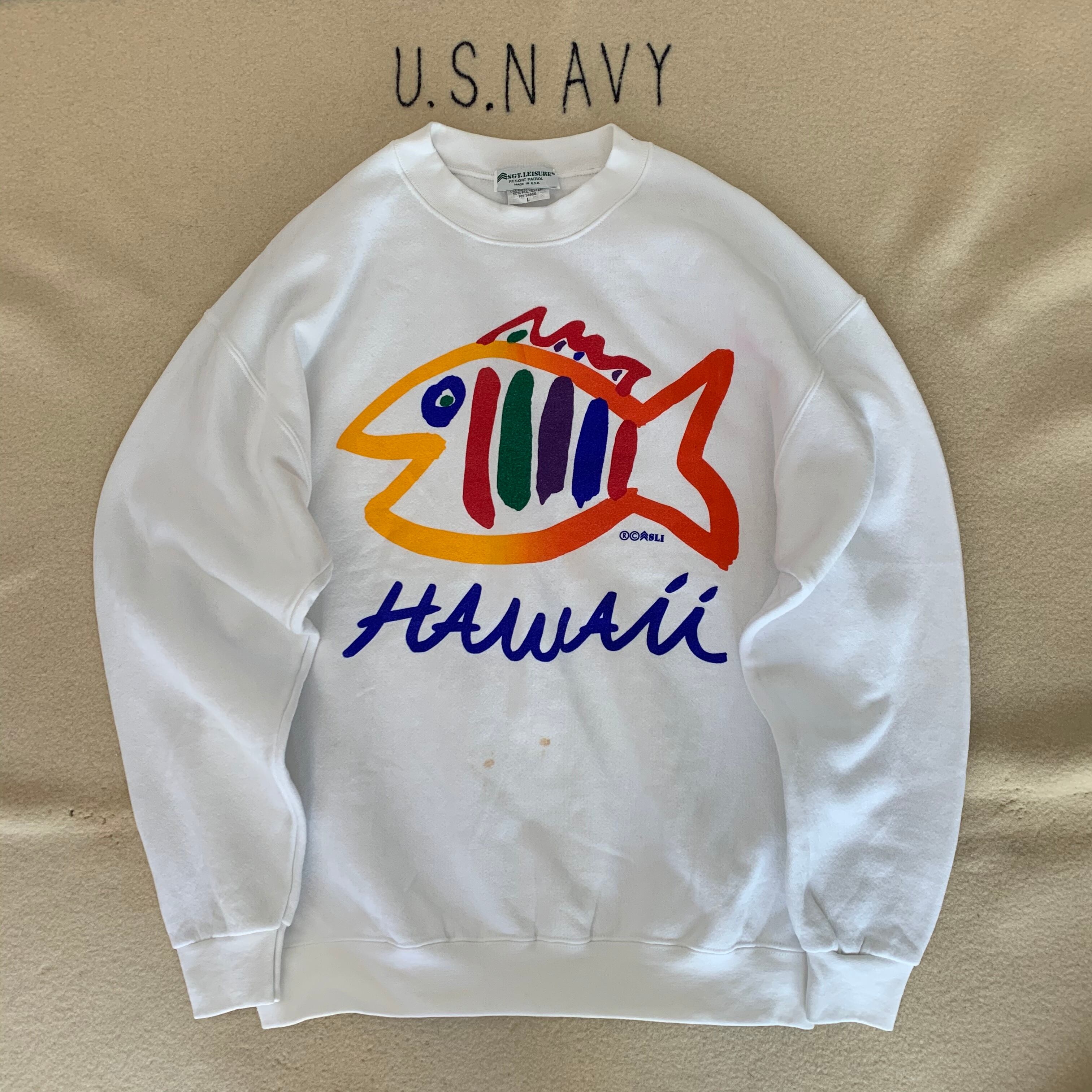90s頃のヴィンテージスウェット。当時のHAWAIIのお土産と思います。とぼけた魚がいい感じです。