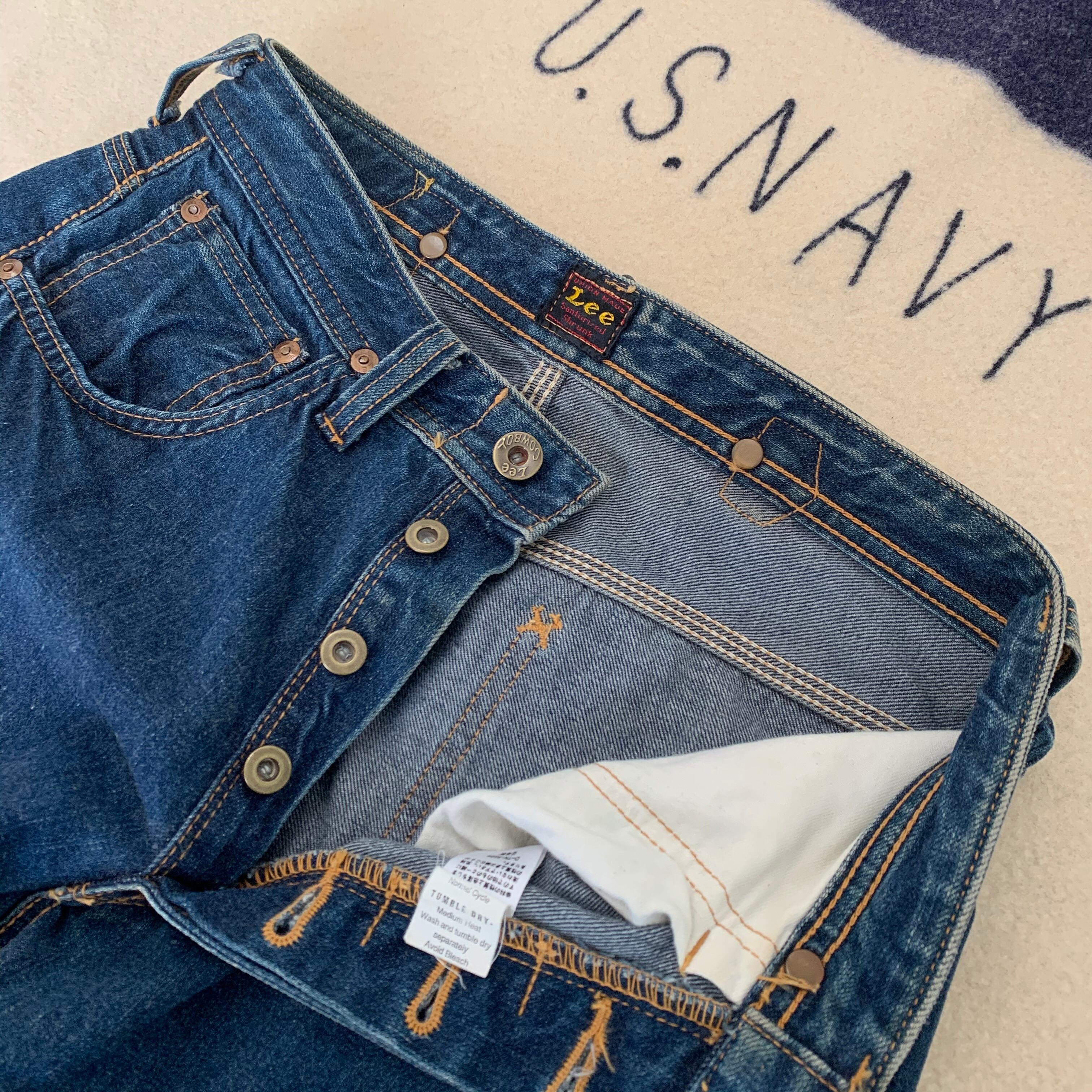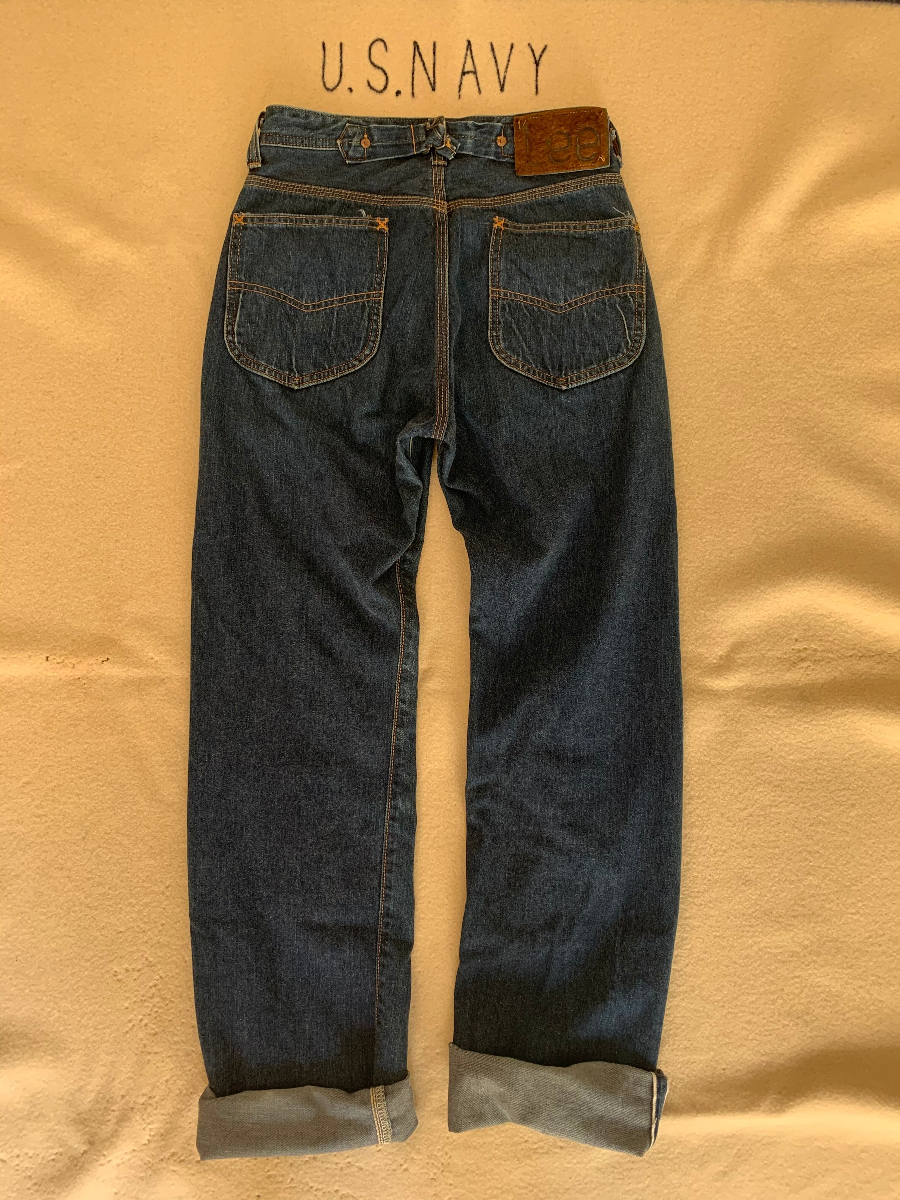 LEE 101 COWBOY。30s頃のモデルの復刻です。ヘアオンハイドにシンチバック、セルビッジは青耳になってます。色残り80%程。