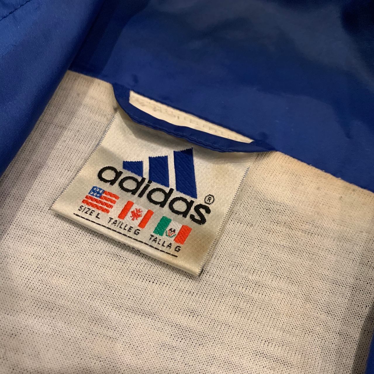 90s頃のadidas ナイロンジャケット。この頃はカラーリングやデザインで目を引くものが多いです。良いカラーリング。