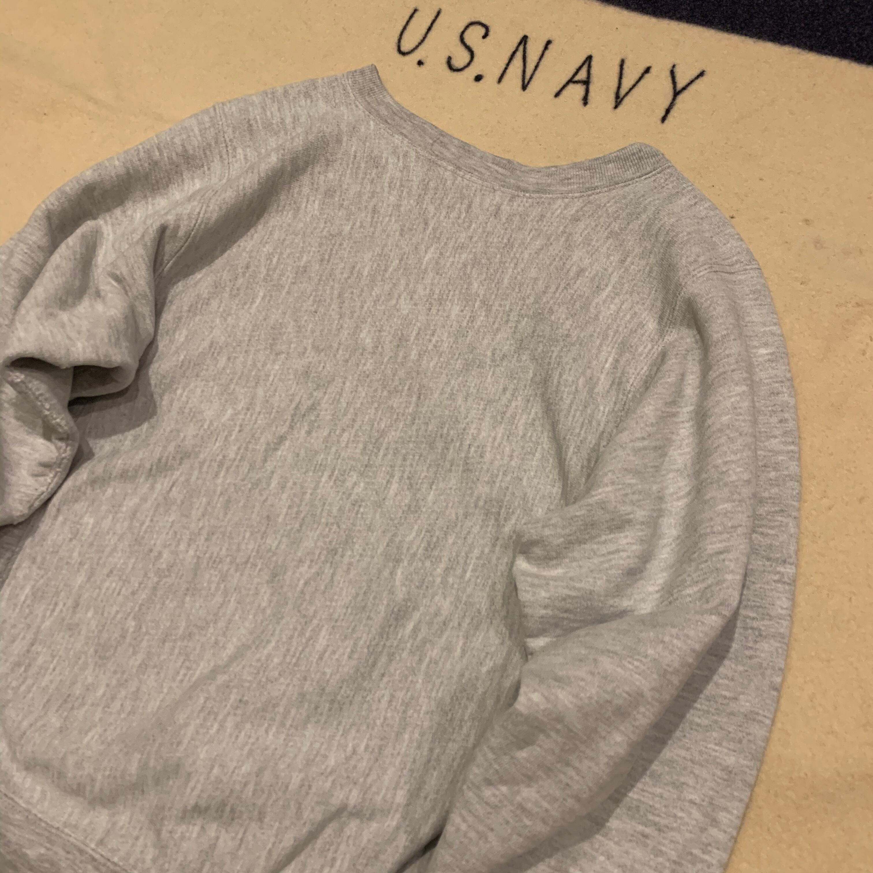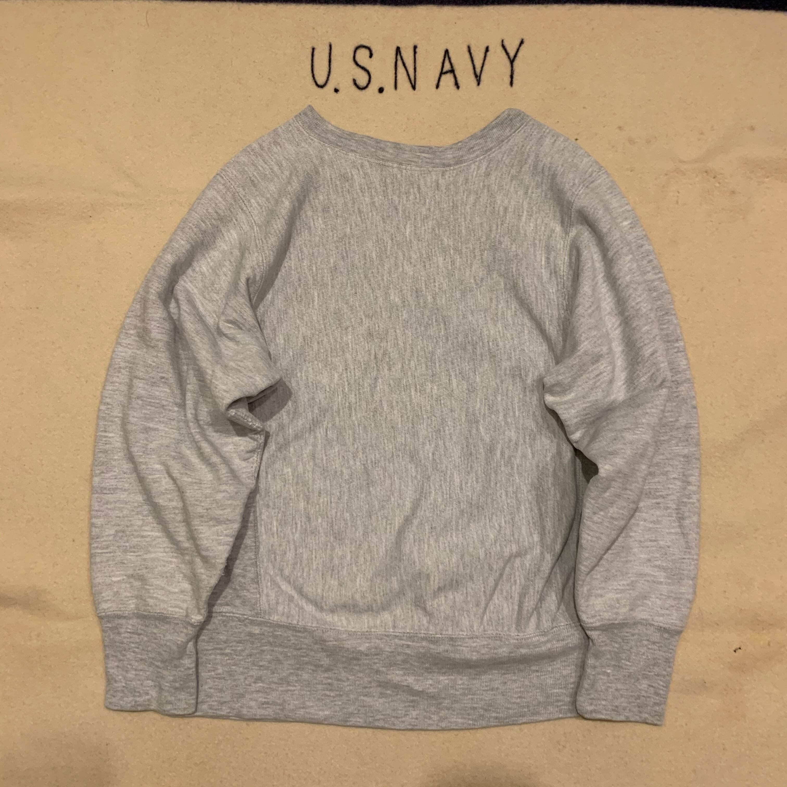 タグ欠損ですが肌触りや取れたタグの色使いから80sのトリコタグがついていたモデルで間違いないです。ソリッドカラー、定番の杢グレー。
