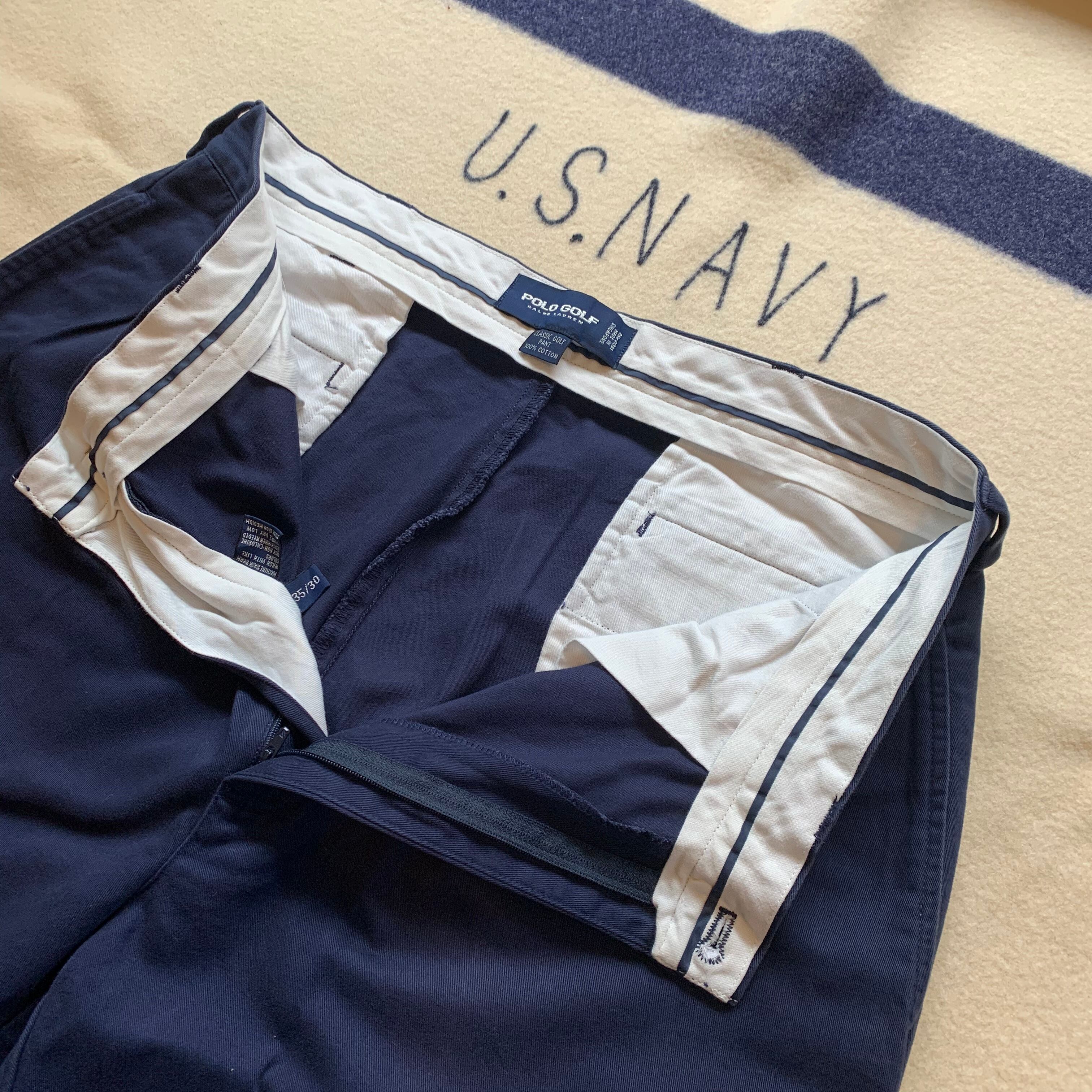 90s頃のヴィンテージ POLO GOLF。2タックのクラシカルなシルエット。カラーはネイビー。ワイドシルエットのこのカラーはかなりストリートライクです。