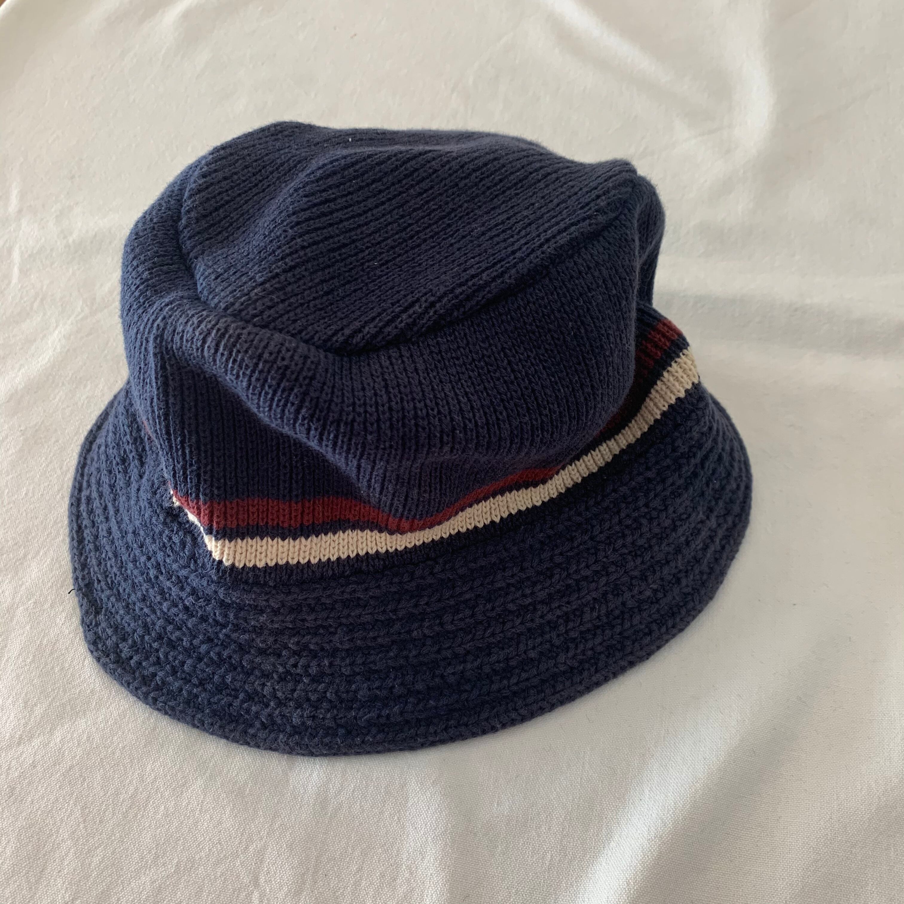 珍しい90s頃のコットンニットのバケットハット。ラルフやランズエンドなんかでありそうなカラーリング。コットンニットというのも面白いです。90sストリートをごりごりに感じるハットです。わかる方是非。