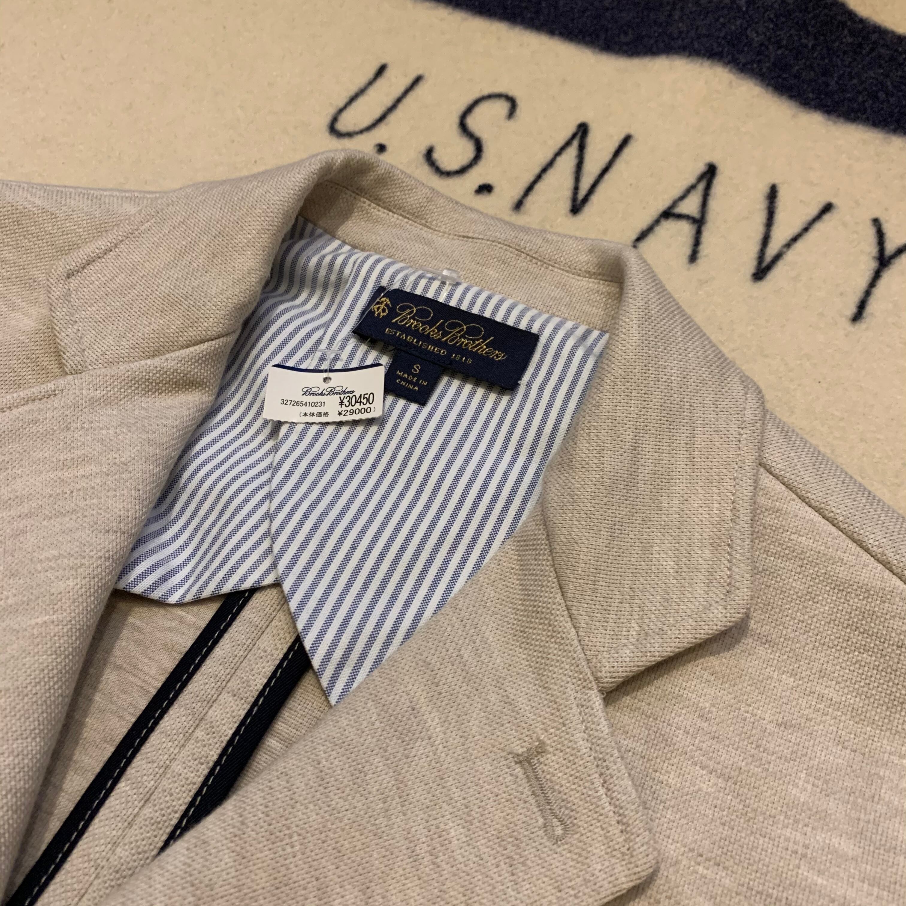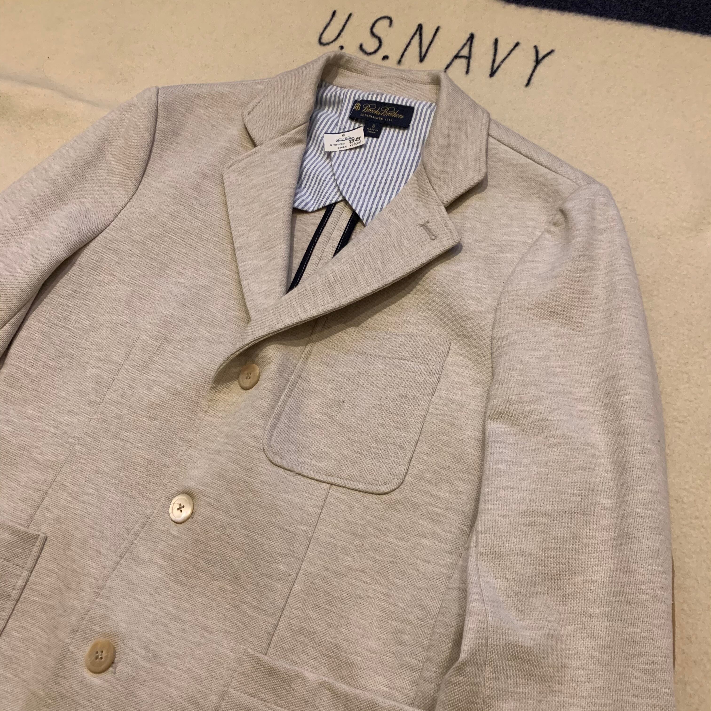 BROOKS BROTHERSのテーラードジャケット。コットンベースのカジュアルでもさらっと羽織れます。スウェードの肘当てがアイビーライクで素敵です。新品未使用、定価¥2,9000_+tax。プレゼントにも。