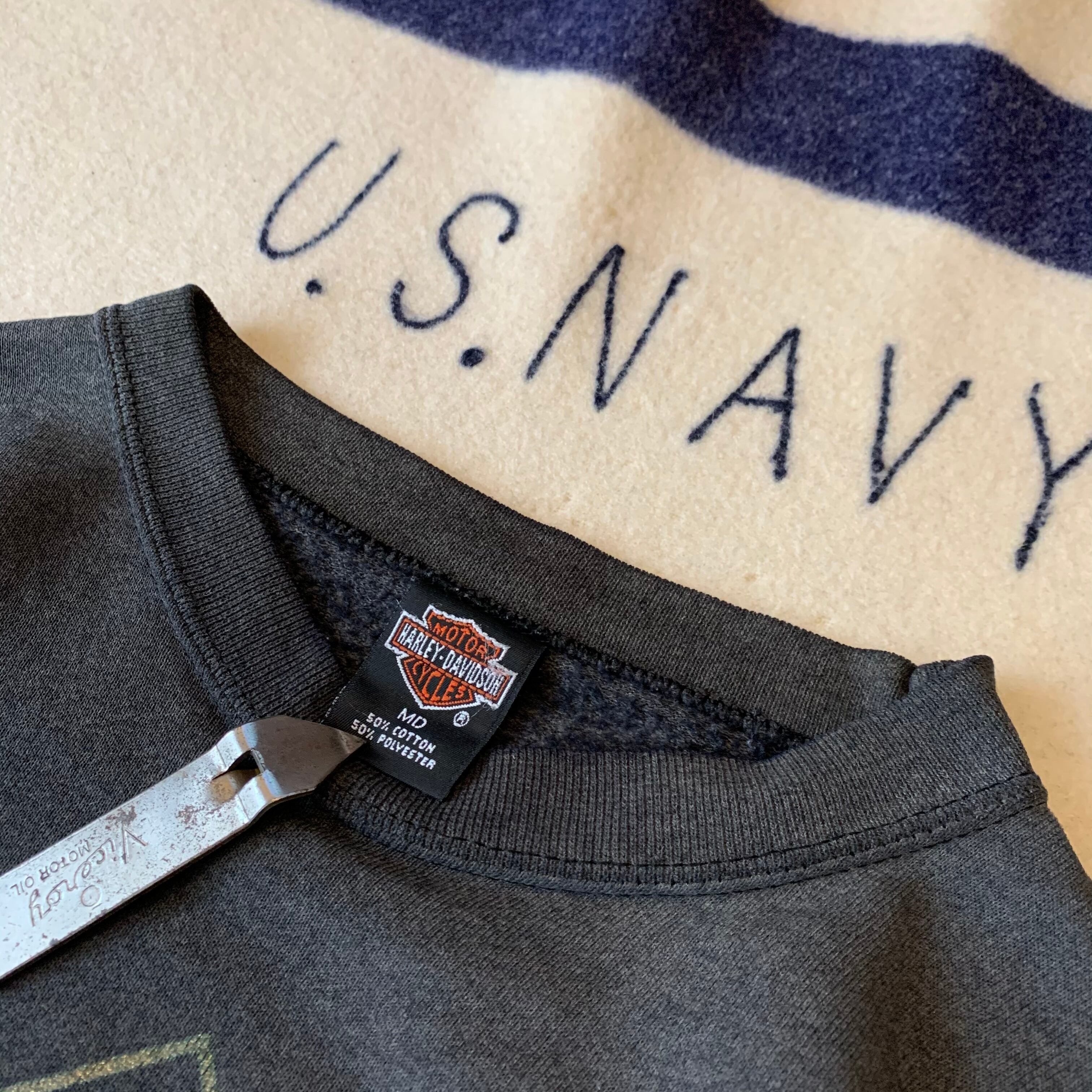 コピーライトが潰れて見えないですが90s頃のHarley Davidson ヴィンテージスウェット。あまり見ないタイプのハーレーの主張が少ないタイプ。レアです。