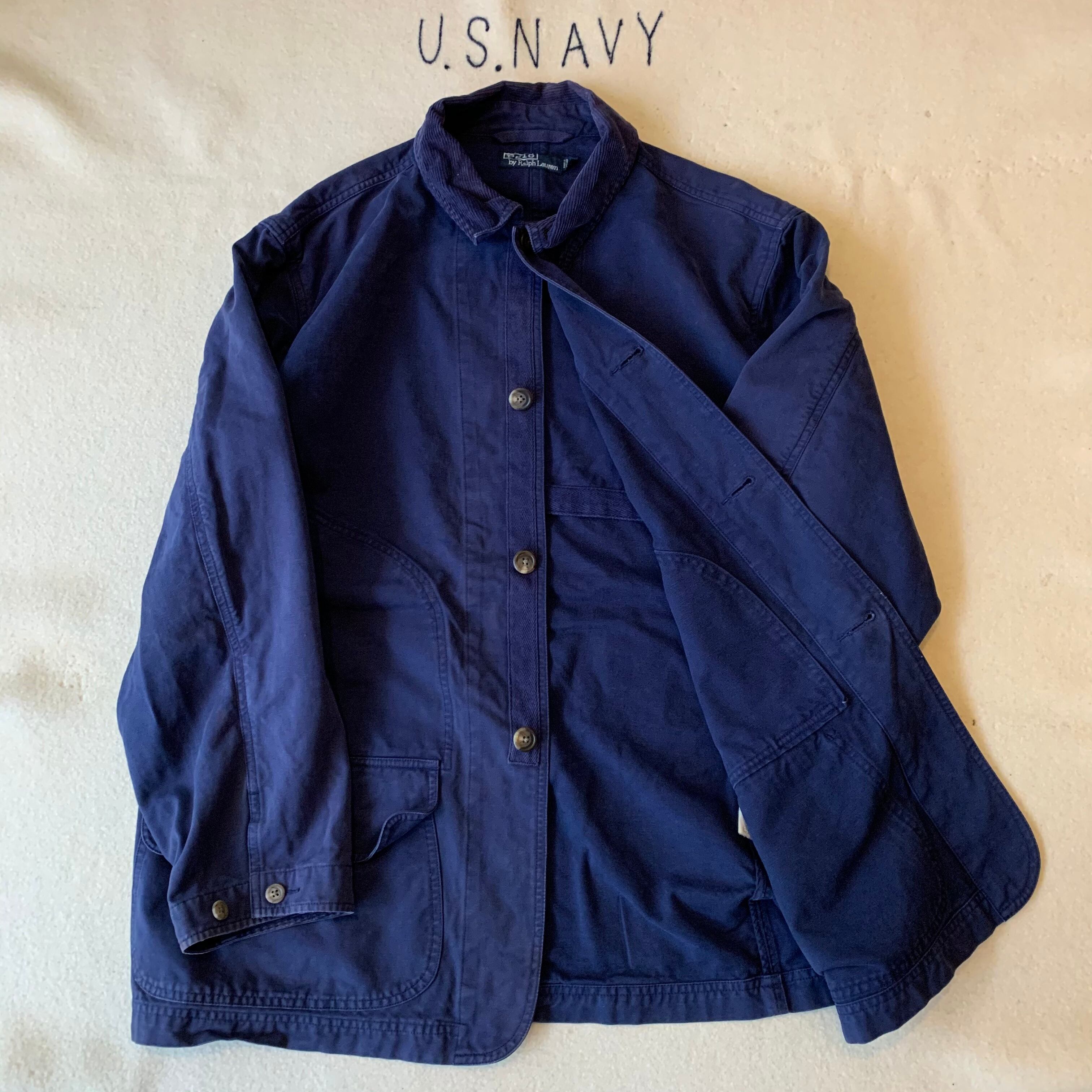 90s頃のPOLO by RALPH LAUREN。コットン地のハンティングジャケットベースのジャケット。LL BEANのダックハンティングと形は似ていると思います。そこまでごつくないコットンなので中にも着込めていろいろ着回しがきくと思います。