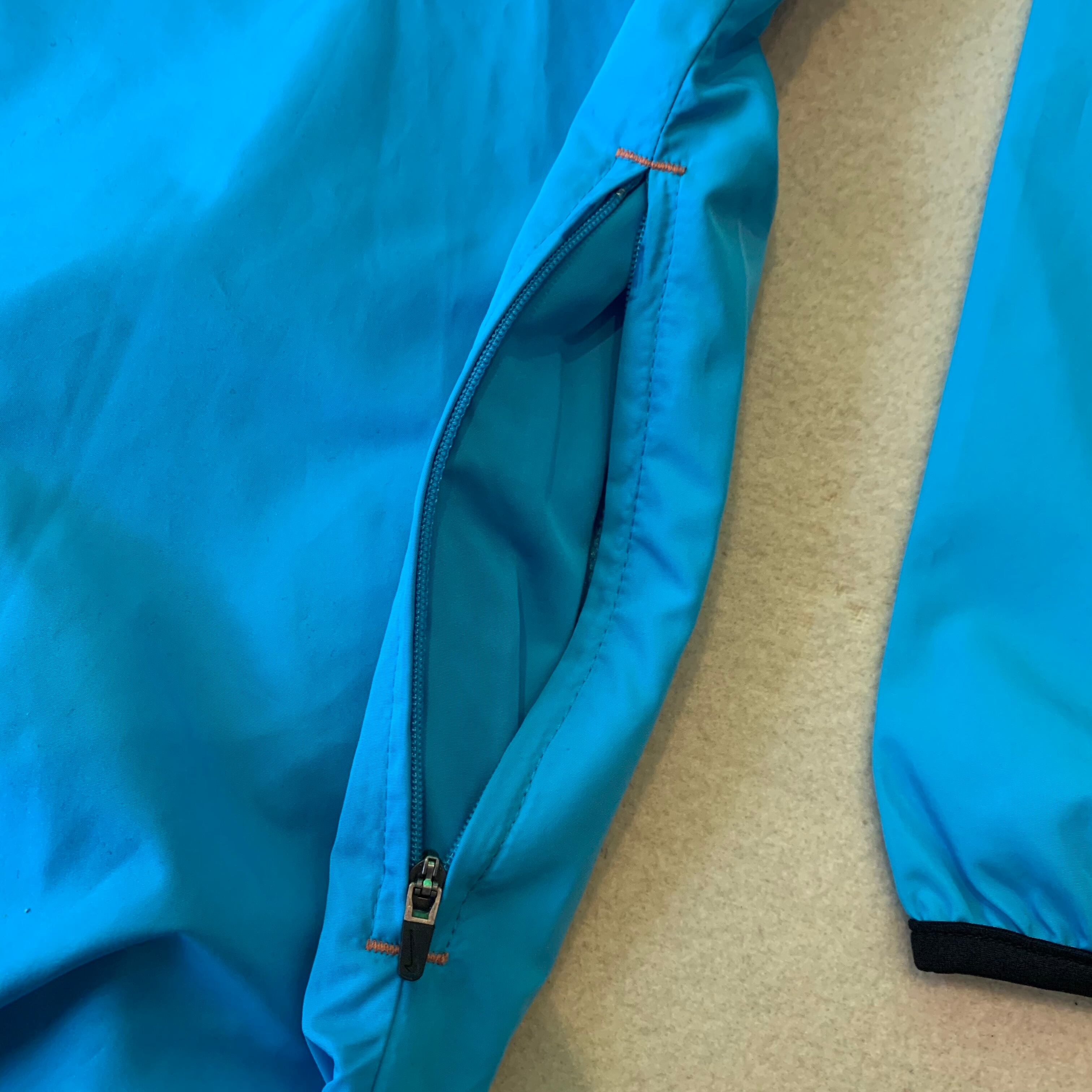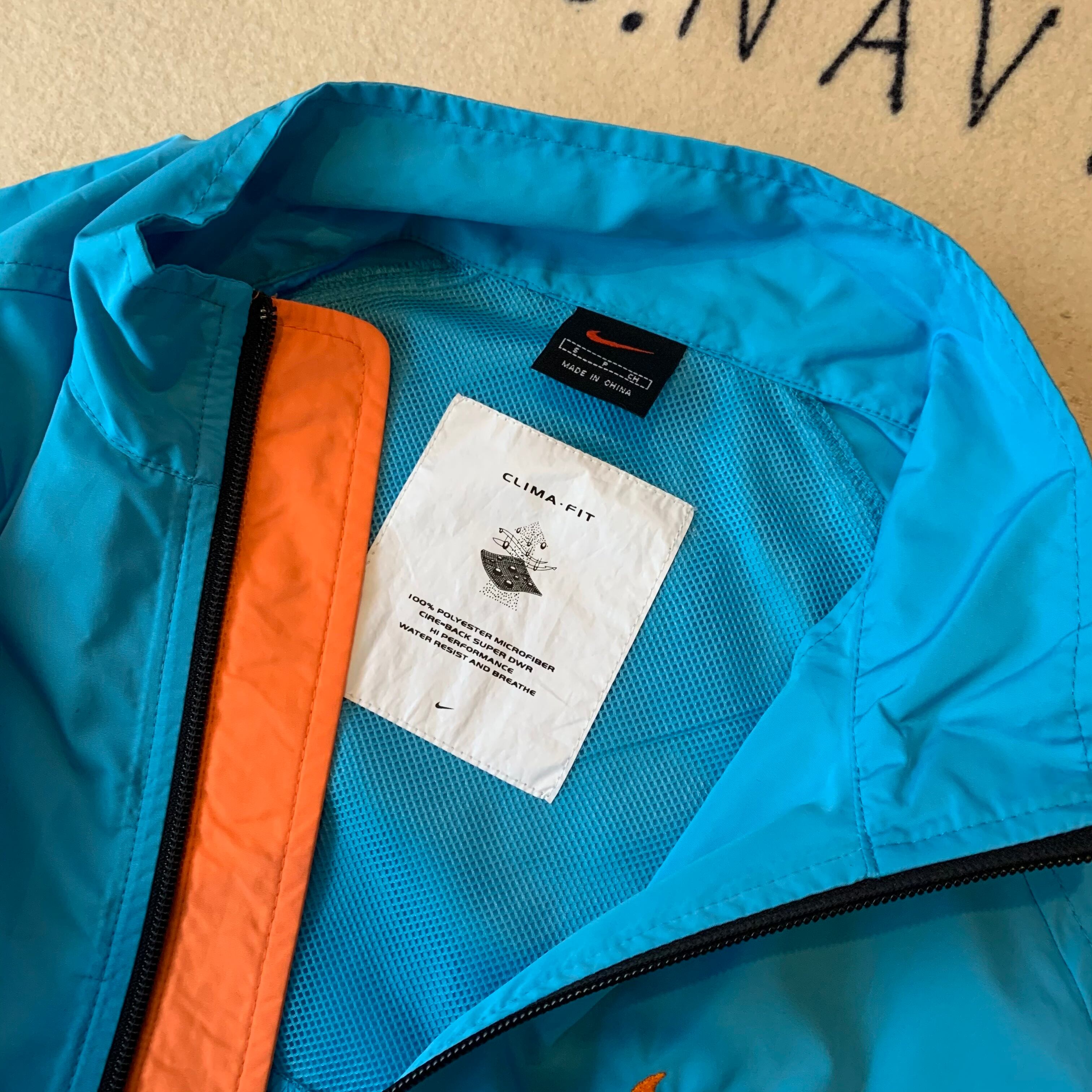 NIKEのナイロンジャケット。タウンにもスポーツにも着回しのきく一着です。全体的に使用感もなく美品ですがフロントジップのプラスチックの部分が欠損しています。