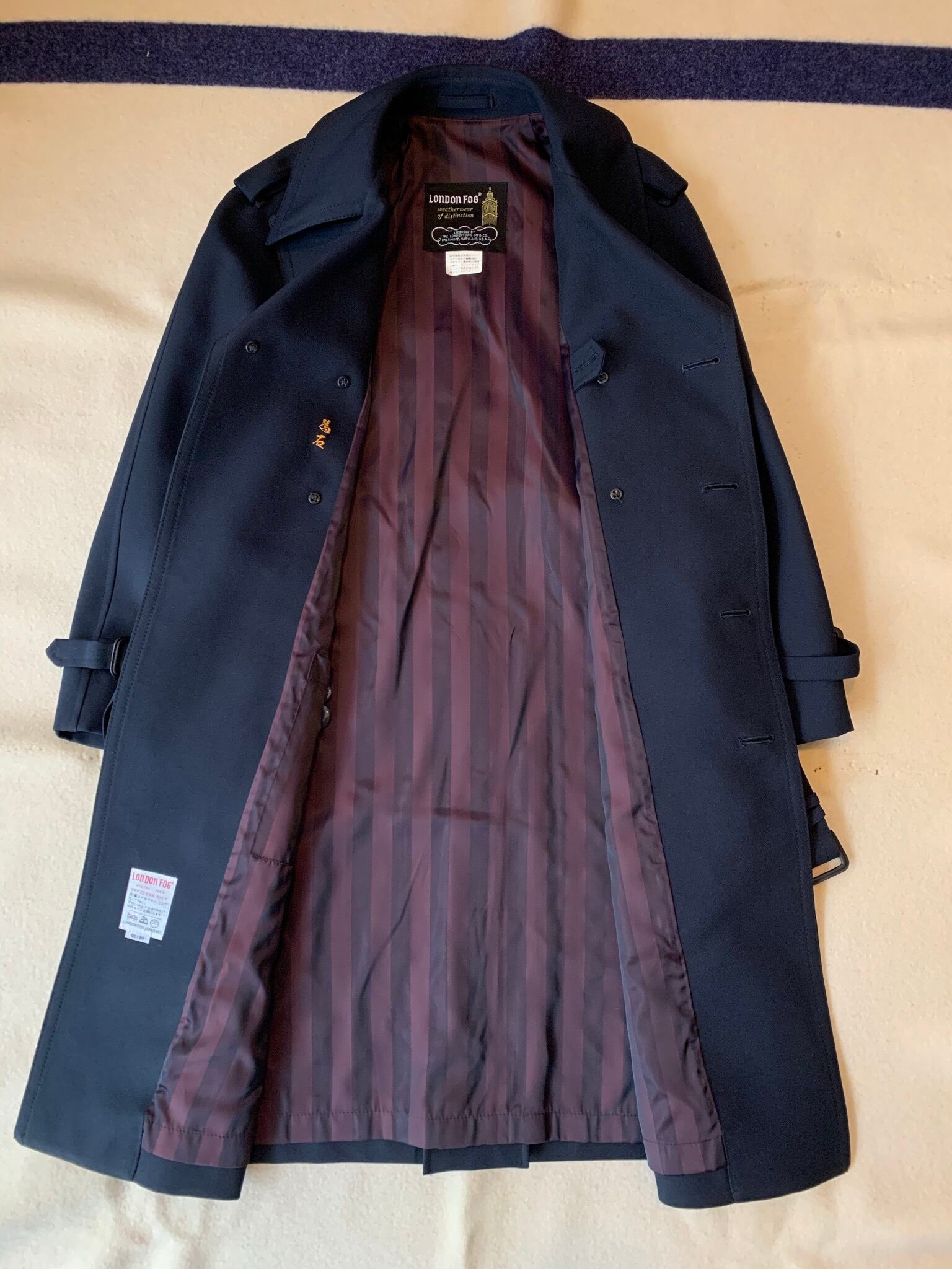80s-90sあたりのLONDONFOG トレンチコート。カラーは少しネイビー感のあるブラック。日本で仕立てられたLONDONFOG JAPANのものですが初めて見ました。本家よりレア度高いのではないでしょうか、、