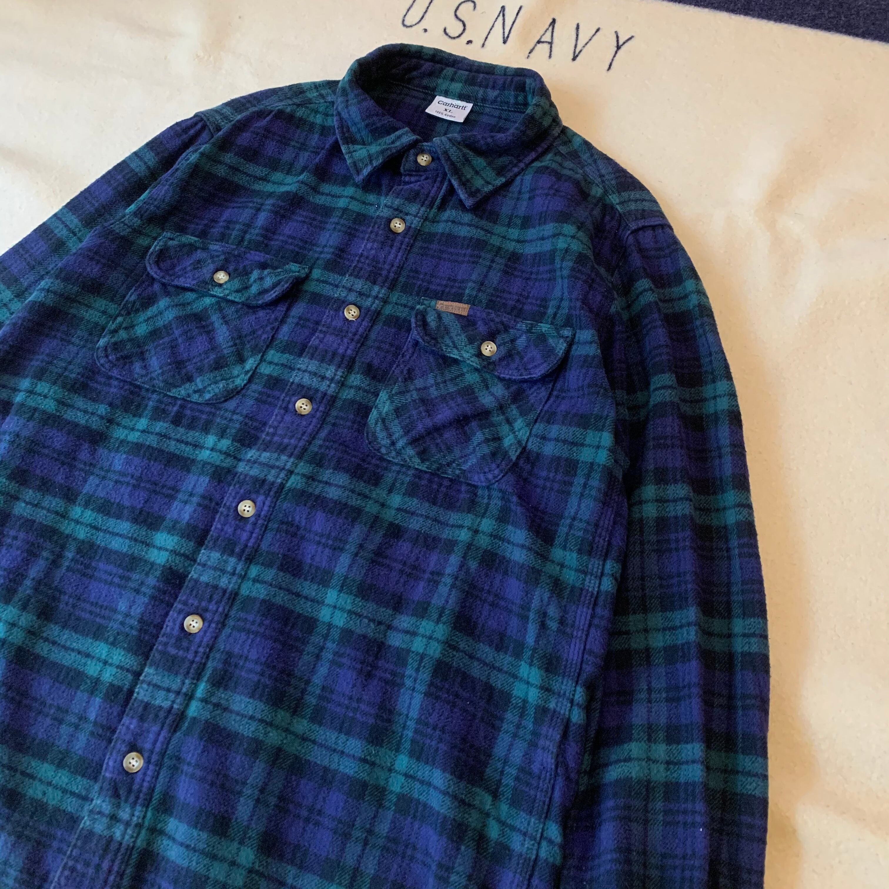 Carharttのコットンネルシャツ。厚めの生地のブラックウォッチパターン。汚れ破れなく状態良好です。