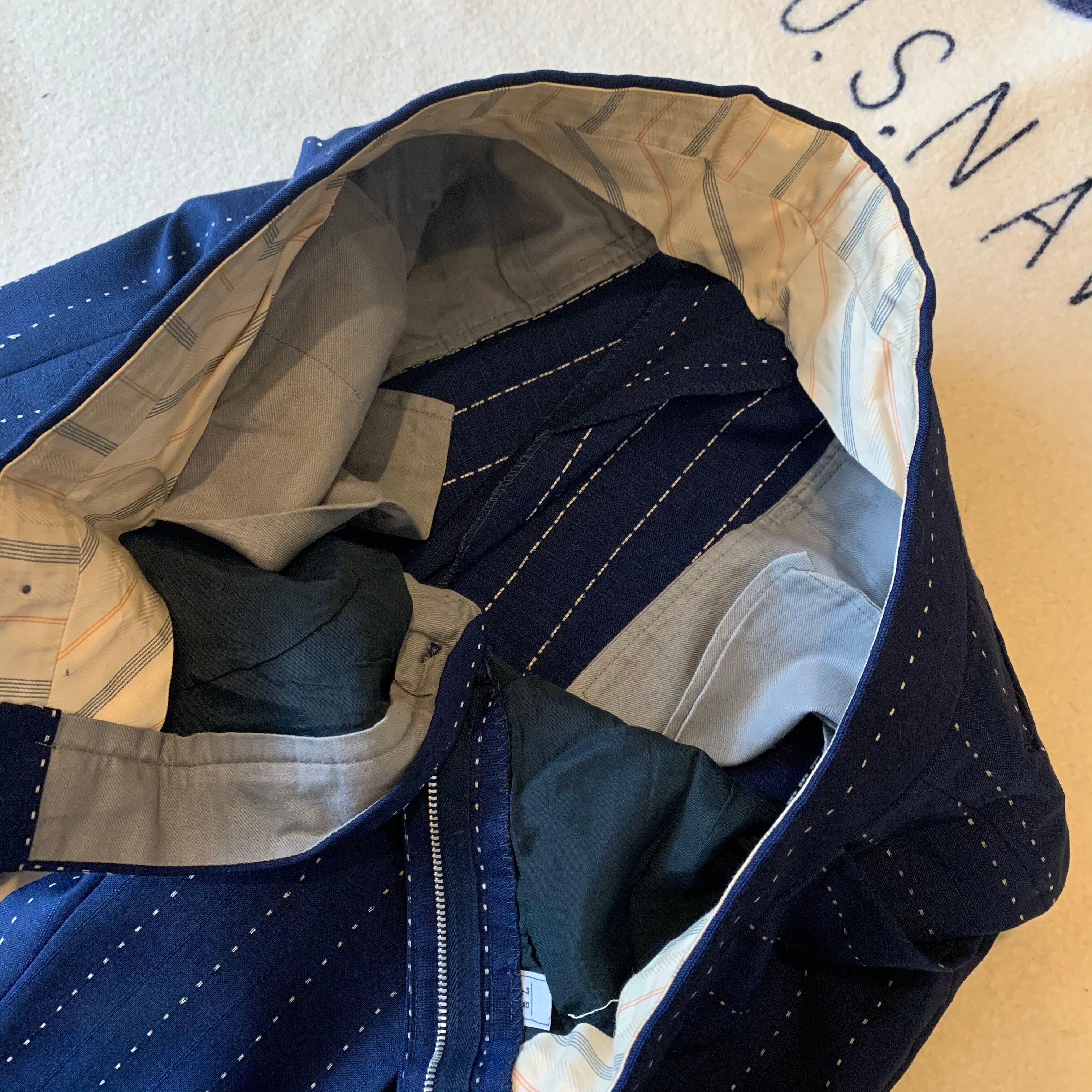 70s頃の国産ヴィンテージ。恐らくどこかのテーラーで仕立てられたものと思います。薄手の生地、ネイビーベースにホワイトのドットが入った珍しいパターン。