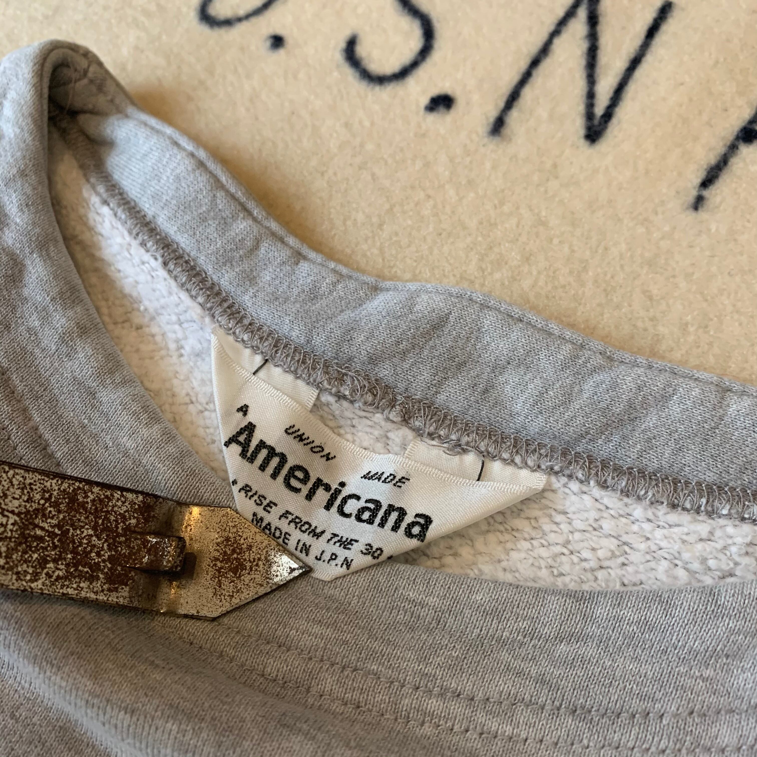 AMERICANAのスウェットシャツ。バック肩付近のステッチが切れては無いですがスウェット部が若干ごわついています。それ以外は着用感あまりなく美品と思います。