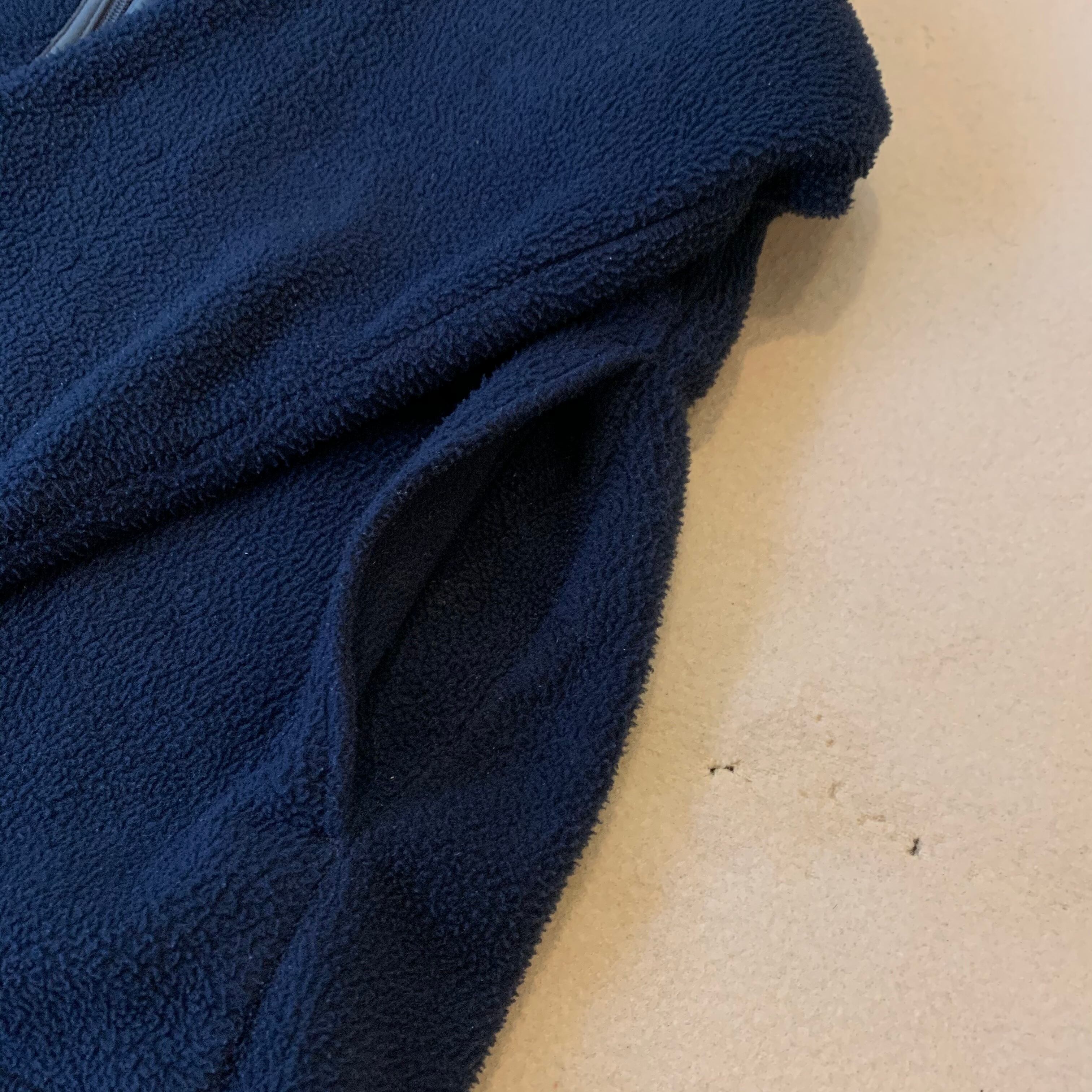 01sの春モデル。シンチラのフリースジャケット。ハーフジップでボディにポケットついてます。使いやすいです。カラーはネイビー。古着特有の使用感はありますが汚れや破れなく古着慣れしていれば問題なく着用可能と思います。
