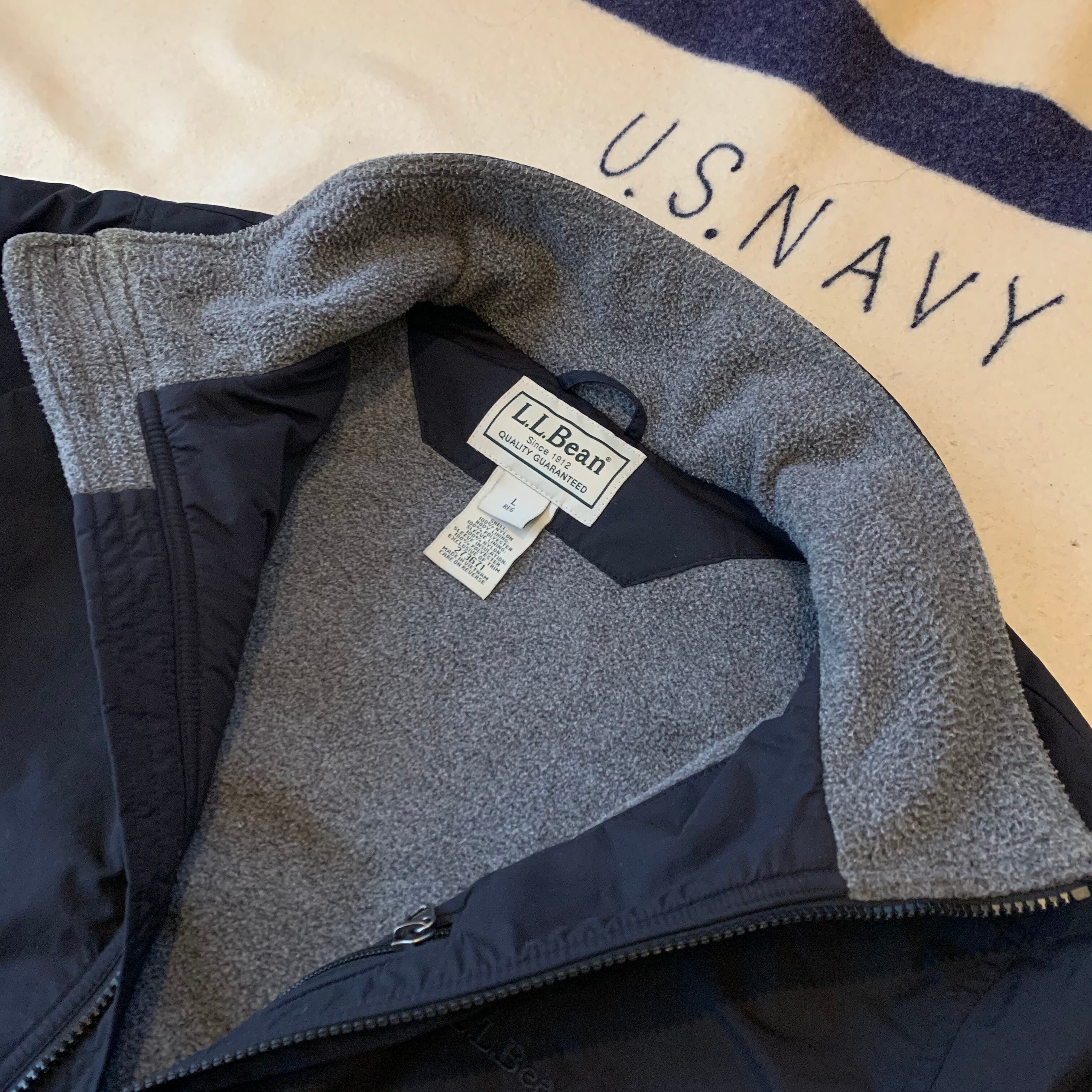 90s頃のLL BEAN。シェルがナイロン、裏地がフリースのいわゆるシェルドジャケット。カラーはブラックで左胸にワンポイントでLL BEANのロゴが入ります。