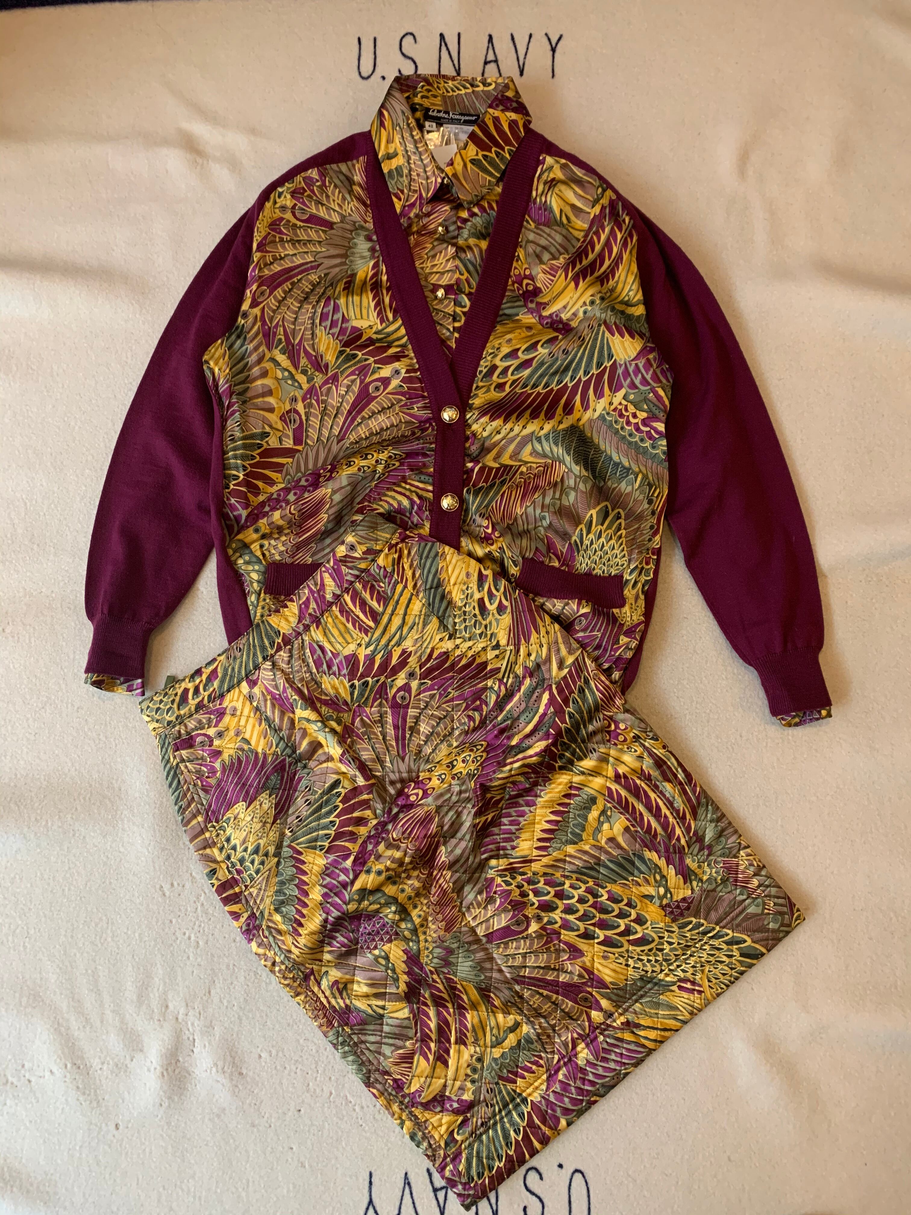 この出品とは他に同デザインのシルクシャツ、ハーフ丈のスカートを入荷してます。一枚でも相当レアですがこんなことはそうそう無いと思います。10枚目にセットアップの写真を載せています。バラ売りしていますがセットアップでもお売り致します。