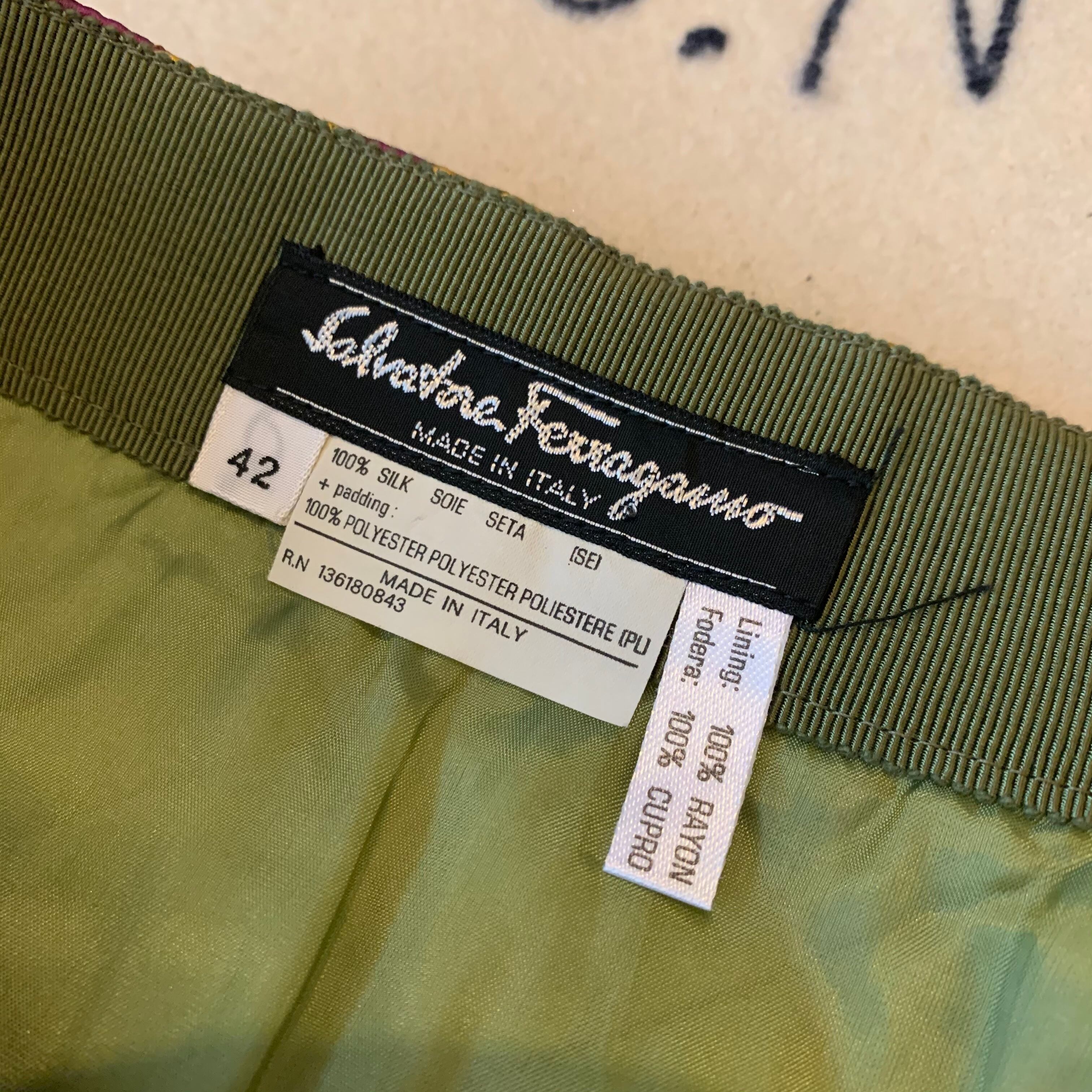 80s頃のSalvatore Ferragamo。made in Italyのシルクスカート、デザインモチーフは孔雀と思います。オールシルクの贅沢なスカートです。