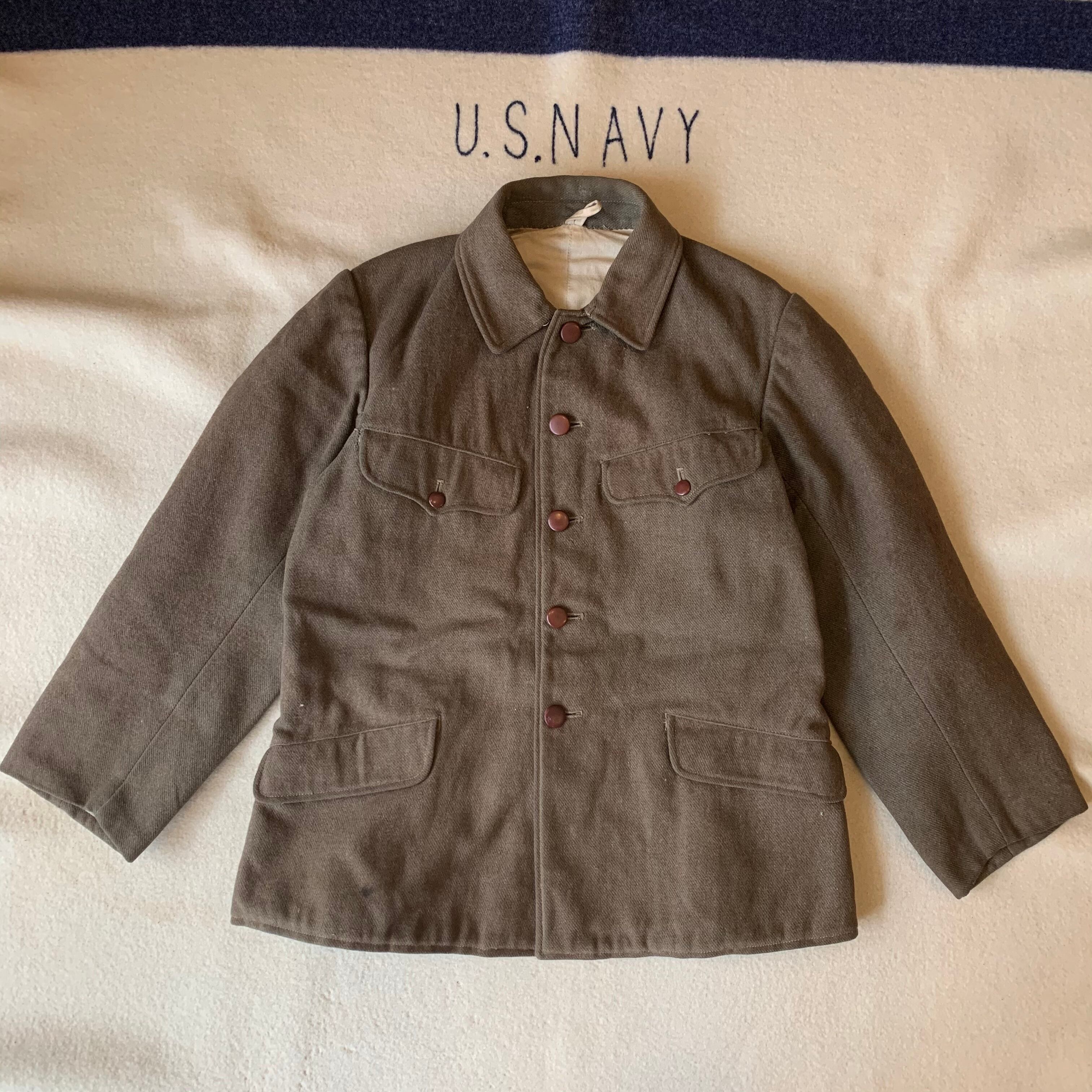 昭和18年、旧日本陸軍の九十八式。アメリカ軍でいうフィールドジャケットにあたるもので冬用、ウール地になってます。ボロボロで状態の悪いものが殆どの中この状態は奇跡かと思います…