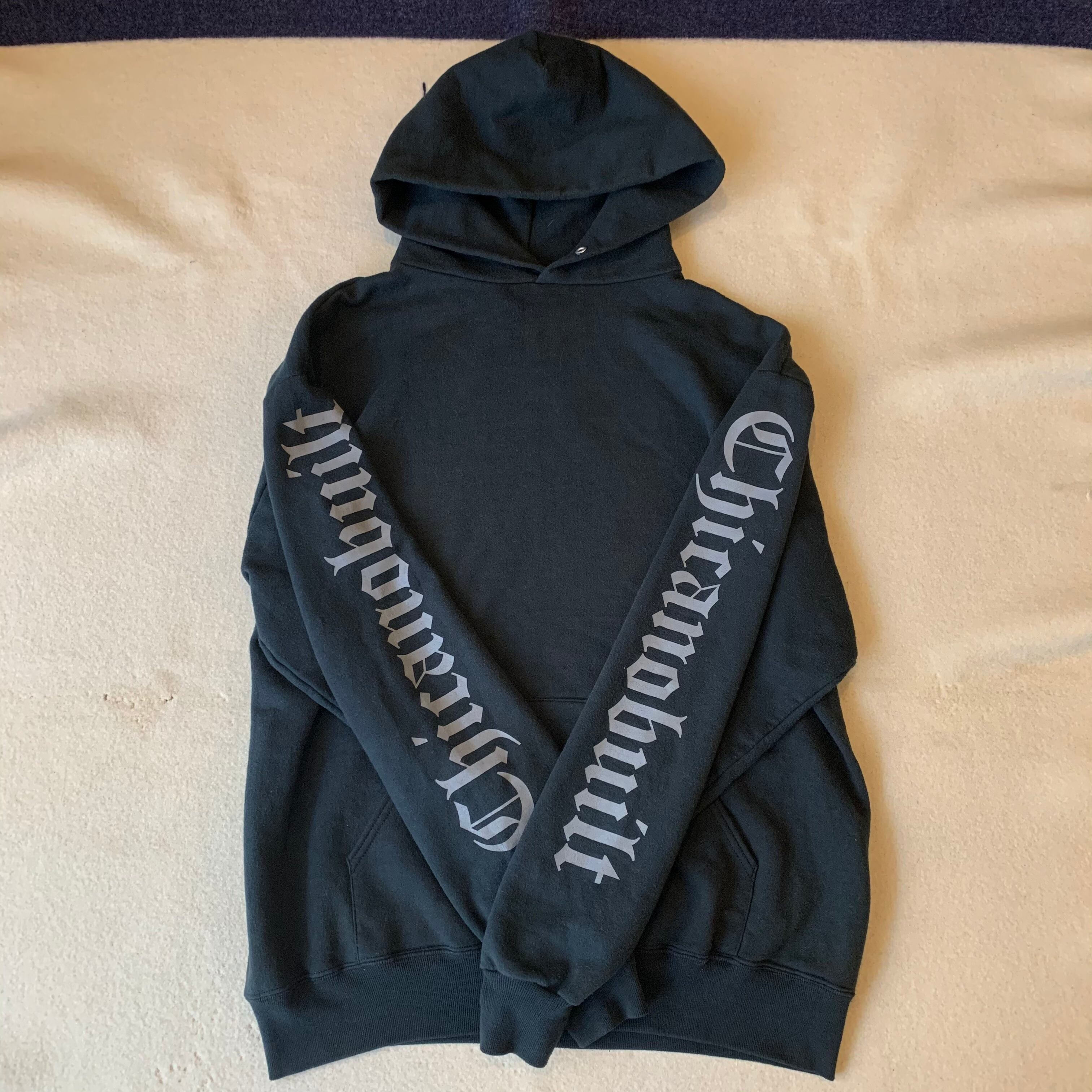 90s頃のJERZEESボディのヴィンテージパーカー。ラップ好きにはたまらないこのデザイン。メキシコ系アメリカ人の意味でチカーノラップのあれです。
