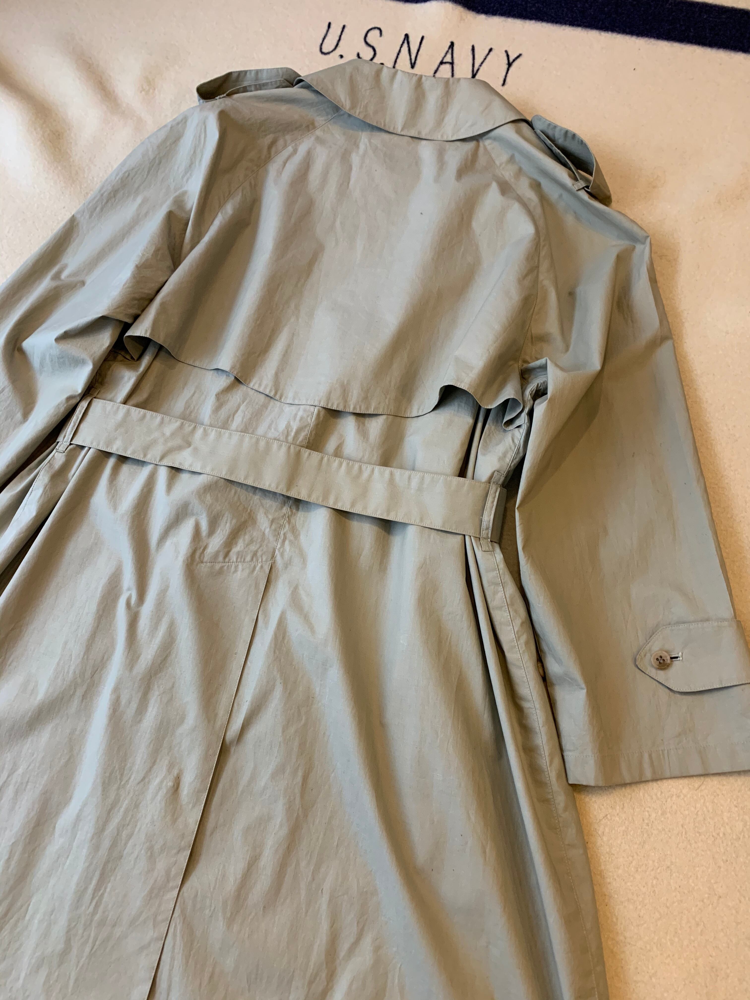 珍しい薄手のコットン地、ワッシャー加工【しわ加工】の施されたBurberry’sのトレンチコート。中に色々着込めて上から羽織れるので春先や秋口なんかに良いと思います。