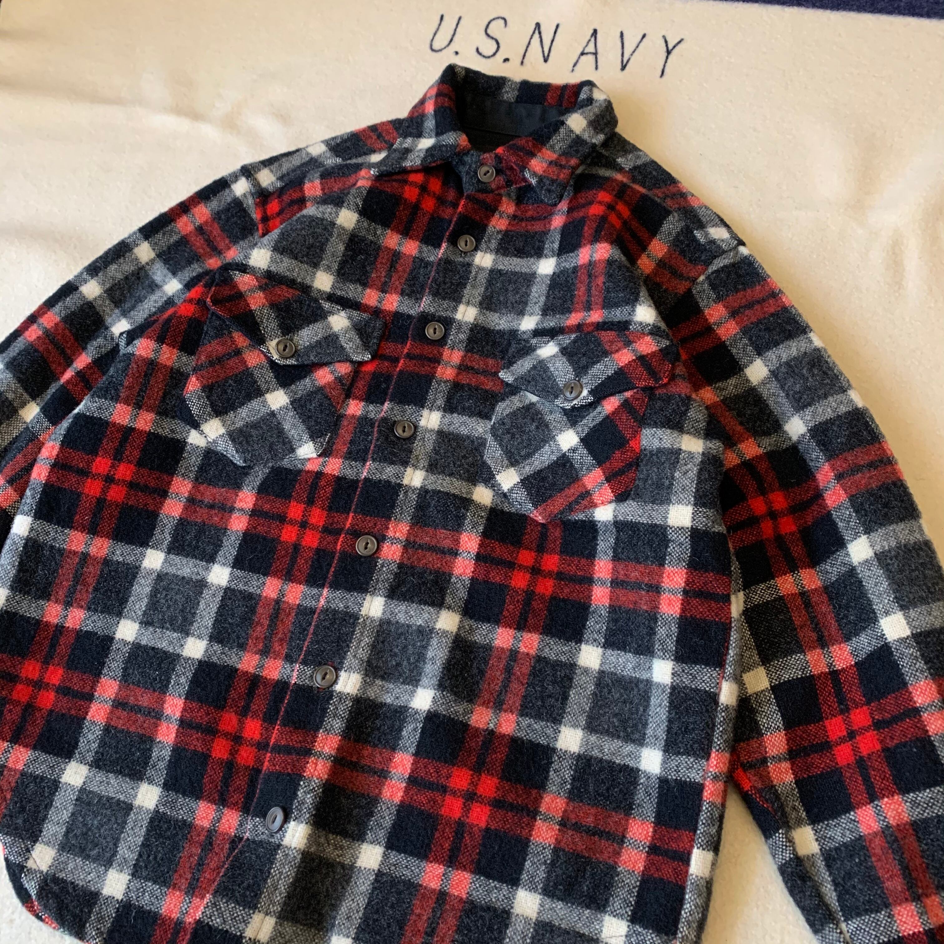 SWANDRIというブランドのウールシャツ。定番カラーで使い回し効くと思います。ほぼ使用感のない美品です。