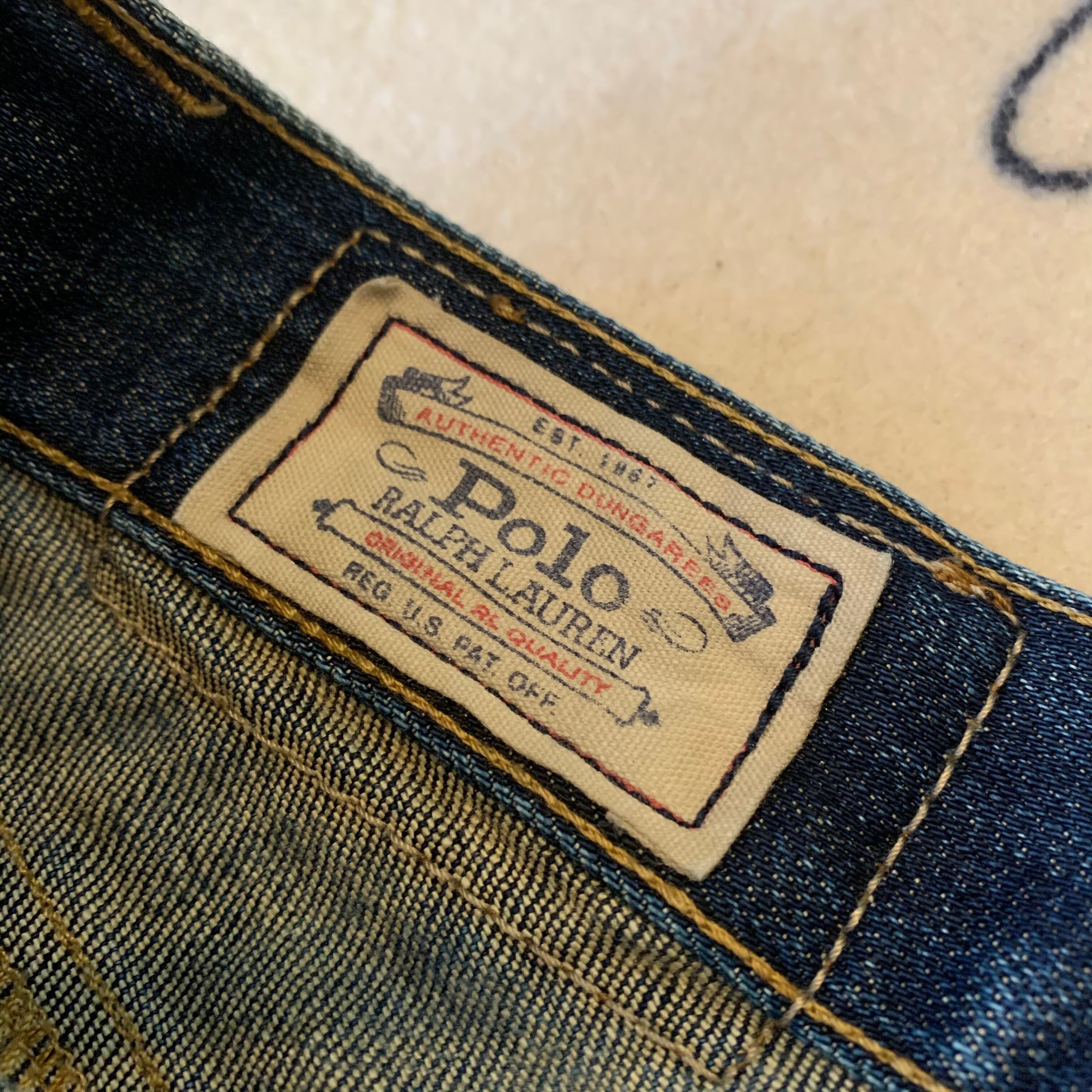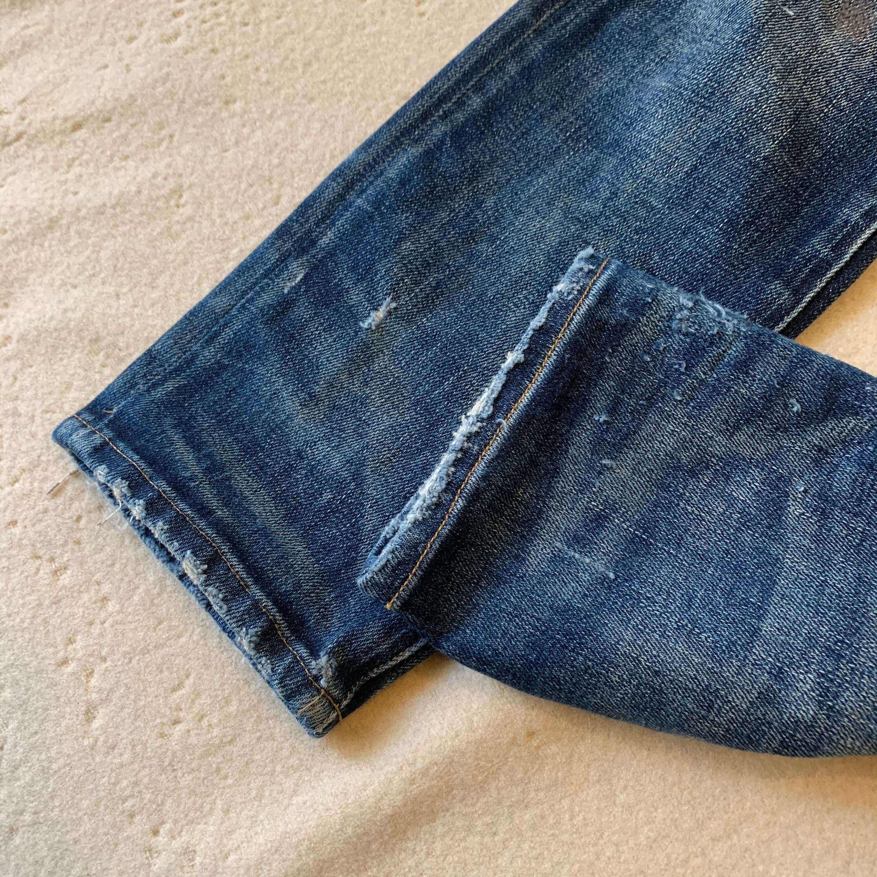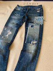 POLO RALPH LAURENのダメージ加工スキニー。ポリウレタンが入っておりストレッチのきくデニムです。秀逸なダメージ加工、パッチワークです。定価¥30,000_超。