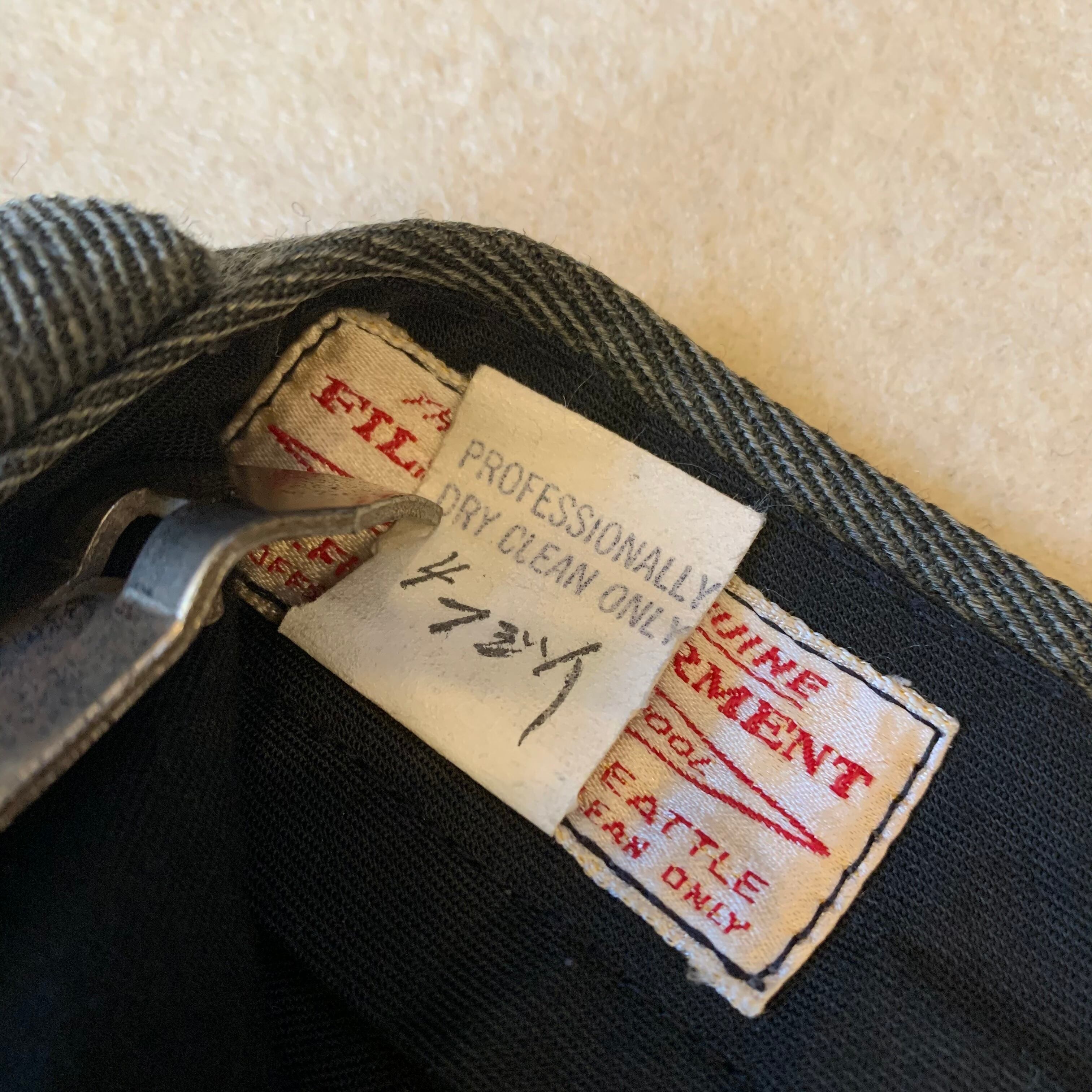 70s頃のCC FILSON。マッキノウクルーザーパンツよりも柔らかいウール地で着用しやすいと思います。カラーは写真では出にくかったですがグリーンがかったグレー。