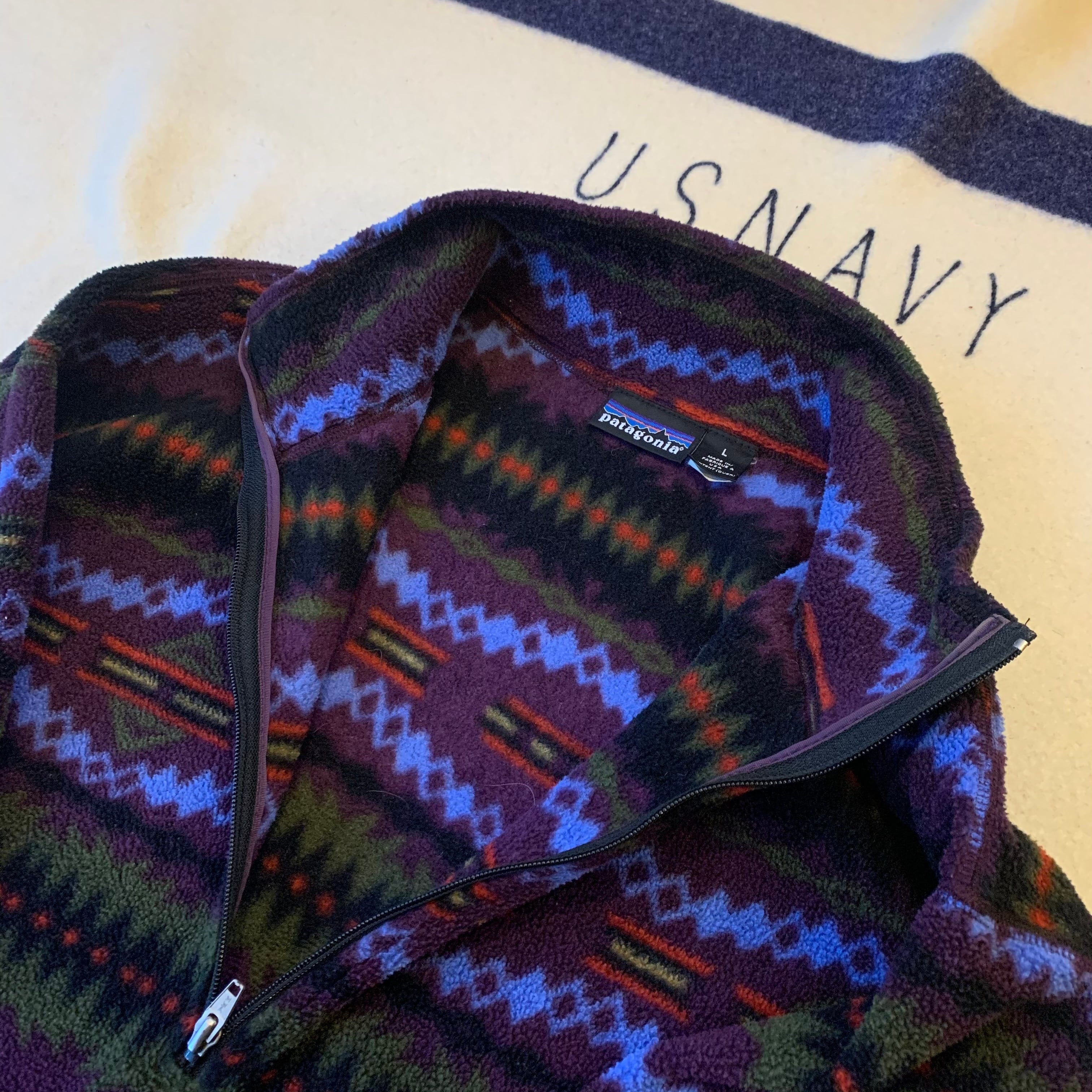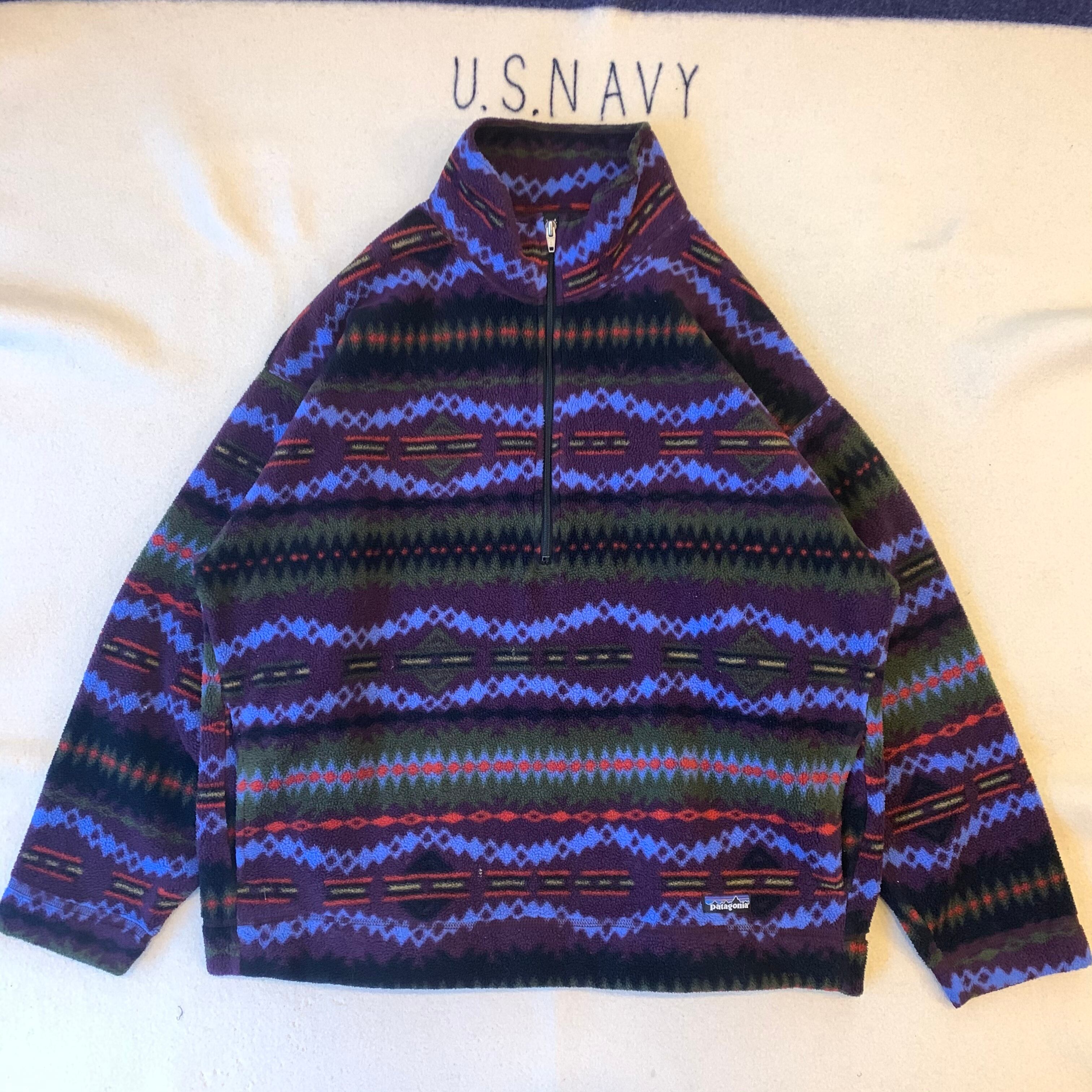 90s- patagonia ハーフジップ フリース 総柄 ヴィンテージ