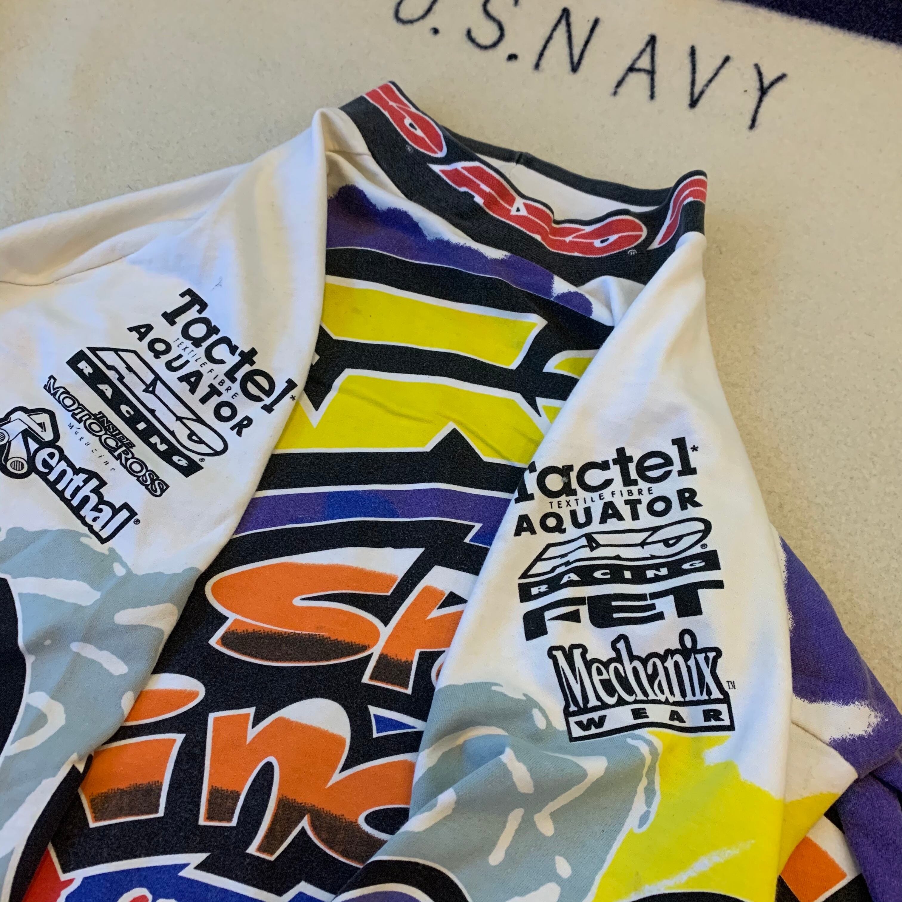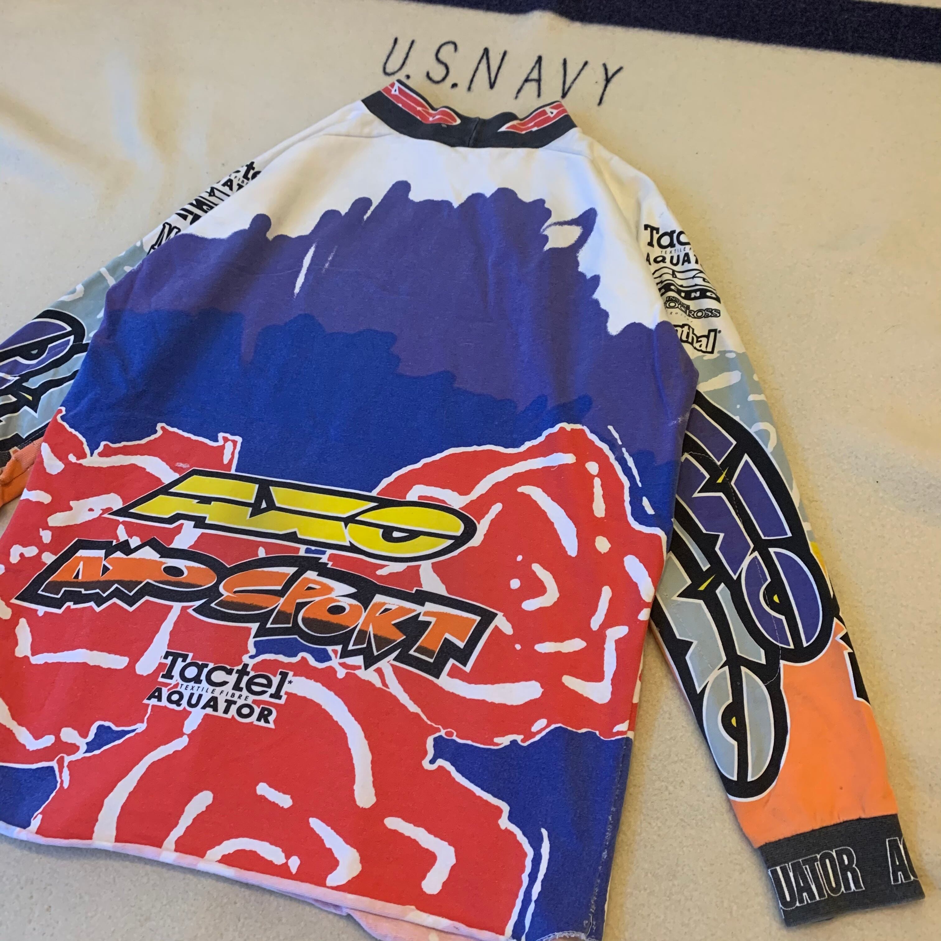 94s コピーライト入りのAXO SPORTS オフロードジャージ。90sらしいデザイン、カラーリング。オフロードで使用されていたものですがストリート感ある一着です。