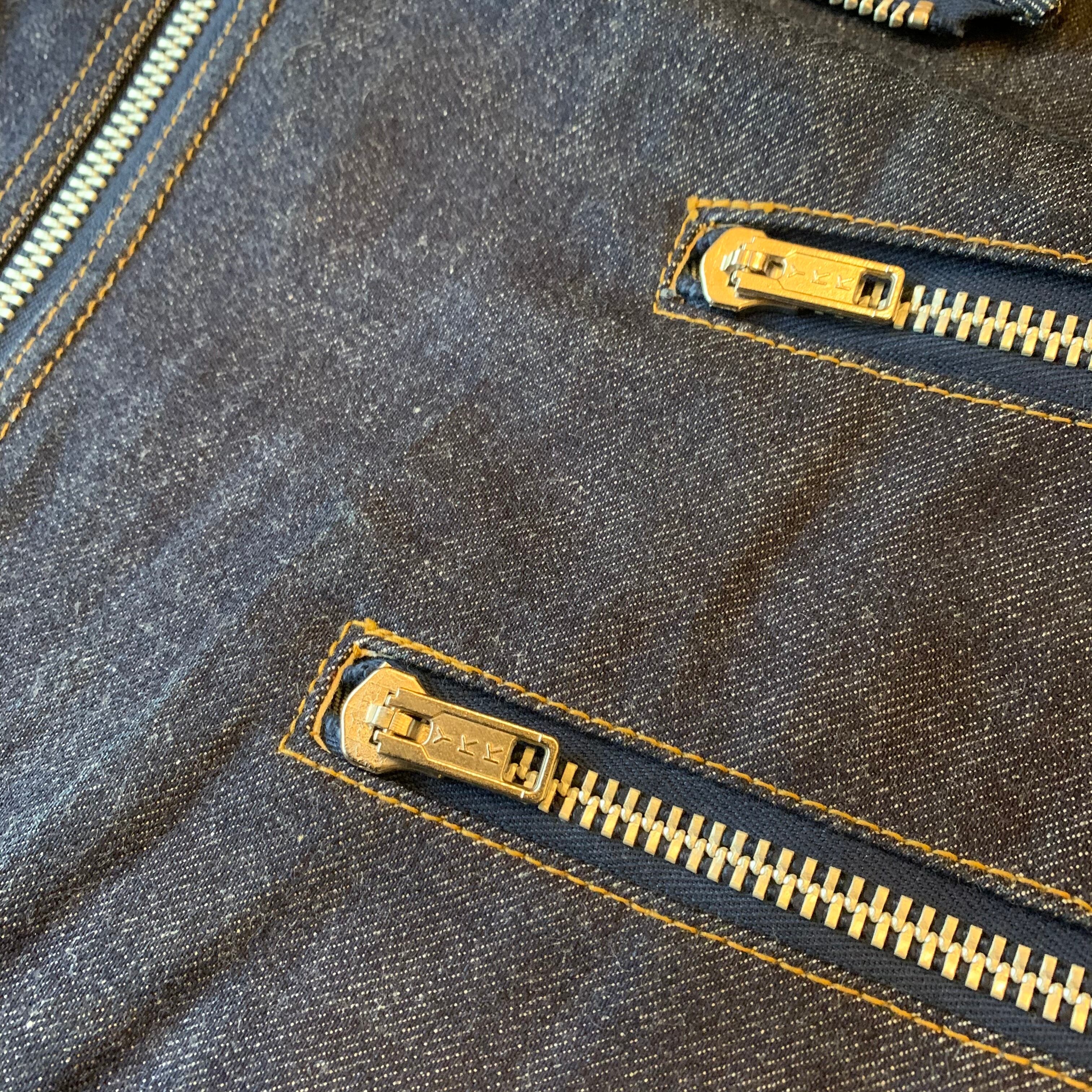 国産ヴィンテージ、70s頃のBIGBELLというブランドのデニムライダース。デニムにまだ糊が付いていてパリッとしてます。着用感も見られないのでデッドストックと思います。