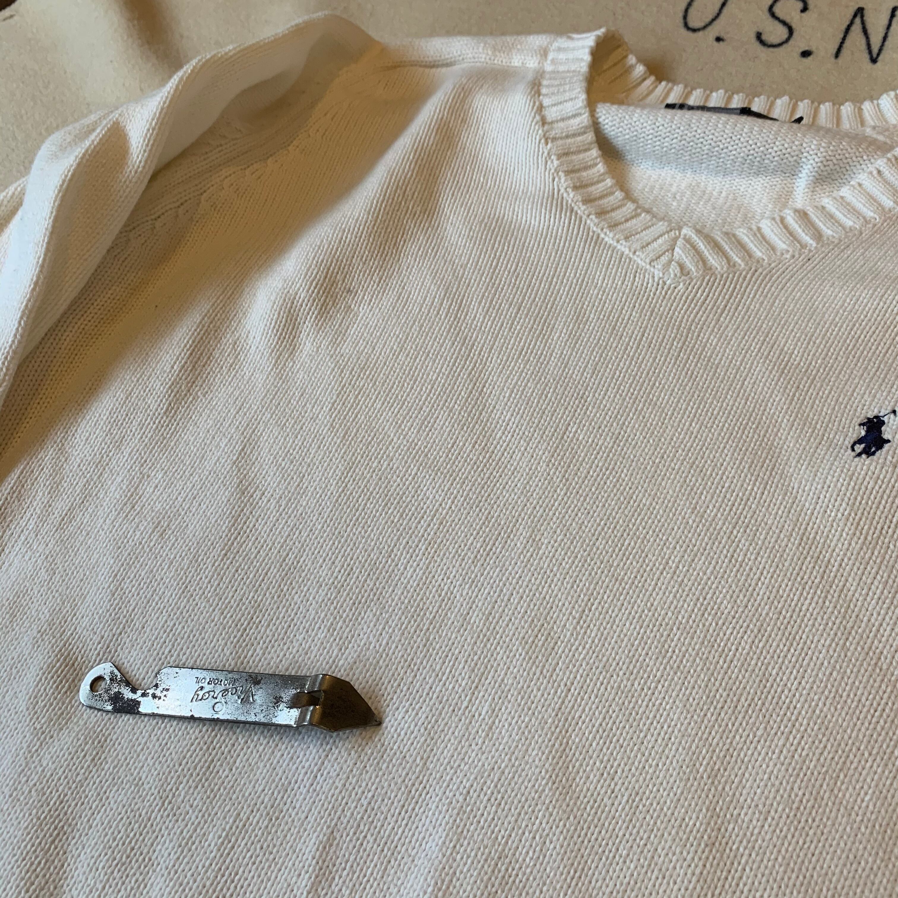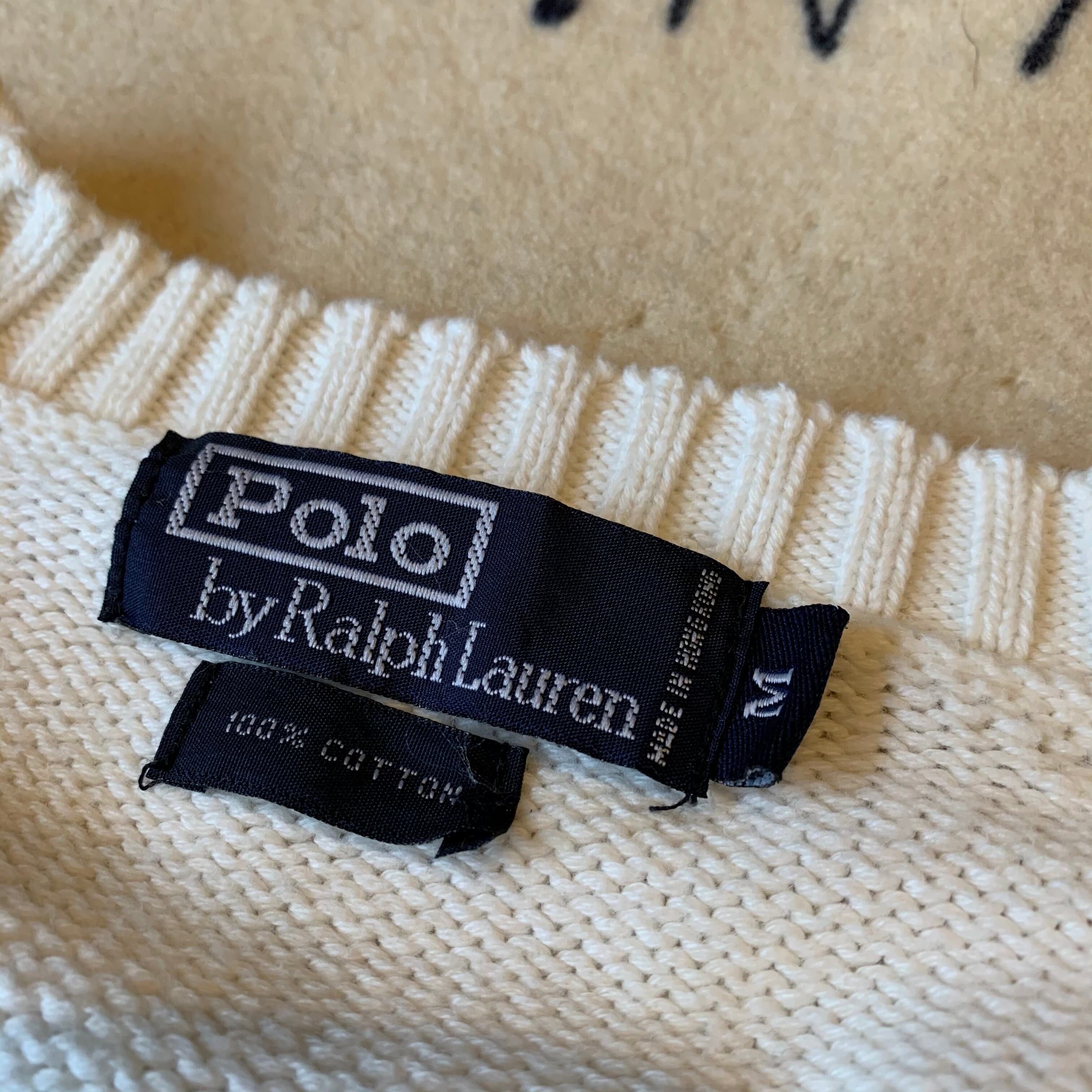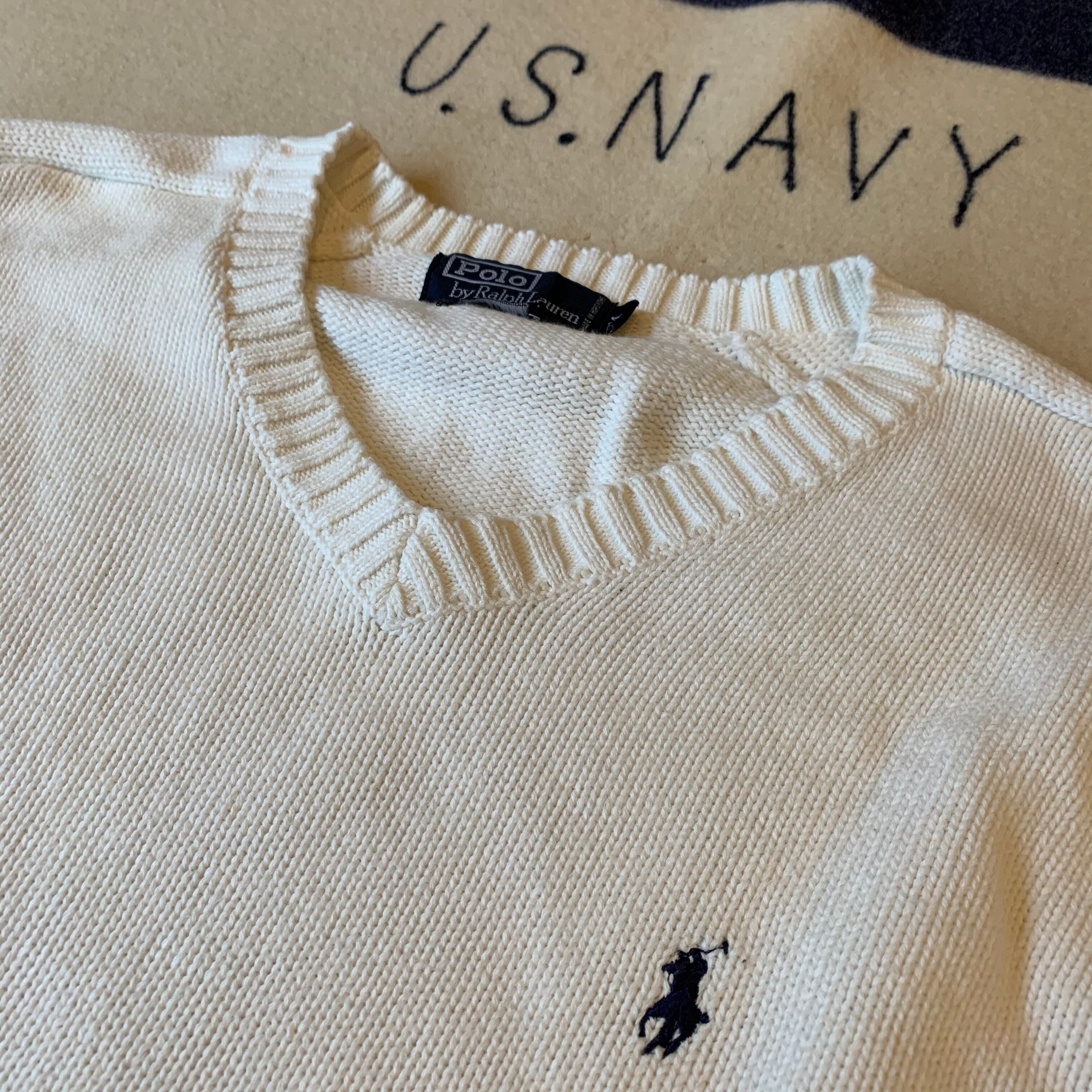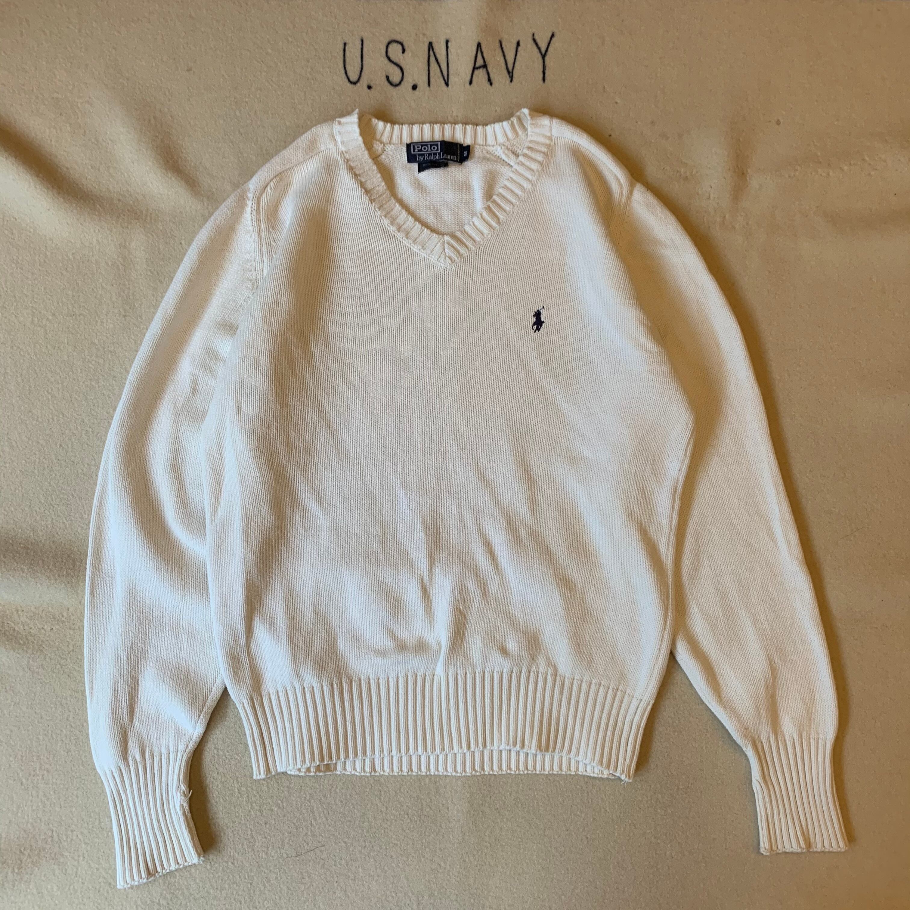 00s頃のラルフローレン。定番Vネックのコットンセーターです。カラーはホワイト。
