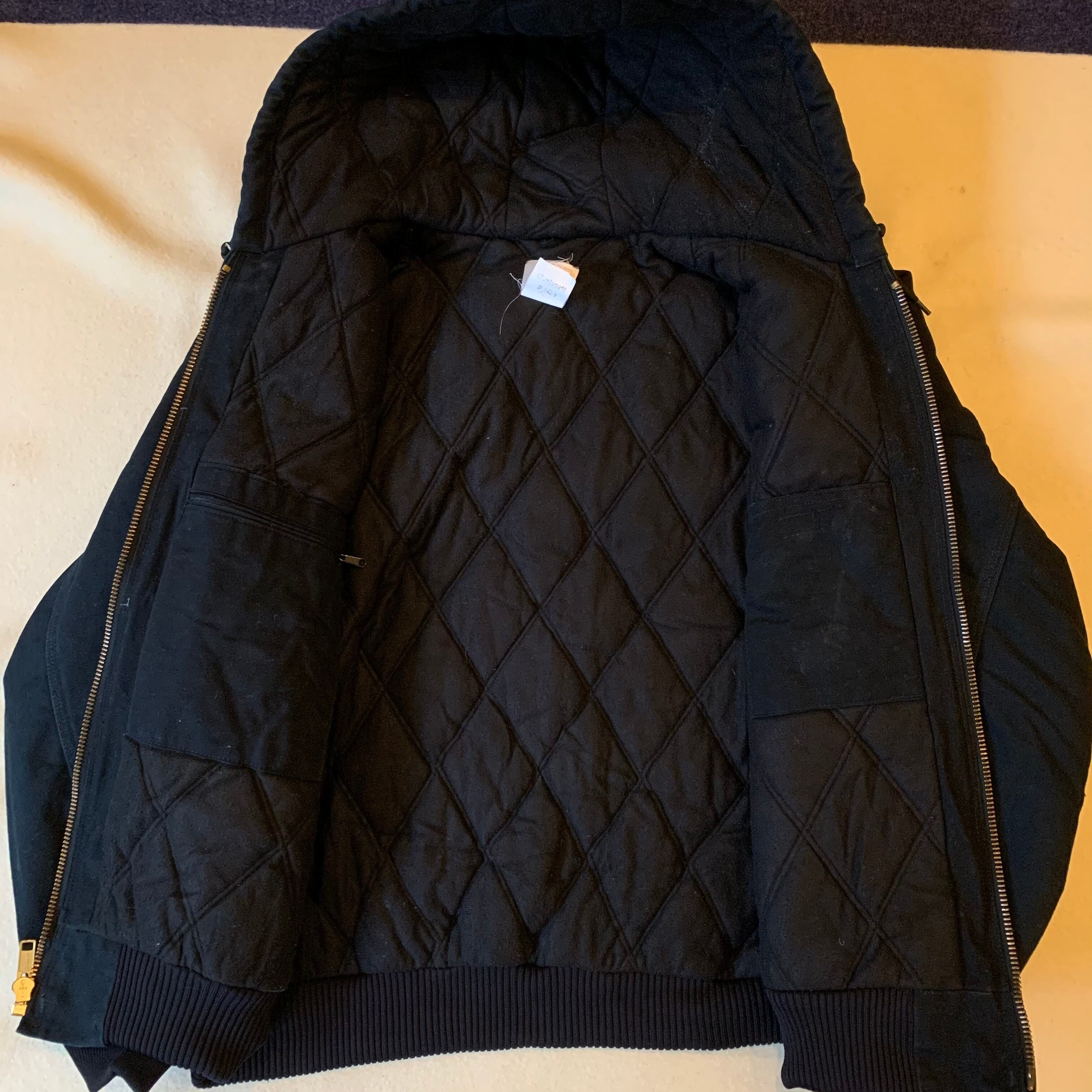 90s頃のcarhartt。タグの印字が消えて読めないですが恐らくUSA製かMexico製。黒のダック地にビッグサイズ。今っぽいんではないでしょうか。
