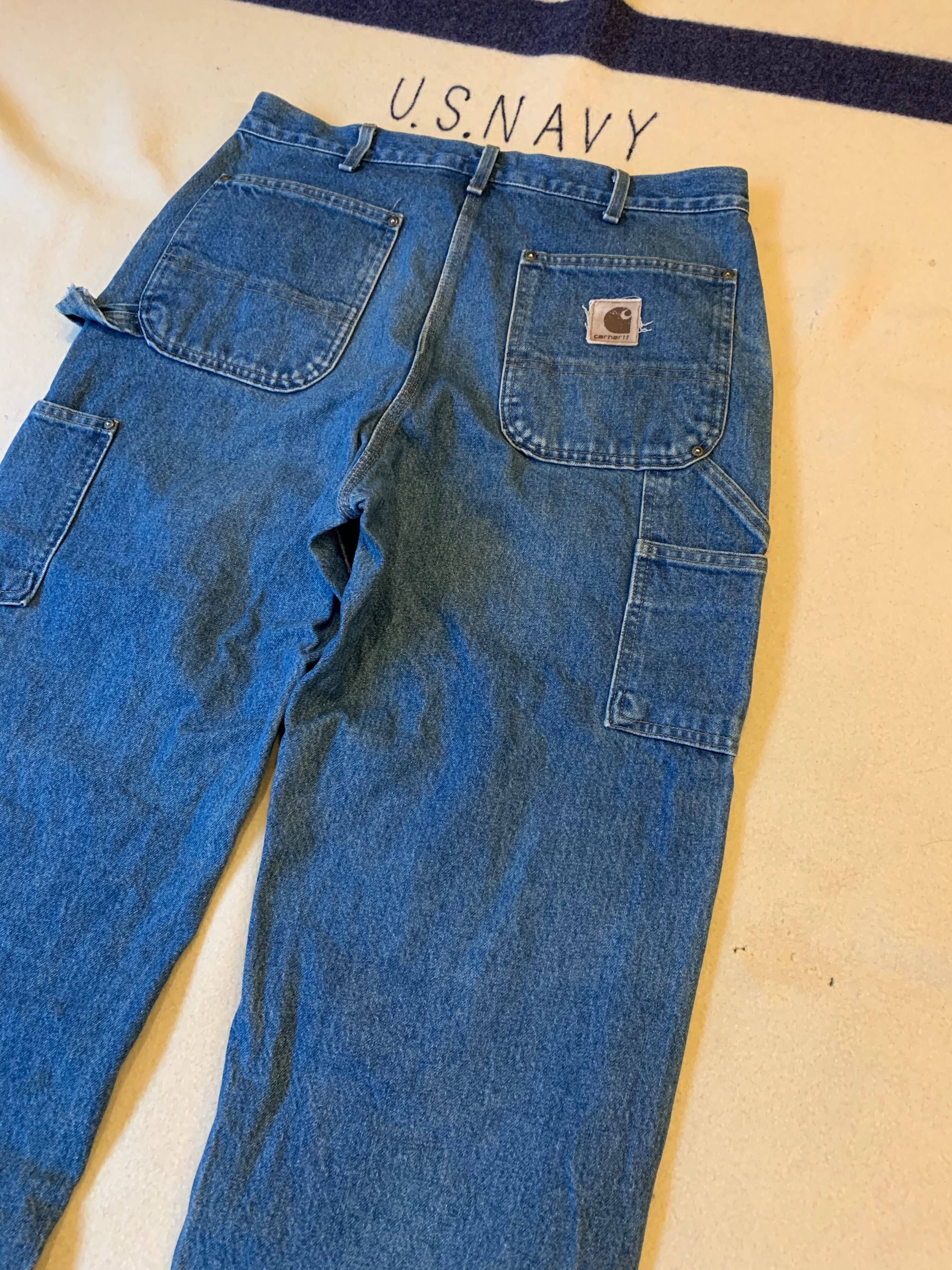 90s 頃のcarhartt。印字消えていますが恐らくアメリカ製かメキシコ製です。デニムタイプのダブルニー。ヴィンテージ特有の使用感は若干ありますがヴィンテージ慣れされていれば問題無く着用可能と思います。