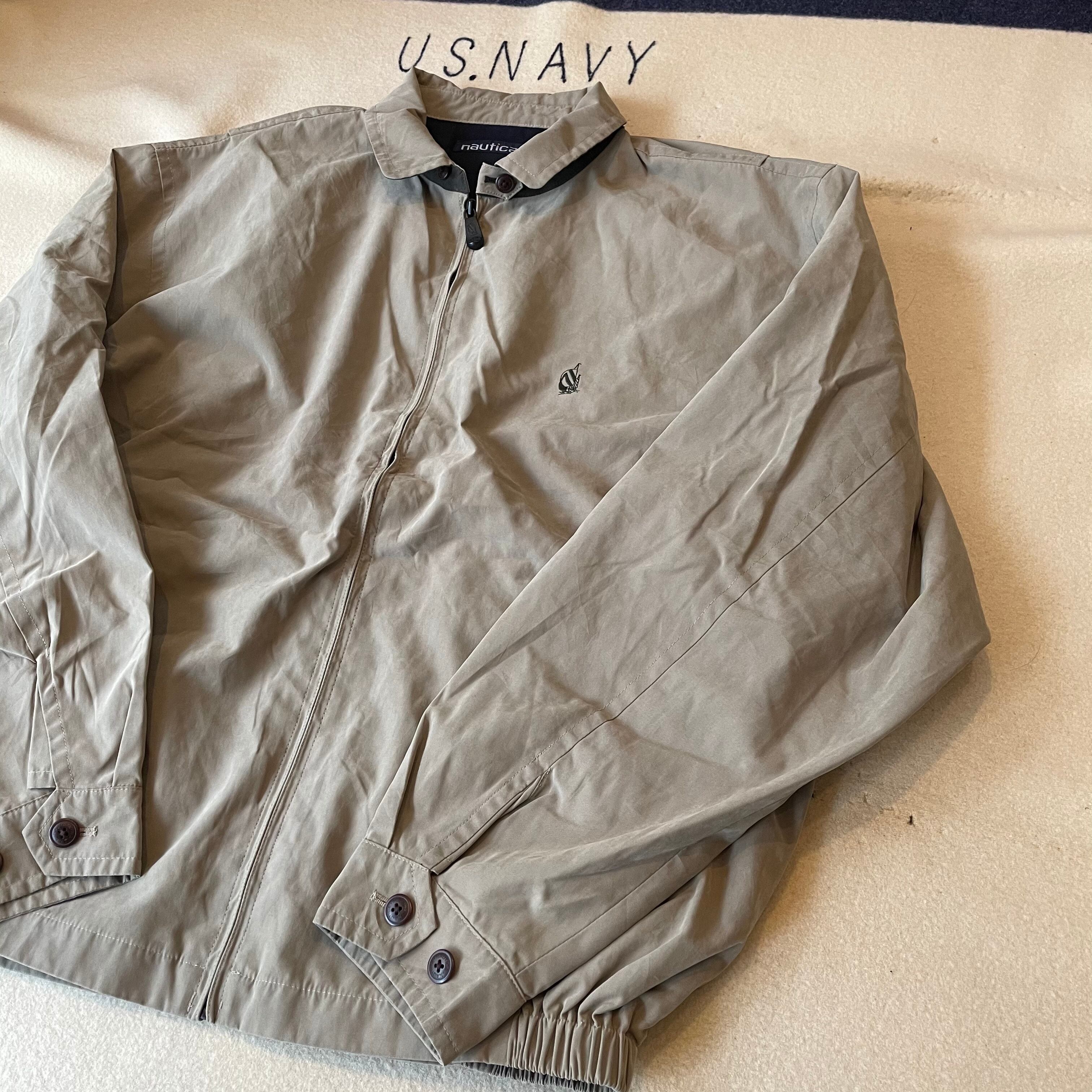 90s頃のNAUTICA。ナイロン×ポリのシェルでコットンの様なパリッとした感じではなく若干ベロア地の様な肌触りでコットンのものより柔らかいです。
