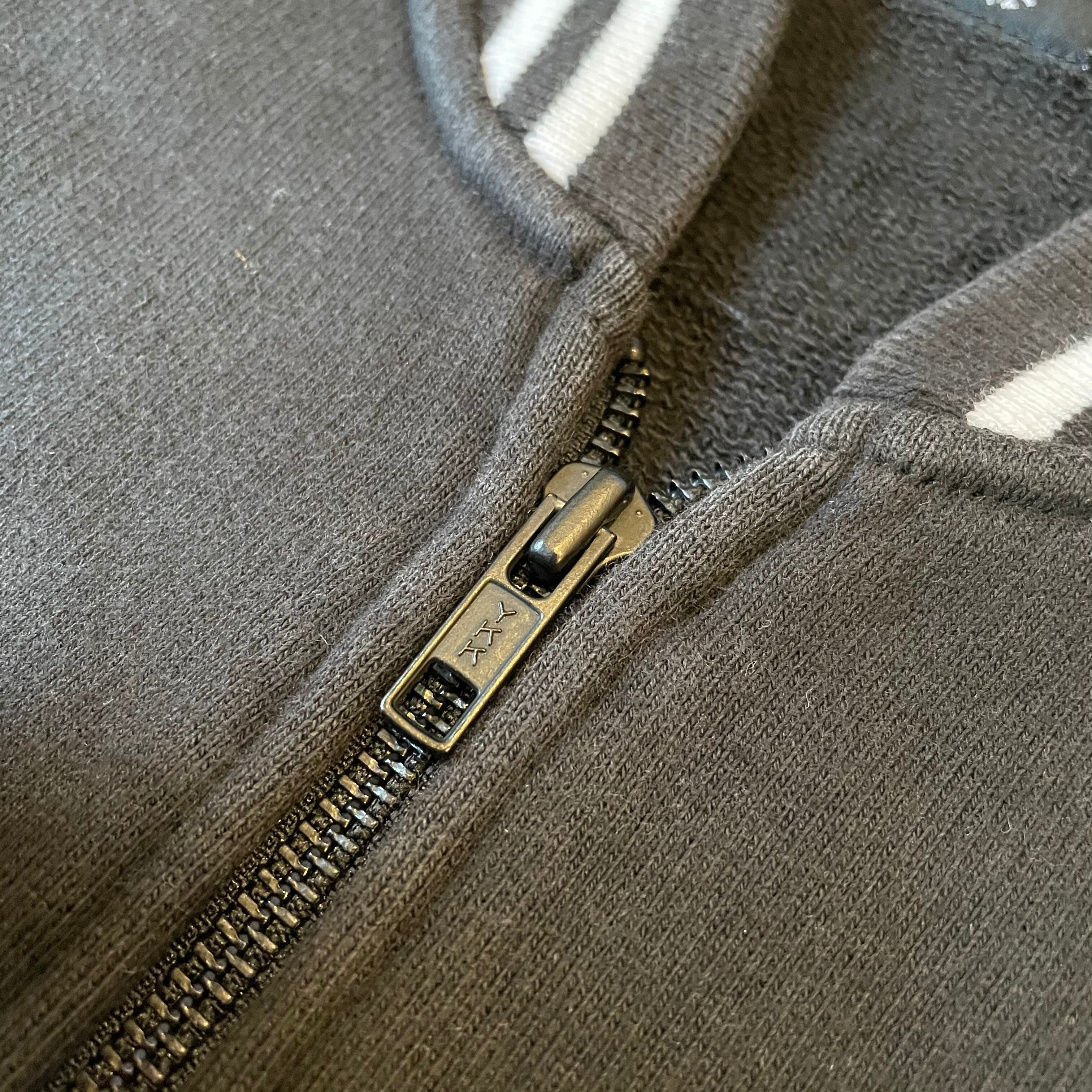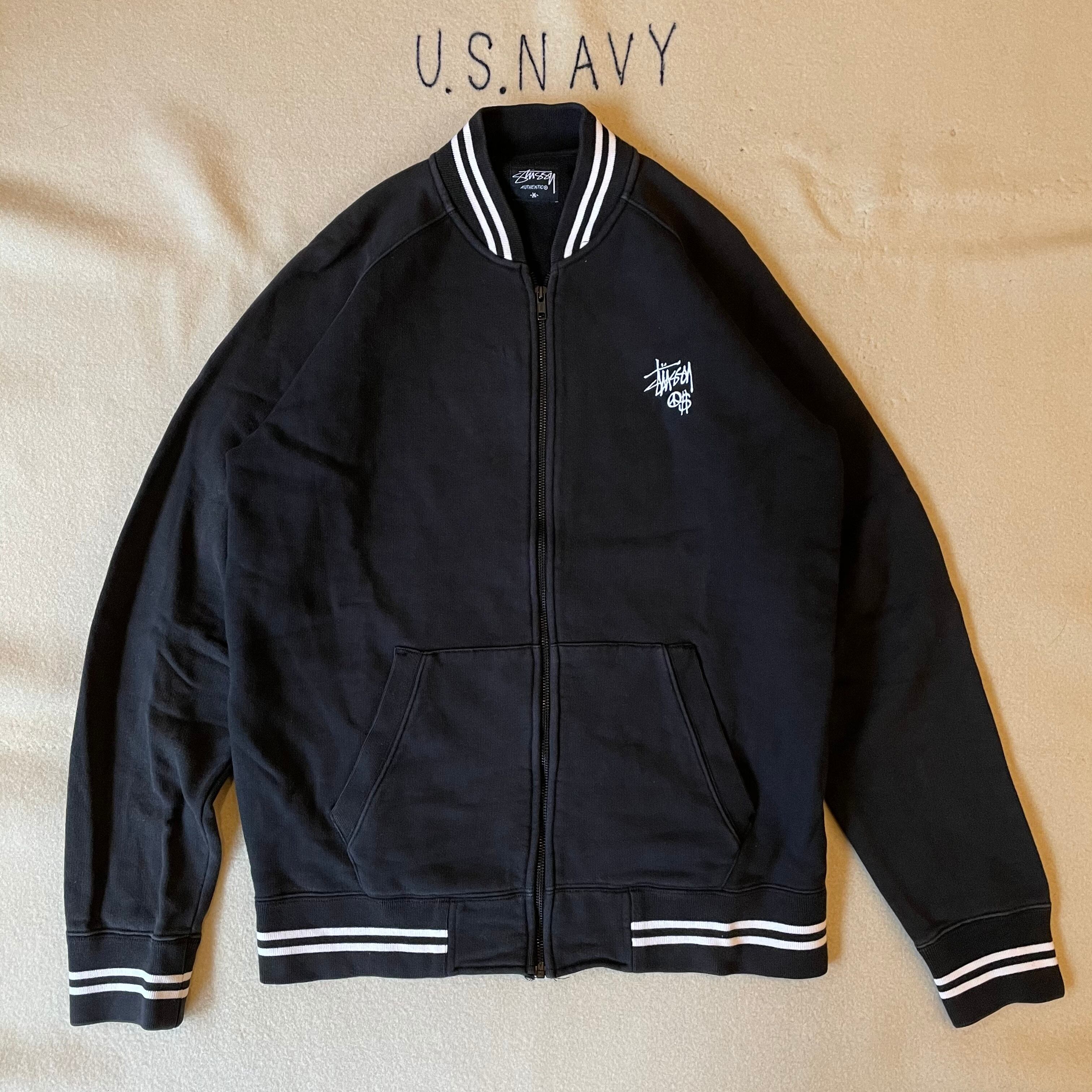 00s以降のstussy フルジップスウェット。ブラックボディにワンポイントのストックロゴ。袖口に入るホワイトのボーダーがstussyらしい一着。
