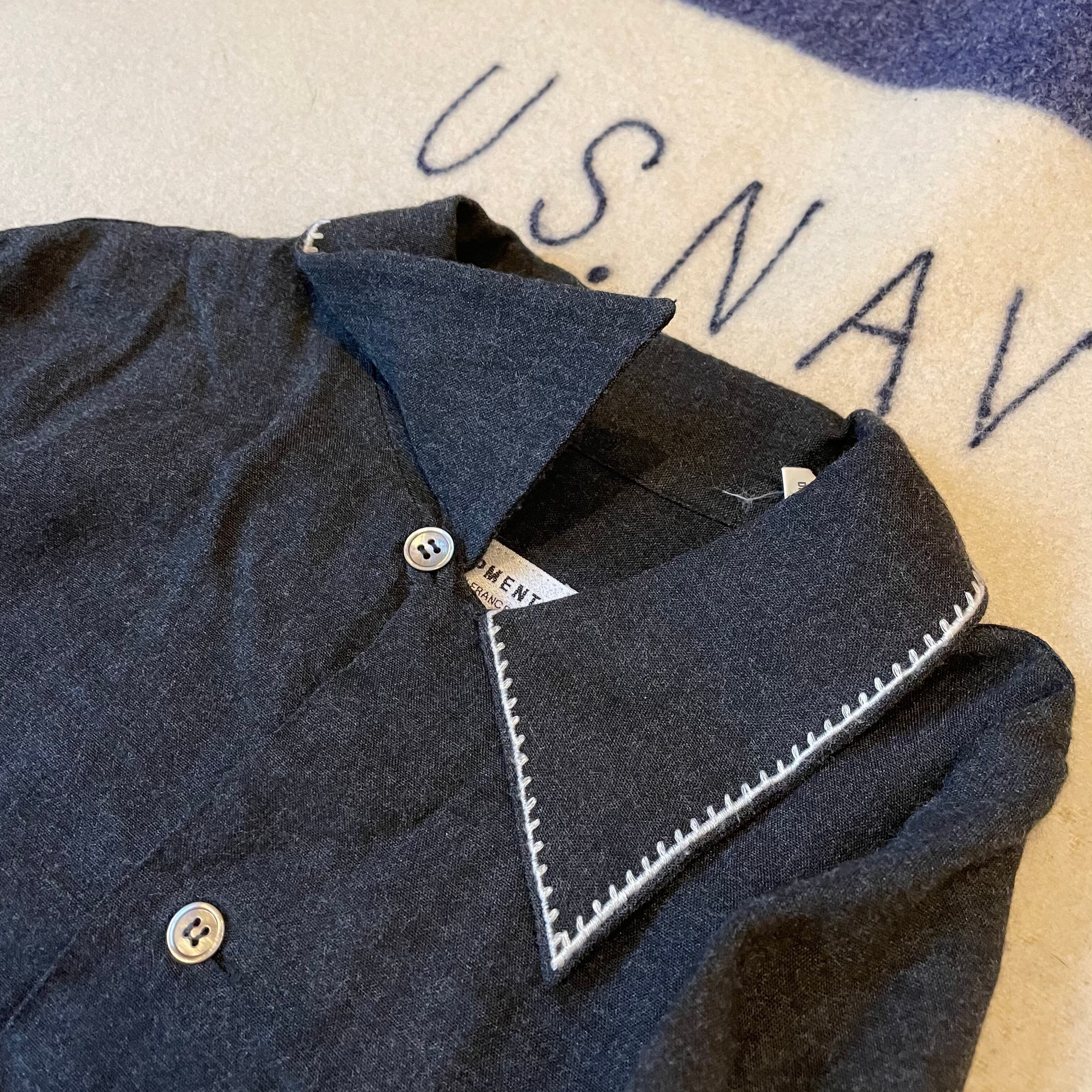 90sのエキプモン。フランス製のレーヨンシャツです。デザインソースは50s-60sあたりのレーヨン、ギャバシャツでボックスシルエットにループ付きのヴィンテージ好きにも堪らない一着かと思います。