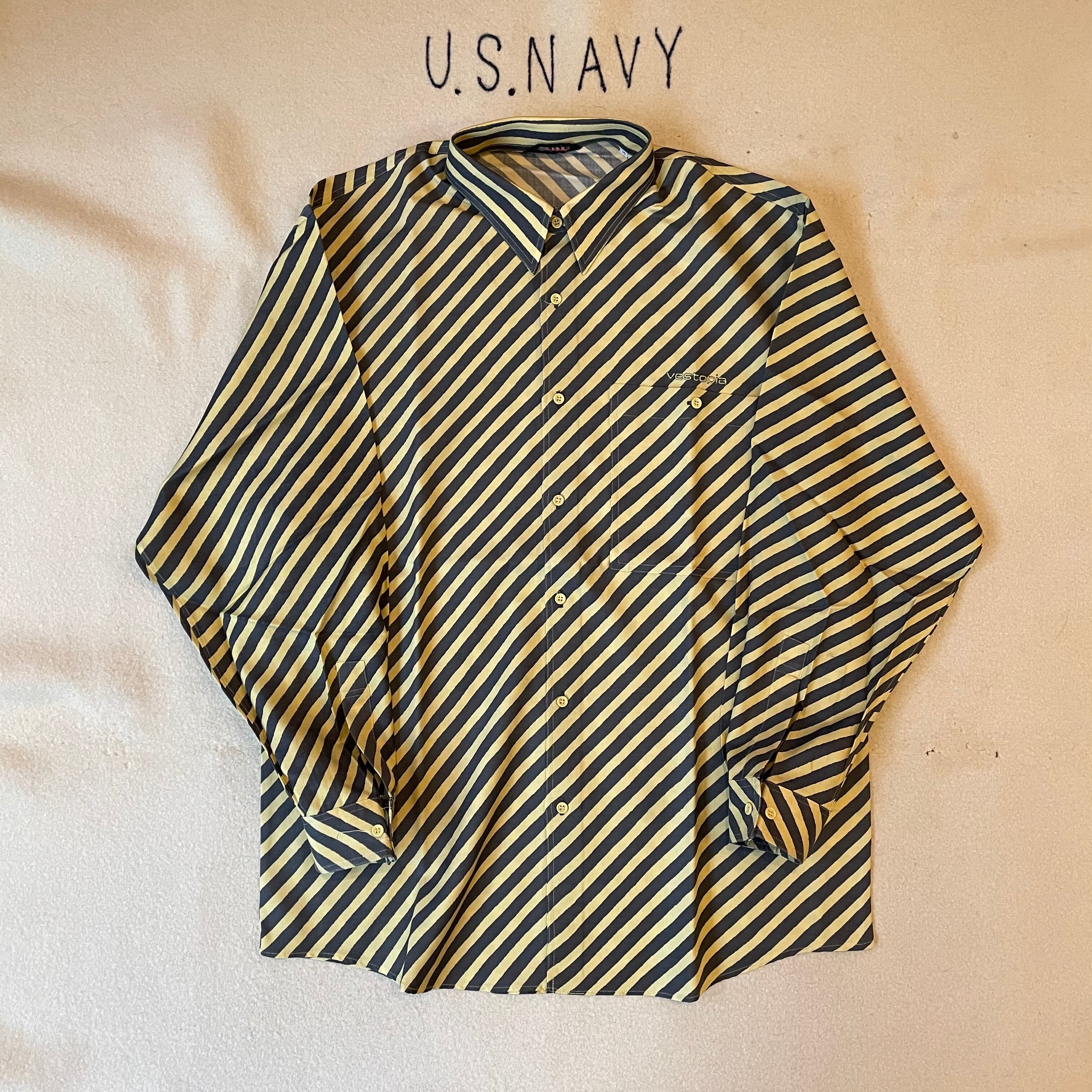 珍しい斜めタイガーストライプのポリシャツ。80s-90s頃の国産ヴィンテージです。汚れ破れ無く状態良好です。