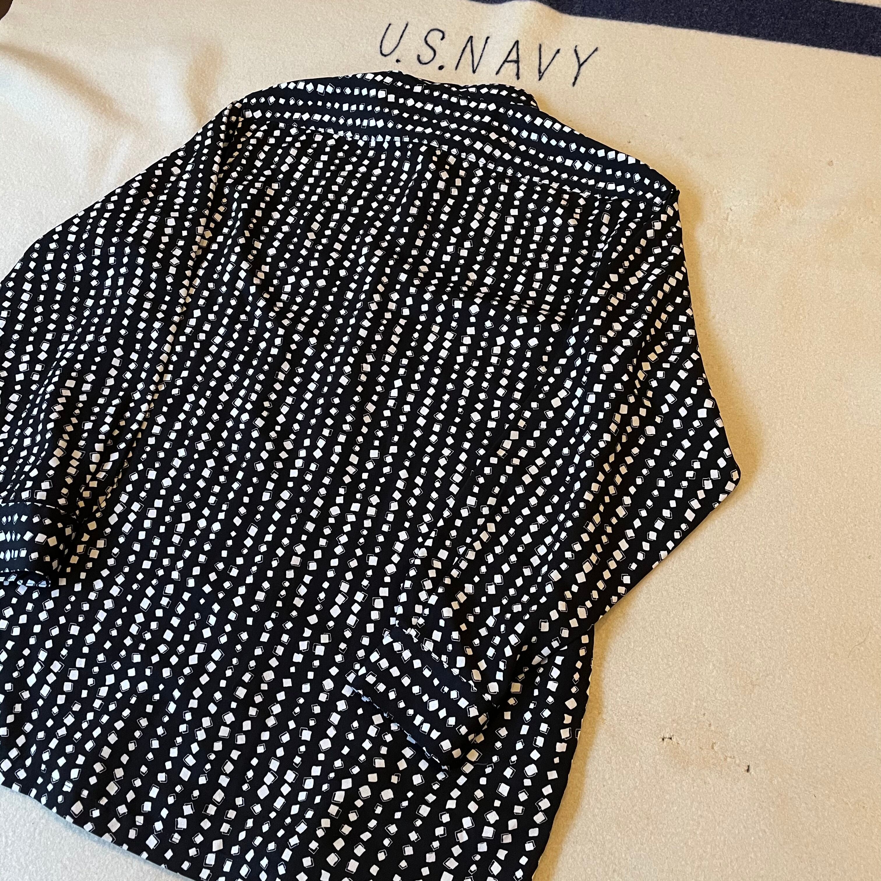 国産ヴィンテージとしては有名かつクオリティの高いアイテムの多いap club。ボックスシャツでブラック×ホワイトの総柄は今っぽいんではないでしょうか。