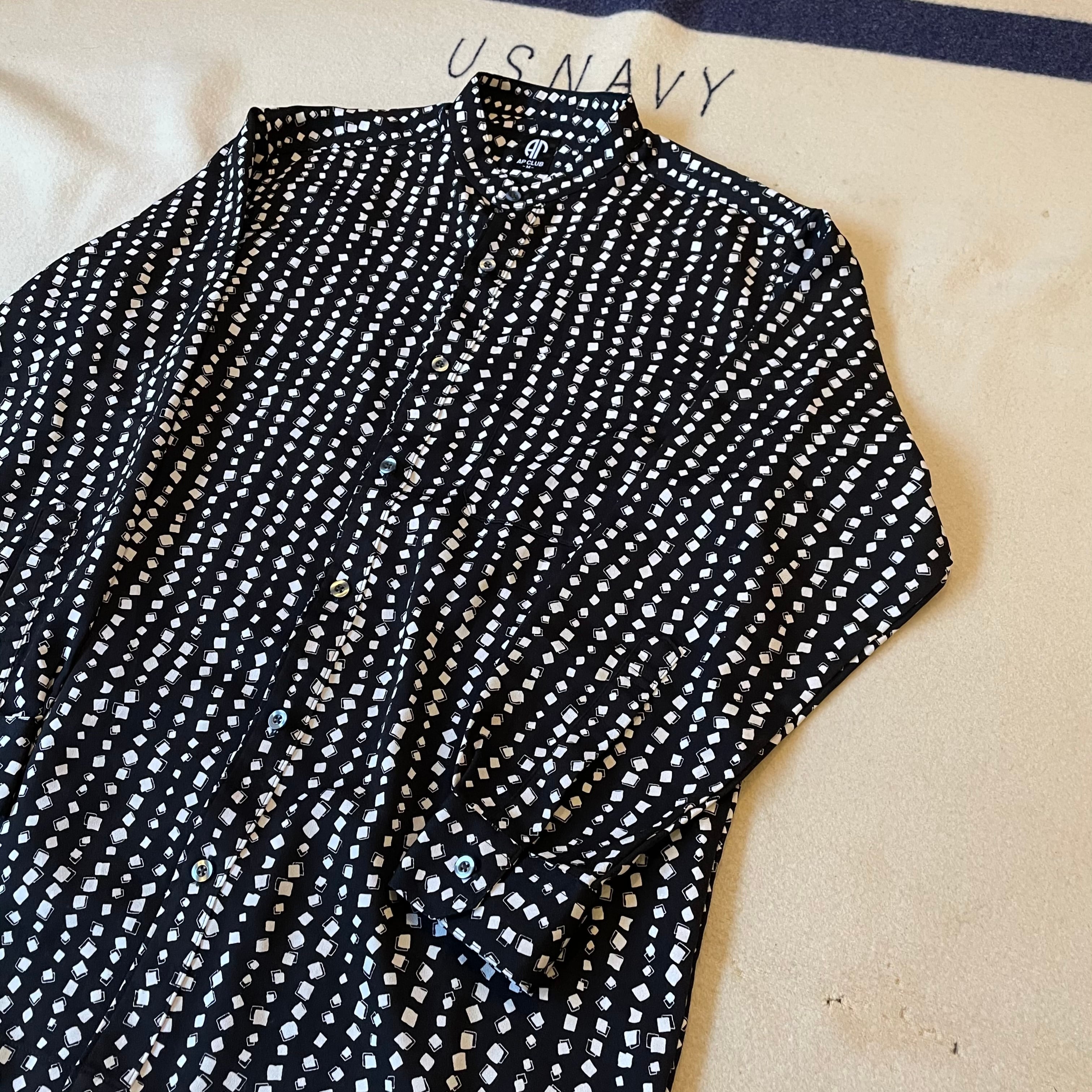 90s ap club 総柄 ノーカラーシャツ ヴィンテージ