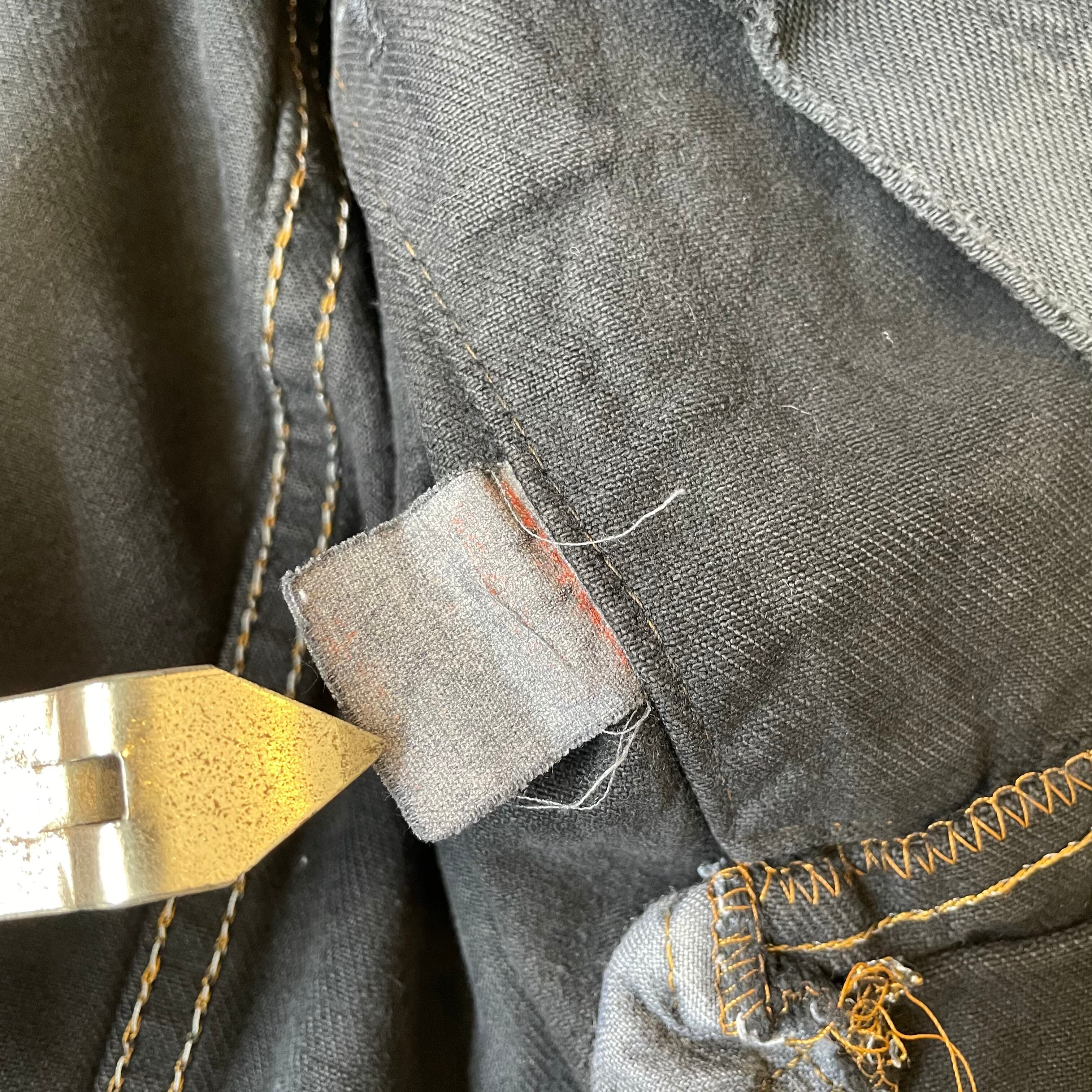 80s頃の70506。70505の後継でポケット付きです。こちらはブラックの後染めで襟元にリメイクあり。センスあります、、