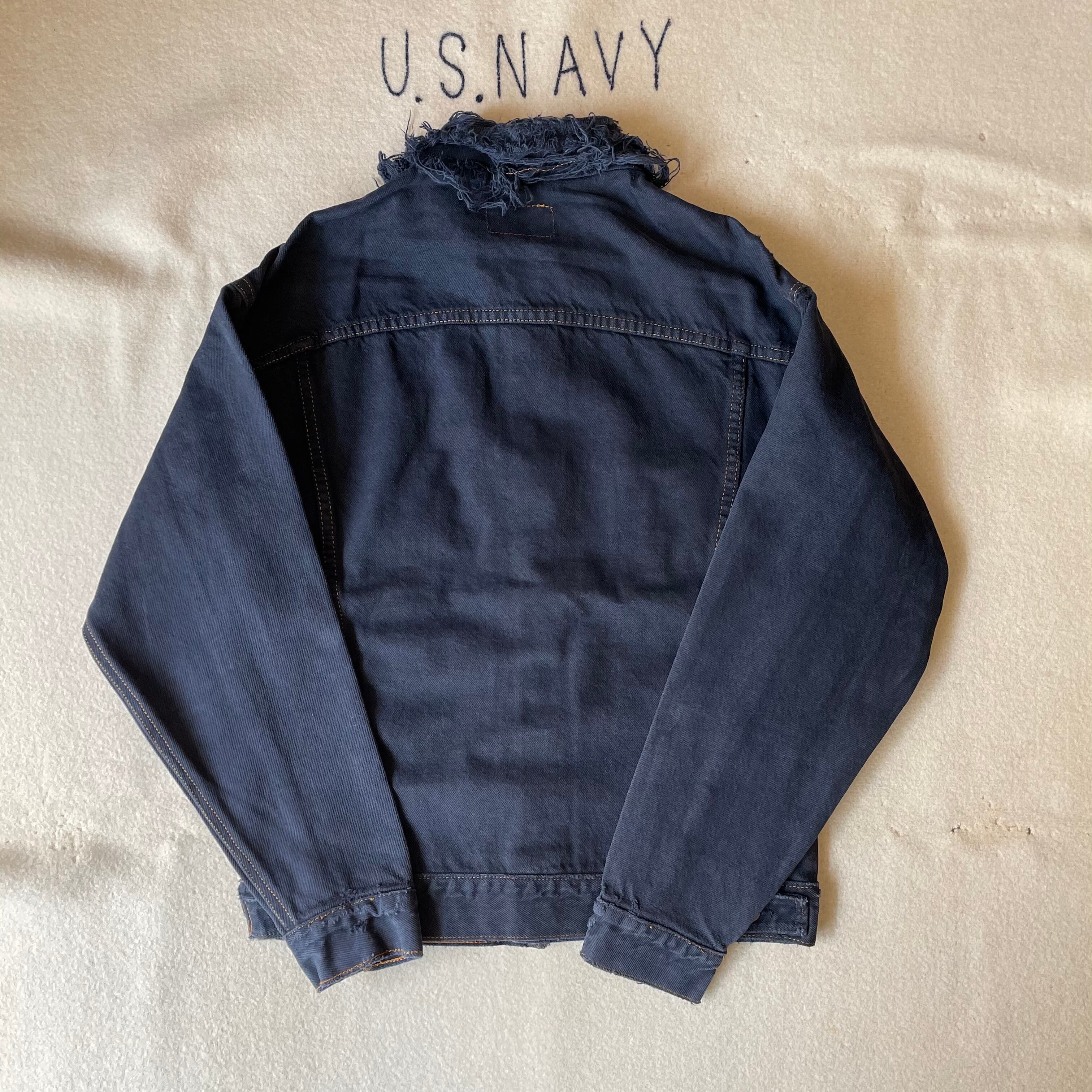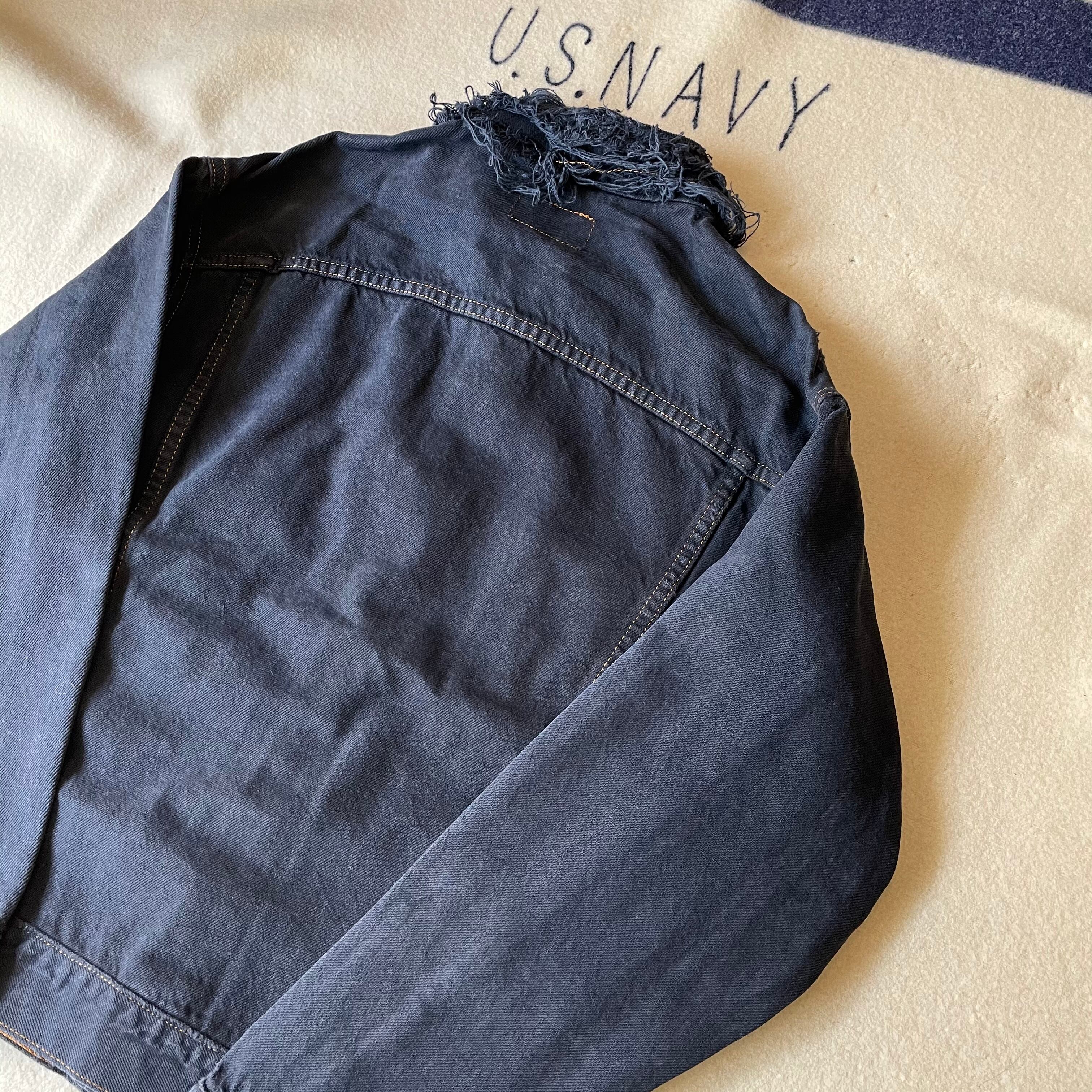 後染めされている事によって生地が柔らかくなっており普通のデニムジャケットよりも表情がでると思います。