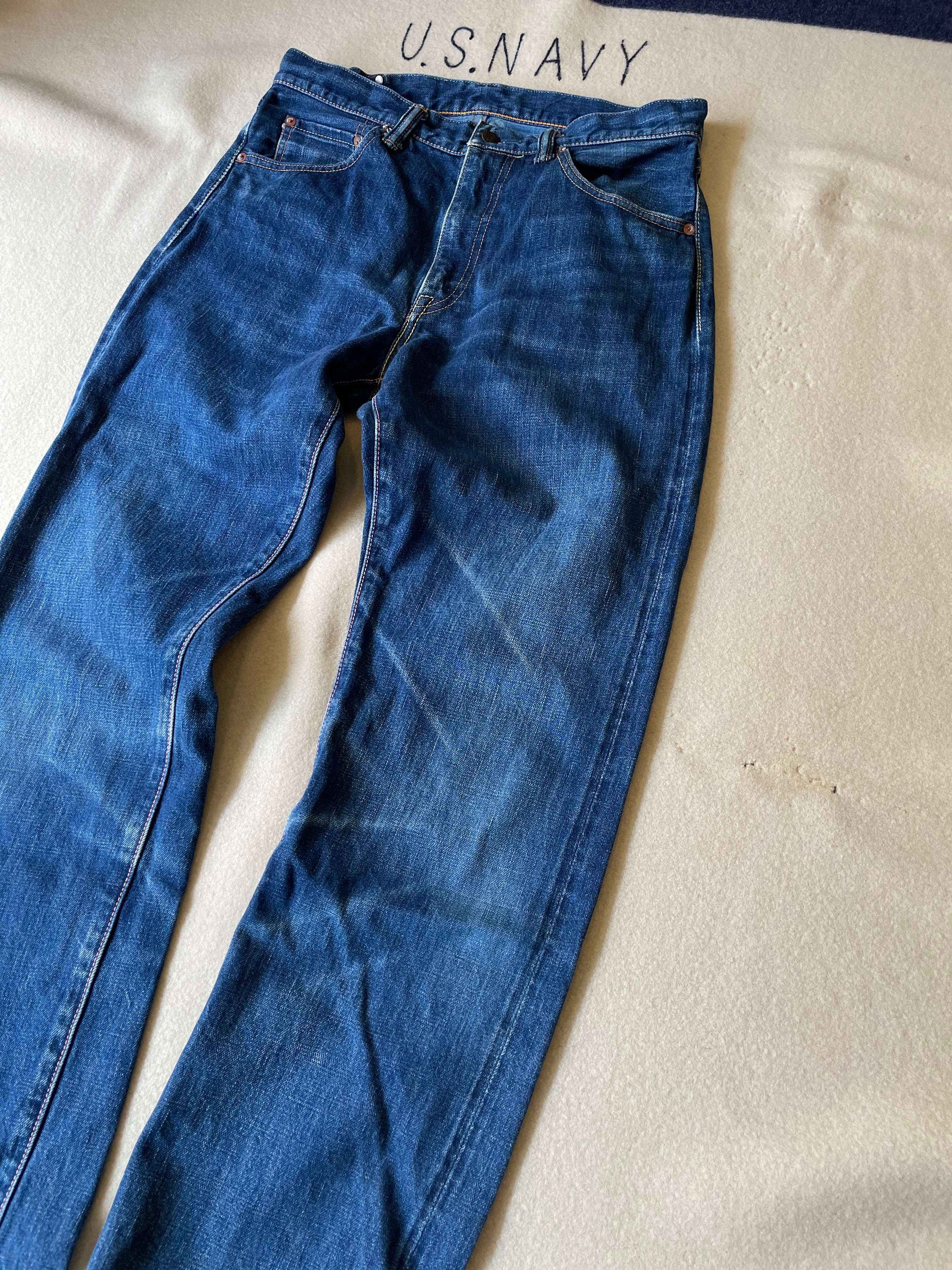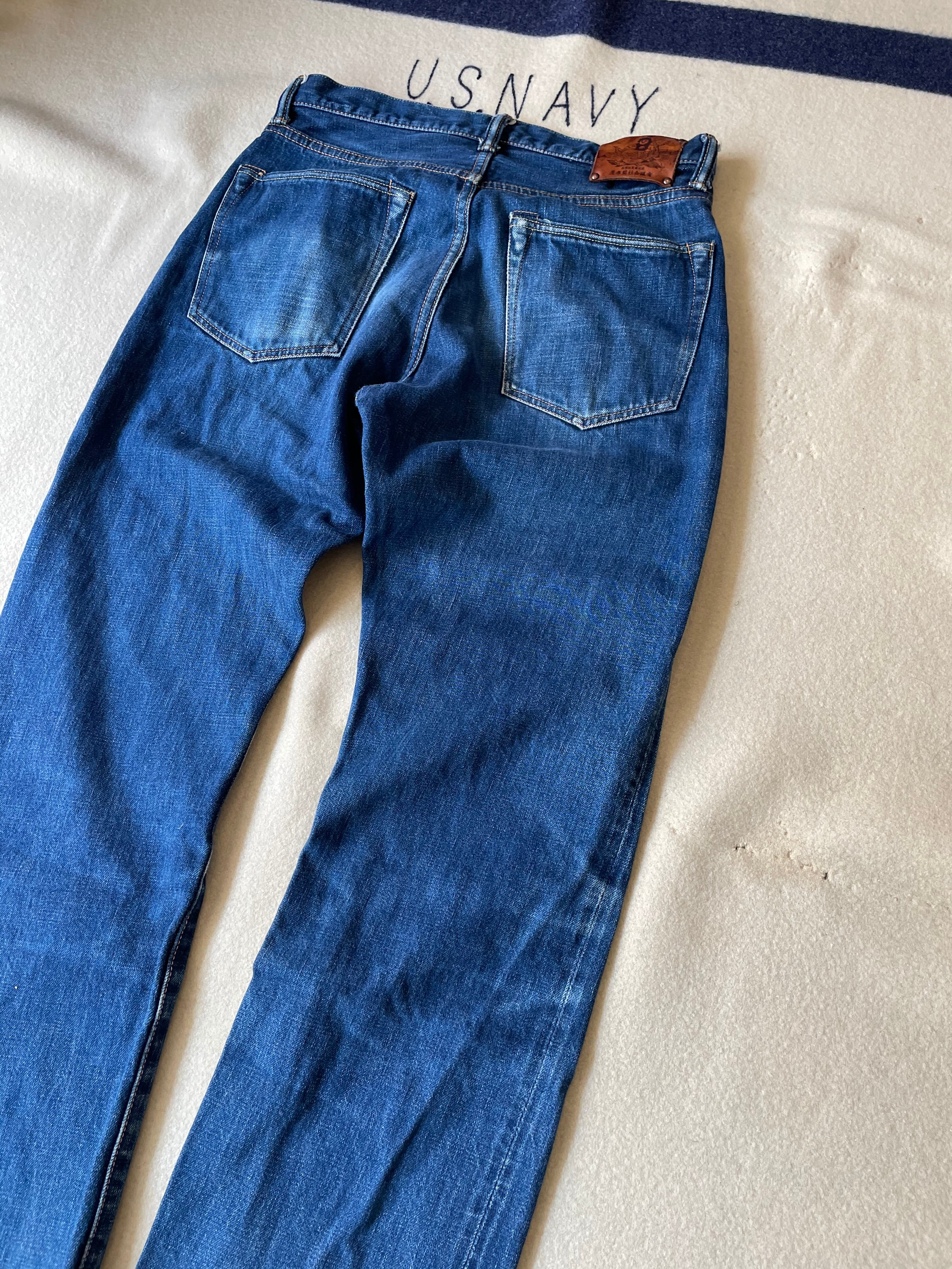 モモタロウジーンズで有名なJAPAN BLUE JEANS。リーバイスのBIG Eあたりの色落ち感。クオリティ高いです。