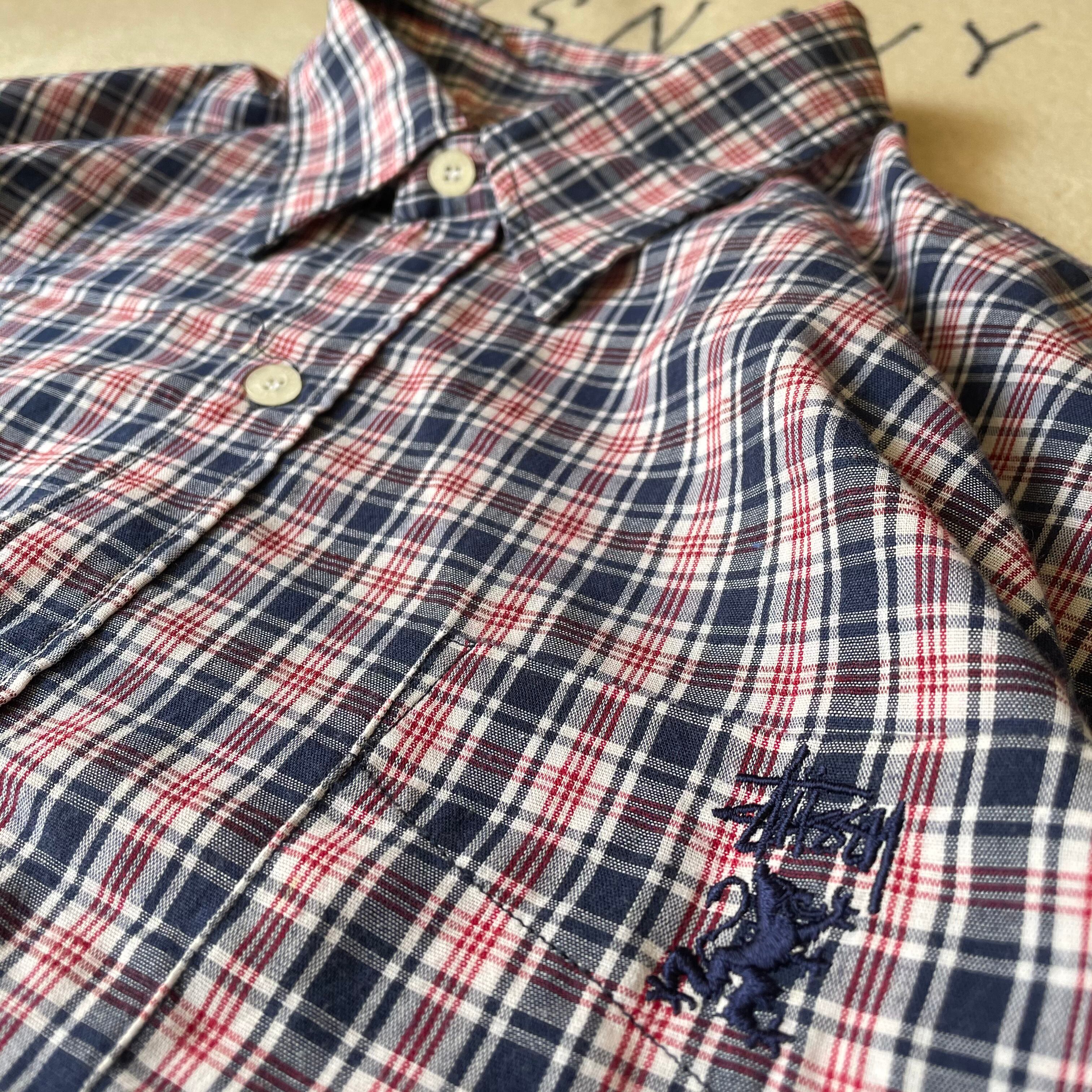 90s-00s頃のstussy。ショートスリーブのチェックシャツ。インド製コットンを使用しており軽くて柔らかいです。