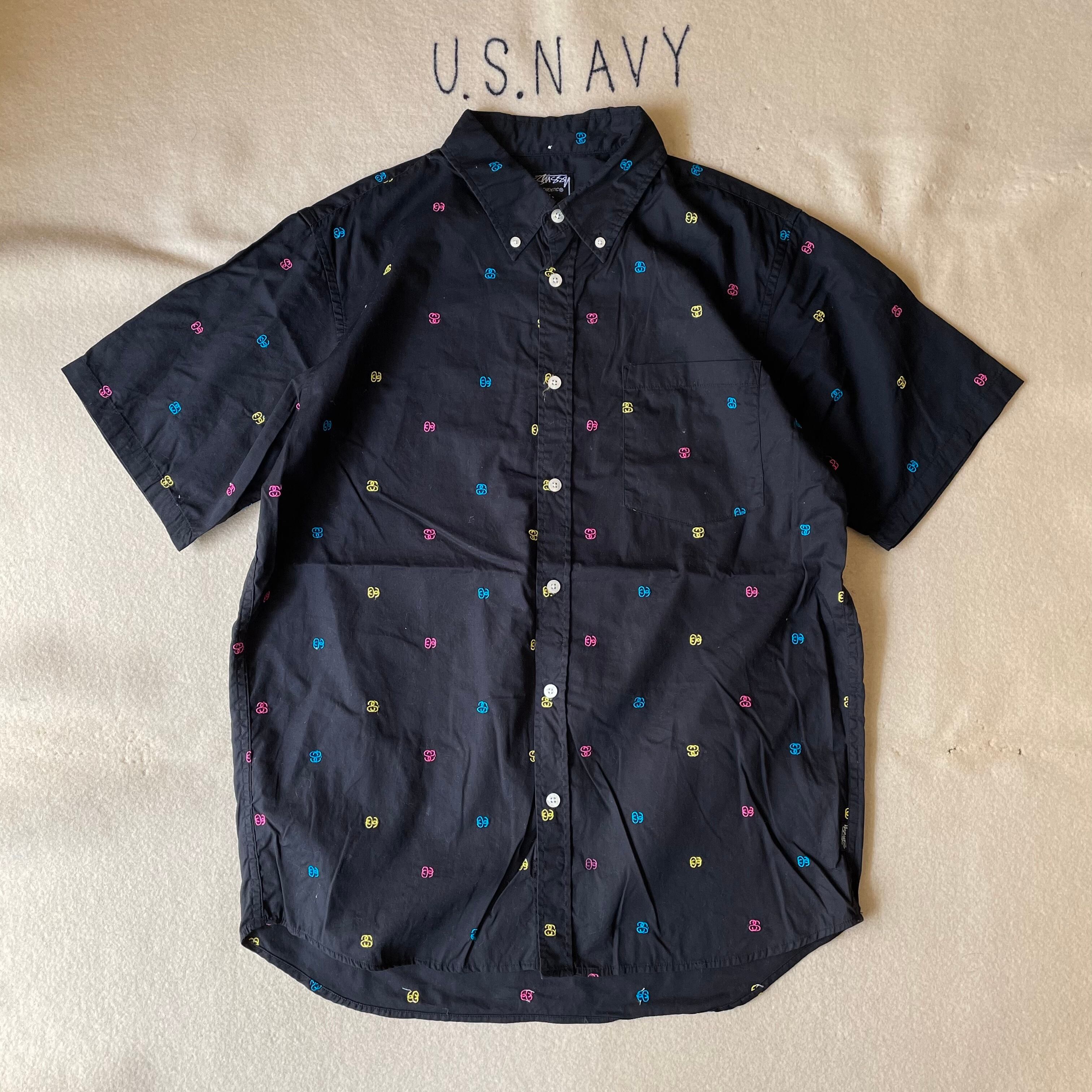 00s以降のstussy。stussyのシャネルロゴが総柄で入るショートスリーブシャツ。汚れ破れ無く状態良好です。