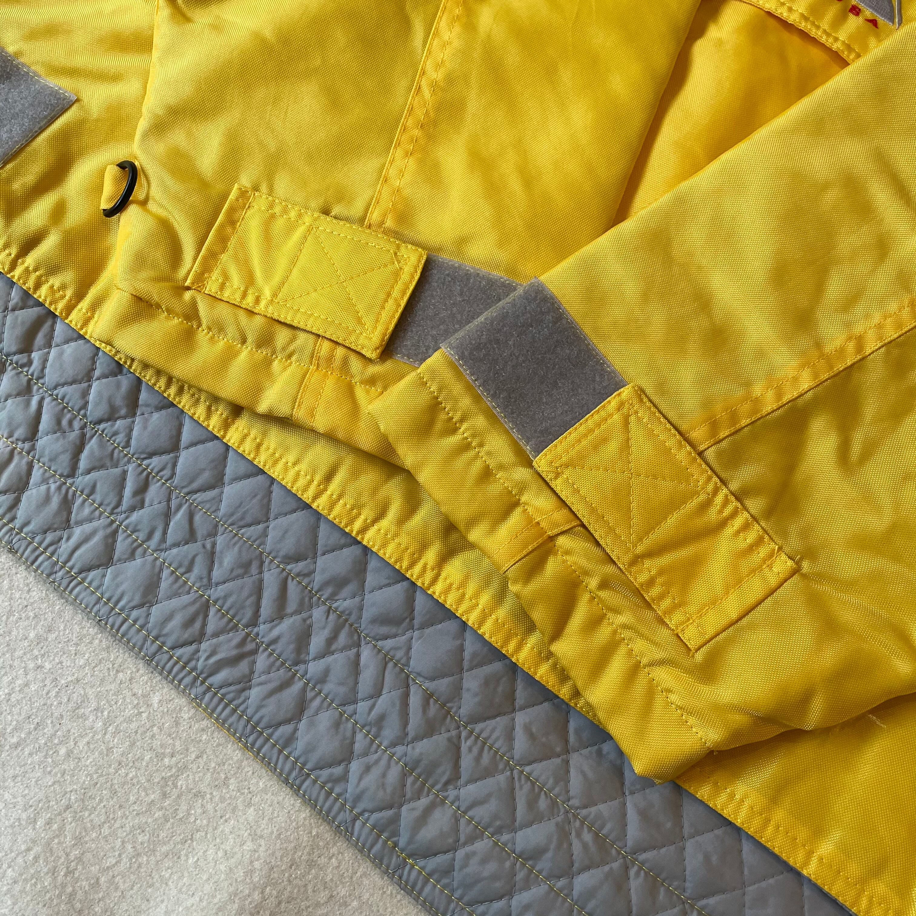 発色の良いイエローボディのナイロンアノラック。ワーク、アウトドア色の強い一着です。