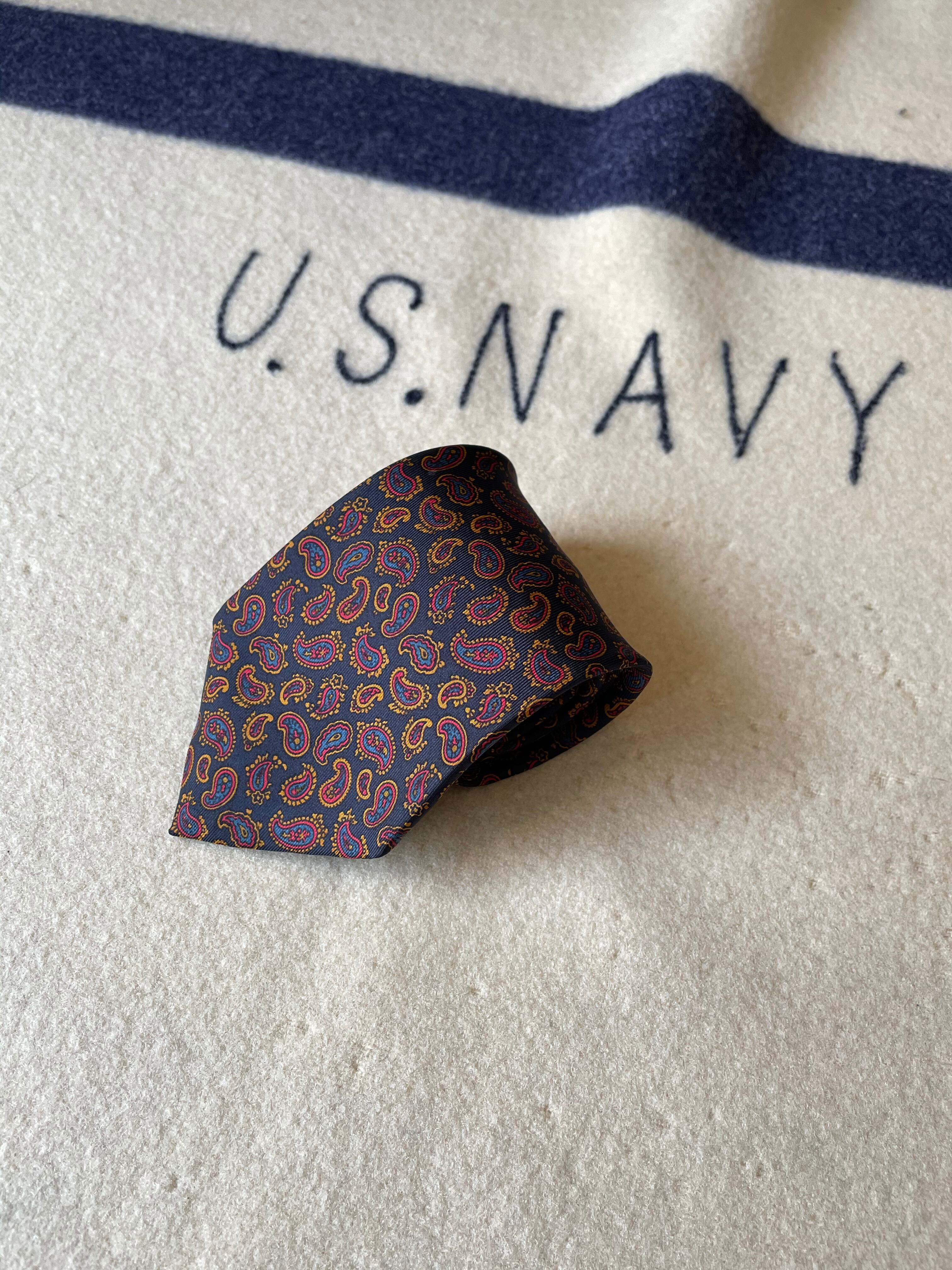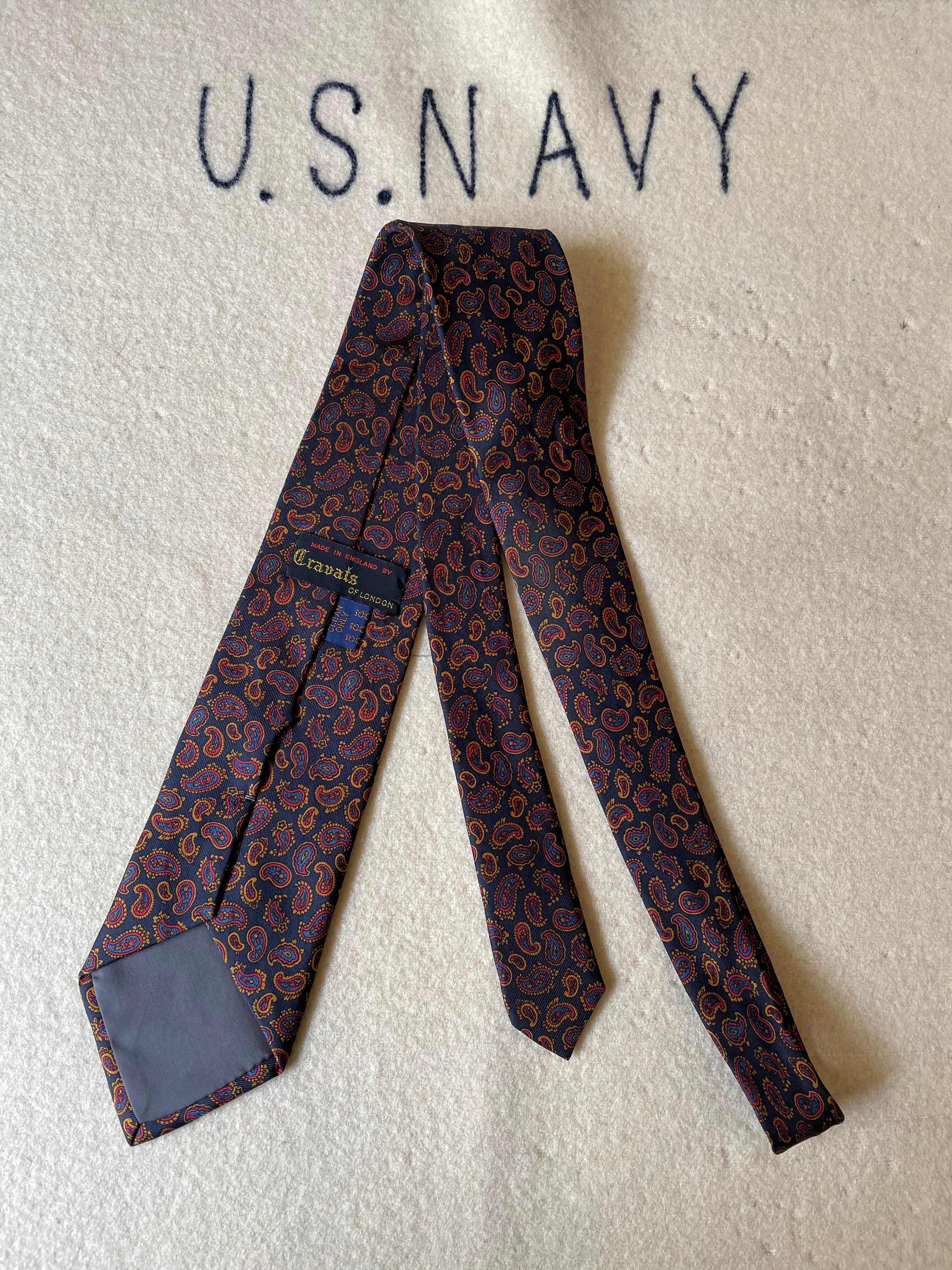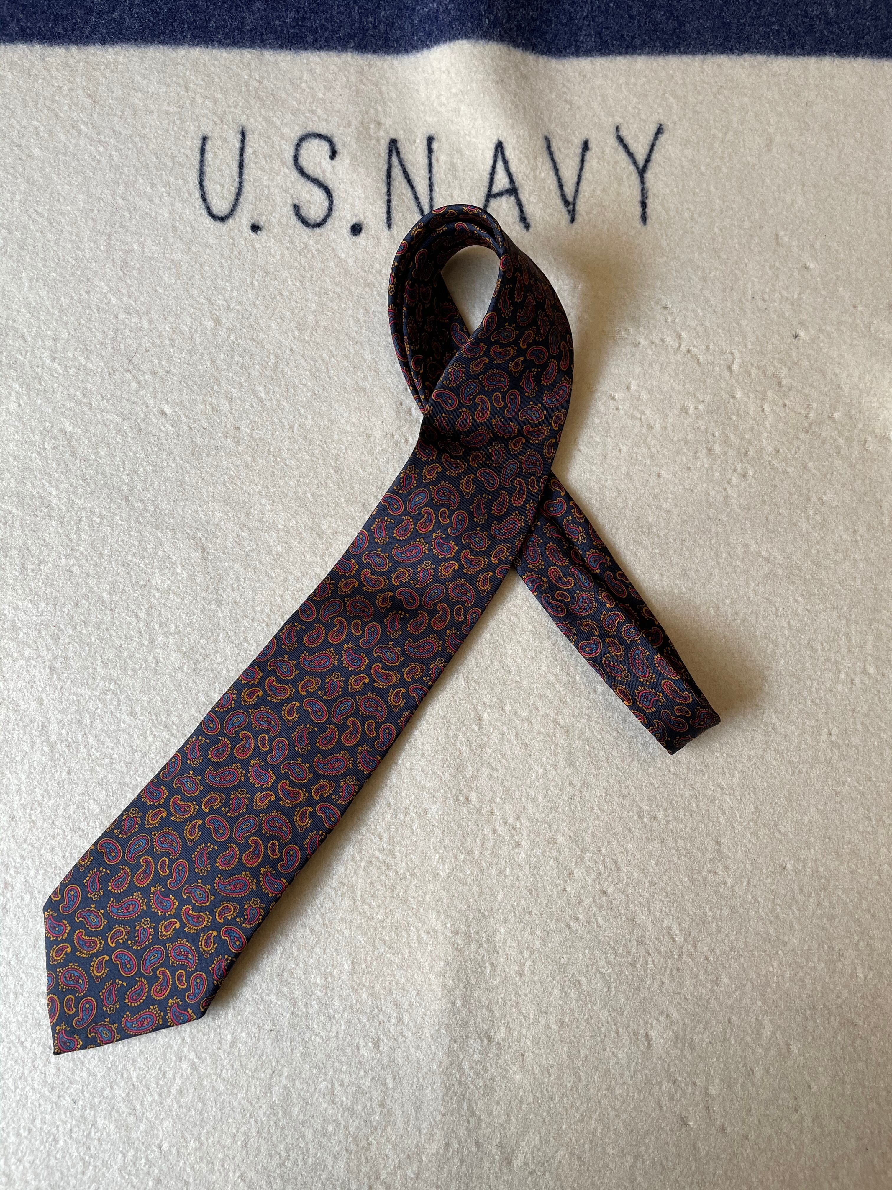 イングランド製のヴィンテージネクタイ。シルク100%、細身のペイズリーは今っぽいかと思います。