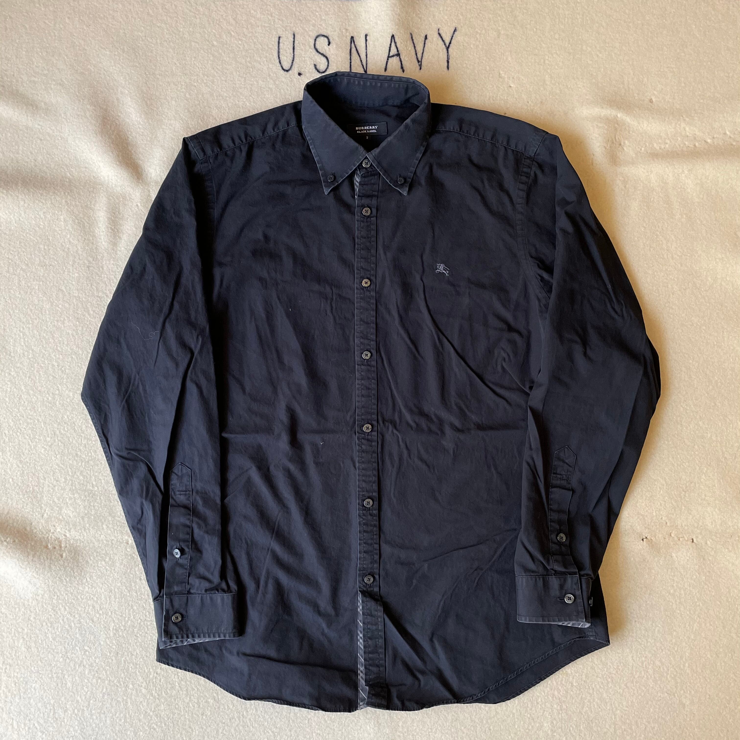 Burberryのカラーシャツ。シンプルなブラックのコットン地です。若干の着用感あり。