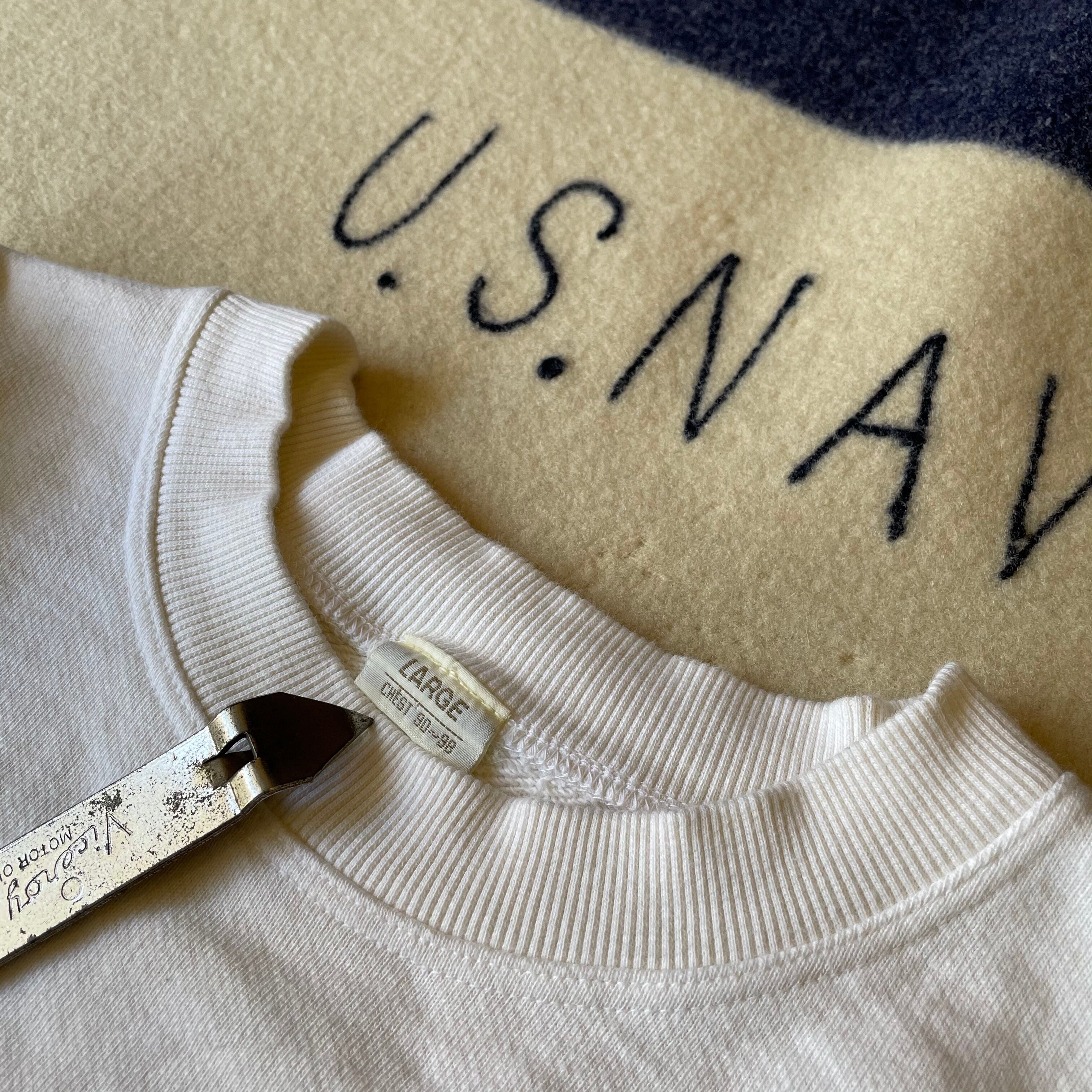 90sあたりのヴィンテージスウェット。肉厚ボディで下がリブではないのでスッキリとした印象。プリントは猫ちゃんです。