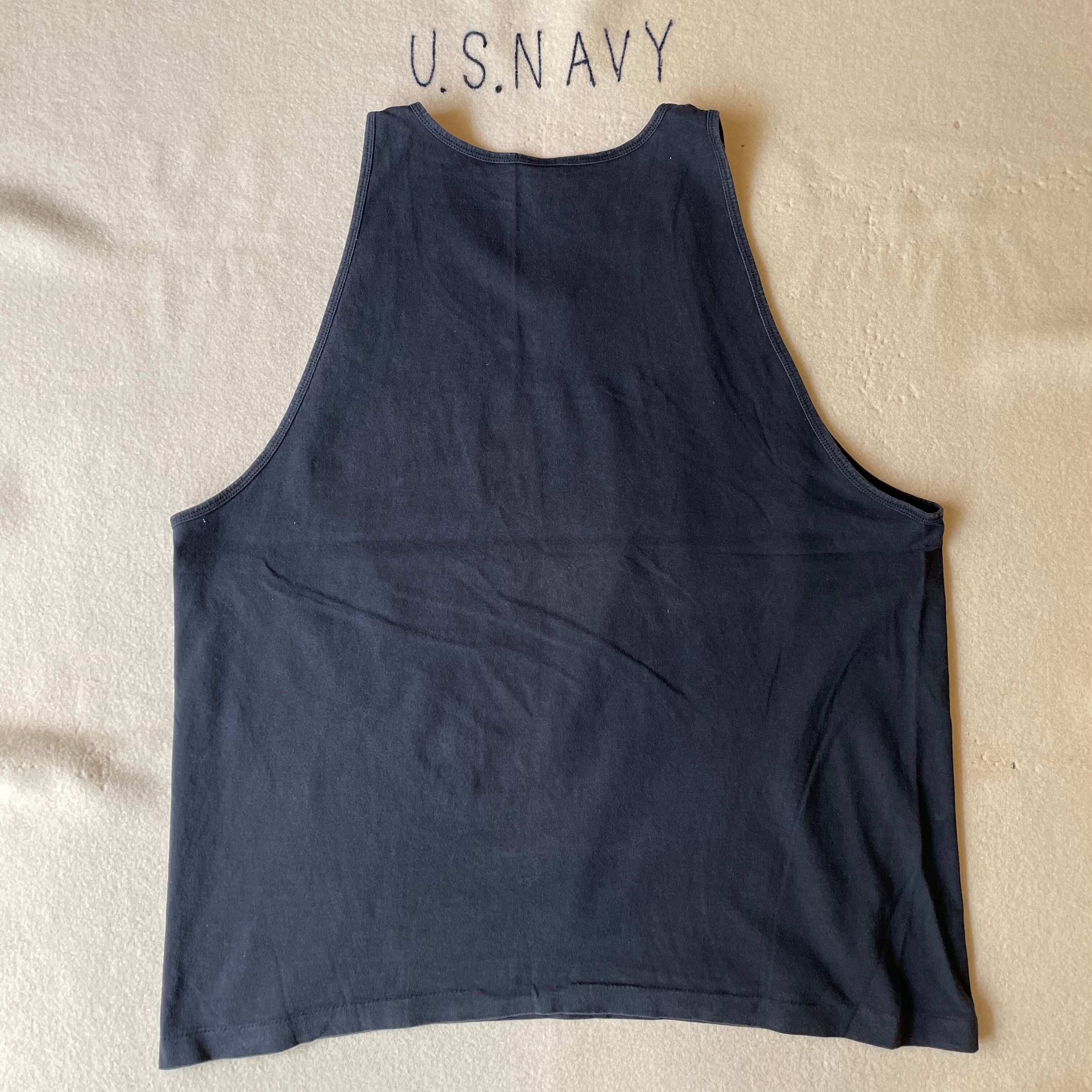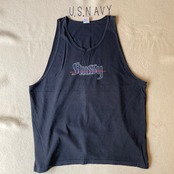 90s中期あたりのOLD stussy。シンプルなロゴがフロントに入るタンクトップ。2XLとサイズ大きめでパーカーやTシャツの上からレイヤーできるのでタンクトップながら着こなしの幅は広がると思います。