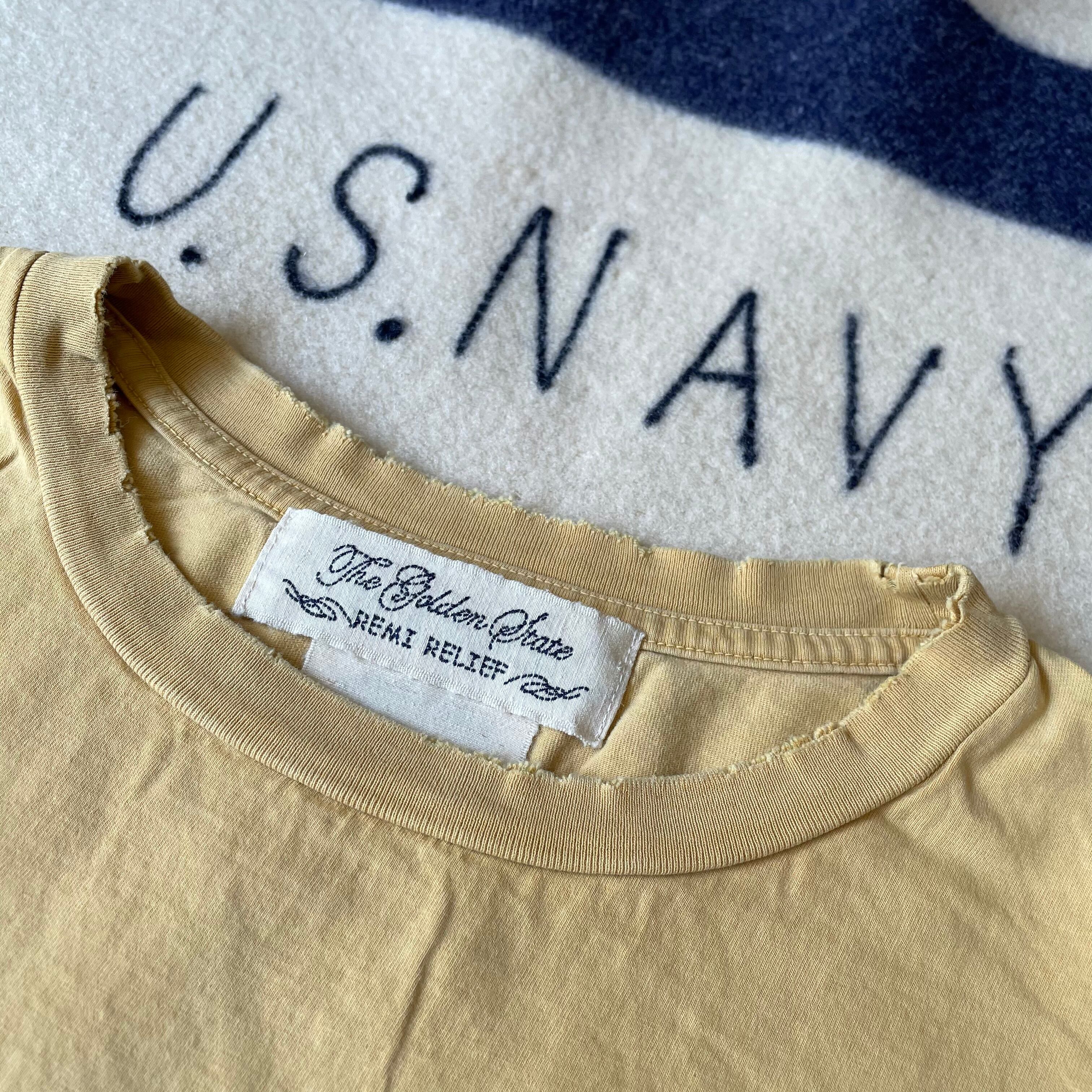 REMI RELIEFのTシャツ。ヴィンテージ加工がcoolです。着用感あまり見られず美品と思います。